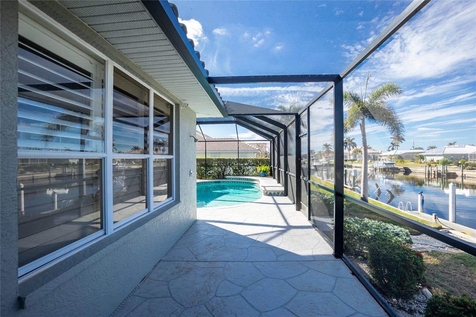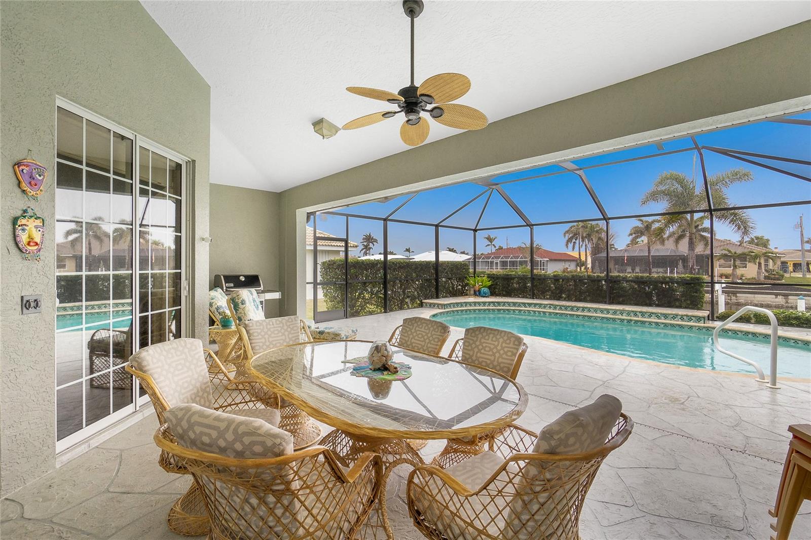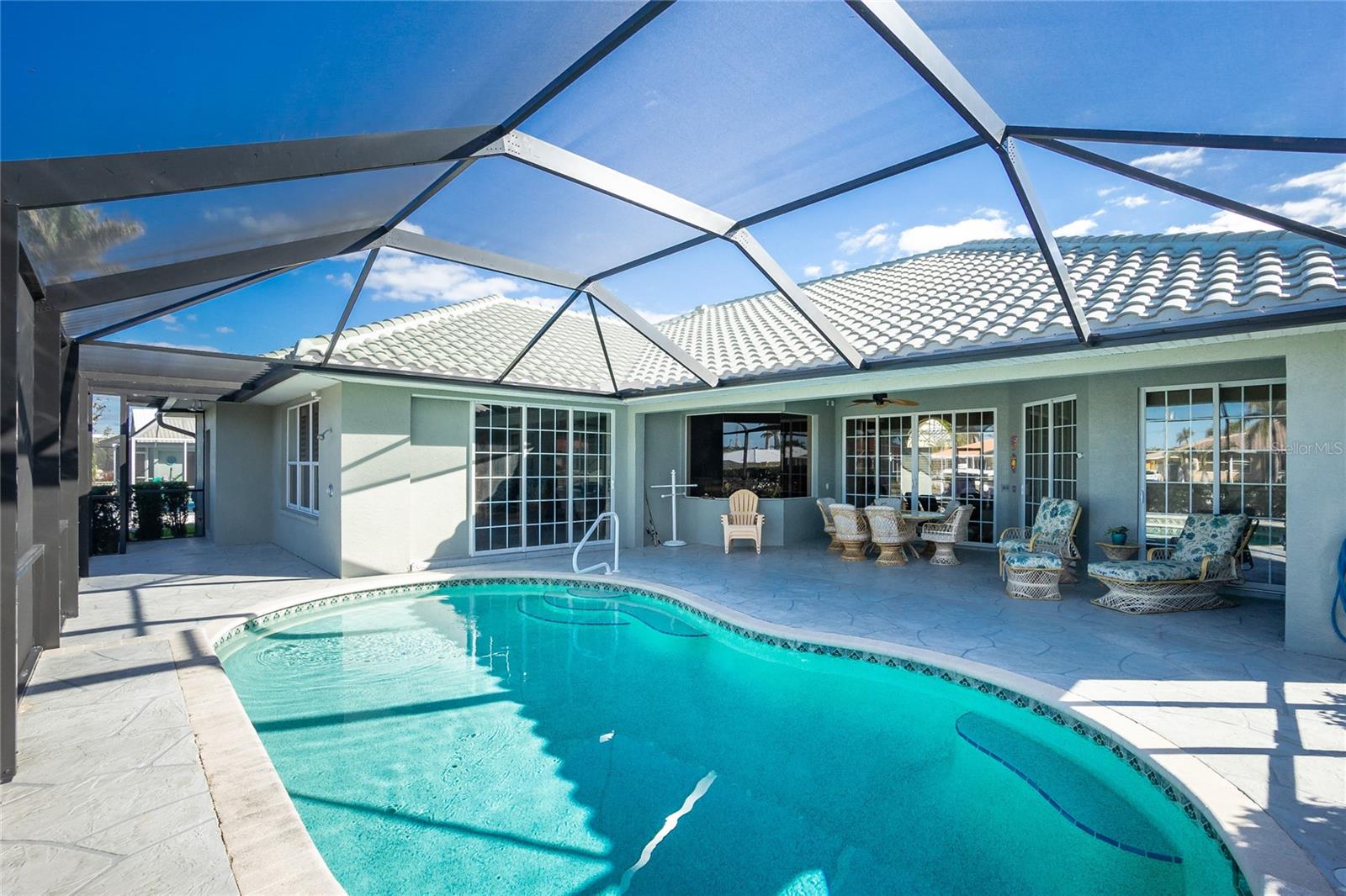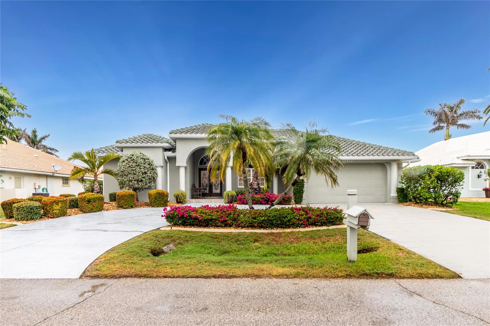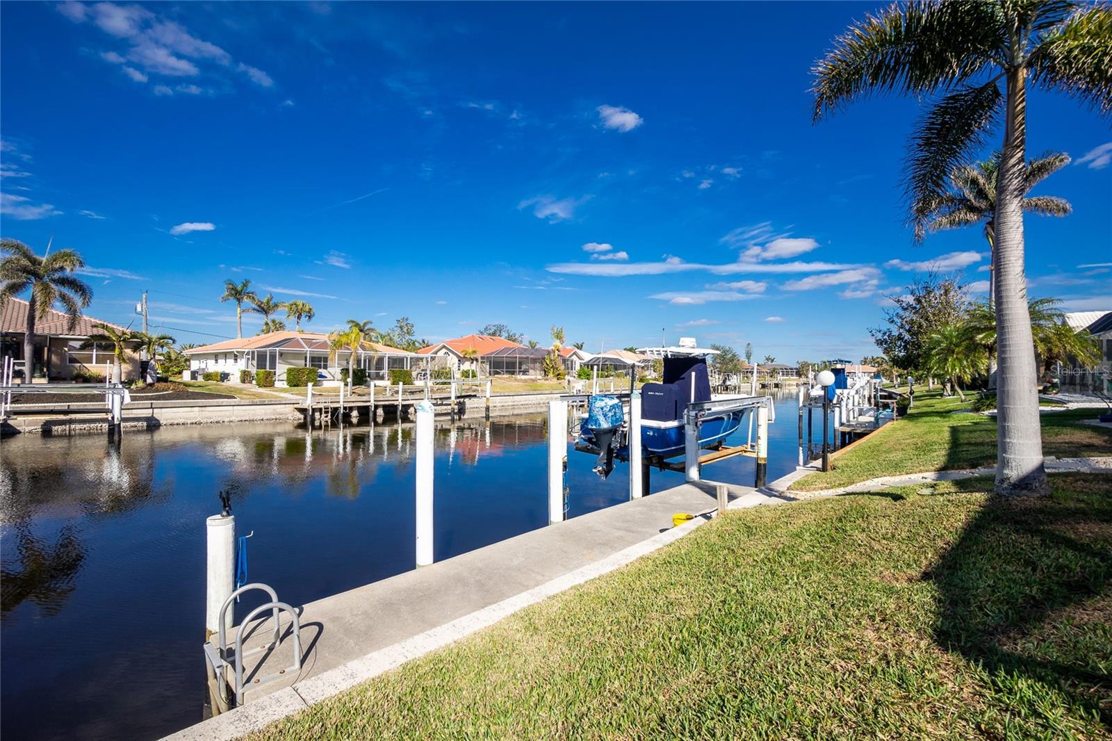 Impressive WATERFRONT home with 3 Bedrooms, 3 Bathrooms and attached 2 Car Garage located on a quiet street in the desirable deed restricted community of PUNTA GORDA ISLES. ***SOLD TURNKEY FURNISHED*** This light and bright home offers an open and split bedroom floor plan with Great Room, separate Dining Room, Family Room, well appointed Kitchen and Inside Laundry. The Great Room features wood floors, plant shelves, high ceiling and sliding glass doors to the Lanai. The spacious Dining Room offers wood floors, natural light through a large arched window and plantation shutters. The Kitchen features stainless appliances, breakfast bar, island with storage, cooktop and stainless range hood, double sink, pantry, cabinets with crown molding, excellent counter and cabinet space. Appliances include : double door refrigerator, built in microwave, built in oven, dishwasher. There is a Dining Area with aquarium glass overlooking the pool and water. The Inside Laundry is equipped with a washer, dryer, sink and cabinets. The large Family Room with tile floors has a large window facing the waterfront with plantation shutters and sliding glass doors to the Lanai. The spacious Master Bedroom suite features wood floor, tray ceiling, lanai access, TWO walk in closets and private bathroom with dual sinks, bathtub and large walk in shower with seat. There are two generous sized guest bedrooms with walk in closets, one with wood floor, the other with luxury vinyl plank. The guest bathroom is also a Pool Bath and offers a walk in shower and his and hers sinks. Your living space extends to the screened Lanai with large covered area, plenty of deck for sunbathing, heated inground swimming pool, outdoor shower, area for grilling (grill conveys with the house) and fantastic water views. Pool is heated by propane and solar - there is a buried 200 gallon propane tank in the front yard. Continue to the waterfront with 76 foot concrete seawall maintained by the city of Punta Gorda. There is a 30 foot concrete dock and 10,000 lb boat lift. Quick powerboat access to Charlotte Harbor and on to the Gulf of Mexico. Other features include: circular driveway, beautiful landscaping, double door entry with transom window, rain gutters, circular driveway, barrell tile roof, 4 walk in closets, central vacuum, NEW tile ROOF 2024, NEW pool cage 2023, Utilities are city water and sewer. There are deed restrictions but NO HOA. This home is 5 minutes to Golf and 10 minutes to Fishermen's Village and historic downtown Punta Gorda shopping, dining, medical care, waterfront parks, boat ramps, fishing piers, walking and biking paths, weekend farmers markets, art galleries, Charlotte Harbor Event Center, downtown events and more! This is Florida living at its best!