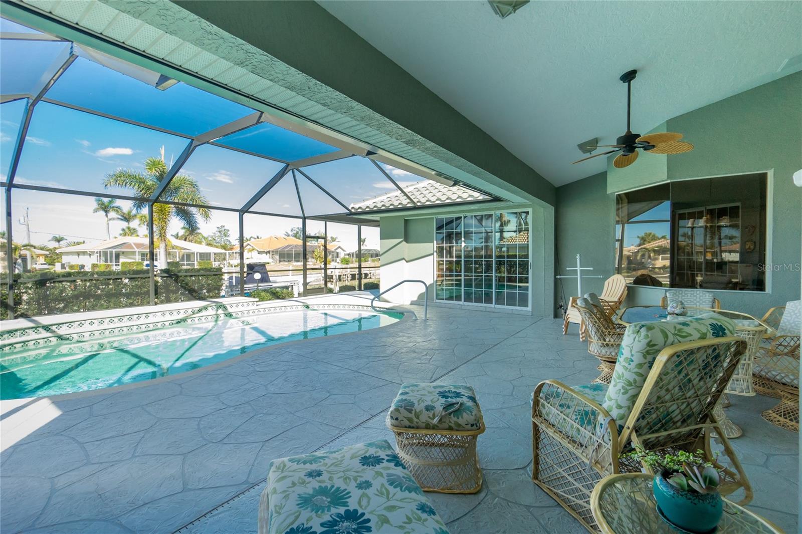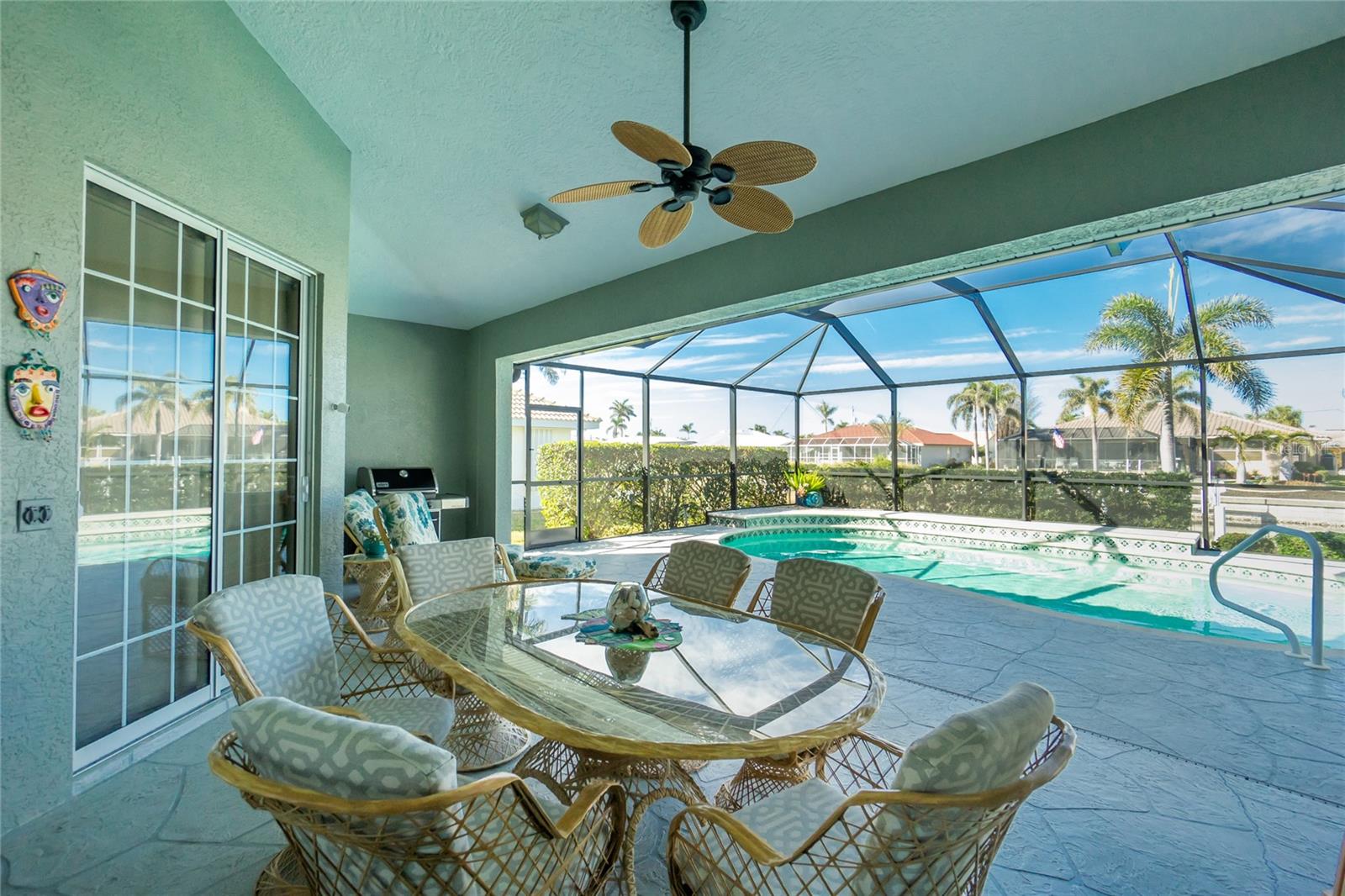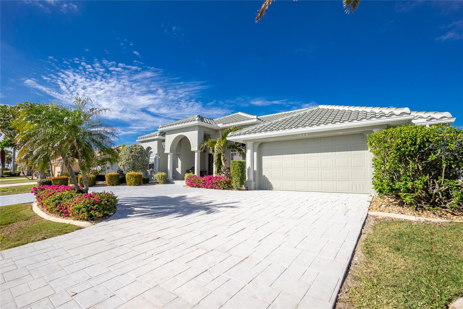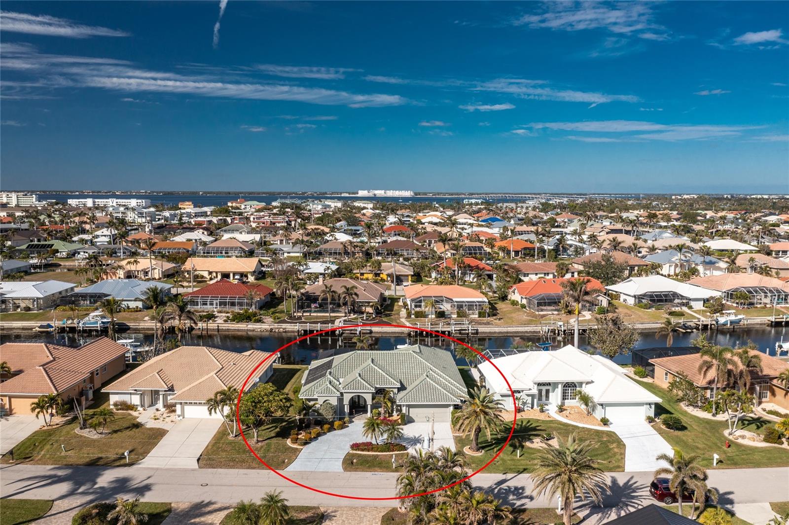 Impressive WATERFRONT home with 3 Bedrooms, 3 Bathrooms and attached 2 Car Garage located on a quiet street in the desirable deed restricted community of PUNTA GORDA ISLES. ***SOLD TURNKEY FURNISHED*** This light and bright home offers an open and split bedroom floor plan with Great Room, separate Dining Room, Family Room, well appointed Kitchen and Inside Laundry. The Great Room features wood floors, plant shelves, high ceiling and sliding glass doors to the Lanai. The spacious Dining Room offers wood floors, natural light through a large arched window and plantation shutters. The Kitchen features stainless appliances, breakfast bar, island with storage, cooktop and stainless range hood, double sink, pantry, cabinets with crown molding, excellent counter and cabinet space. Appliances include : double door refrigerator, built in microwave, built in oven, dishwasher. There is a Dining Area with aquarium glass overlooking the pool and water. The Inside Laundry is equipped with a washer, dryer, sink and cabinets. The large Family Room with tile floors has a large window facing the waterfront with plantation shutters and sliding glass doors to the Lanai. The spacious Master Bedroom suite features wood floor, tray ceiling, lanai access, TWO walk in closets and private bathroom with dual sinks, bathtub and large walk in shower with seat. There are two generous sized guest bedrooms with walk in closets, one with wood floor, the other with luxury vinyl plank. The guest bathroom is also a Pool Bath and offers a walk in shower and his and hers sinks. Your living space extends to the screened Lanai with large covered area, plenty of deck for sunbathing, heated inground swimming pool, outdoor shower, area for grilling (grill conveys with the house) and fantastic water views. Pool is heated by propane and solar - there is a buried 200 gallon propane tank in the front yard. Continue to the waterfront with 76 foot concrete seawall maintained by the city of Punta Gorda. There is a 30 foot concrete dock and 10,000 lb boat lift. Quick powerboat access to Charlotte Harbor and on to the Gulf of Mexico. Other features include: circular driveway, beautiful landscaping, double door entry with transom window, rain gutters, circular driveway, barrell tile roof, 4 walk in closets, central vacuum, NEW tile ROOF 2024, NEW pool cage 2023, Utilities are city water and sewer. There are deed restrictions but NO HOA. This home is 5 minutes to Golf and 10 minutes to Fishermen's Village and historic downtown Punta Gorda shopping, dining, medical care, waterfront parks, boat ramps, fishing piers, walking and biking paths, weekend farmers markets, art galleries, Charlotte Harbor Event Center, downtown events and more! This is Florida living at its best!
