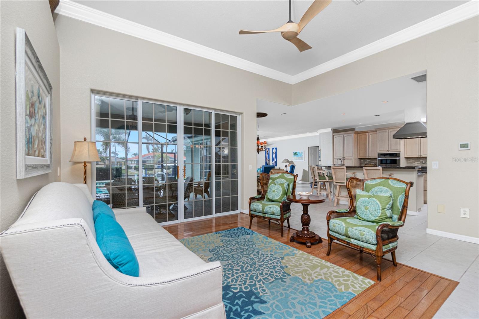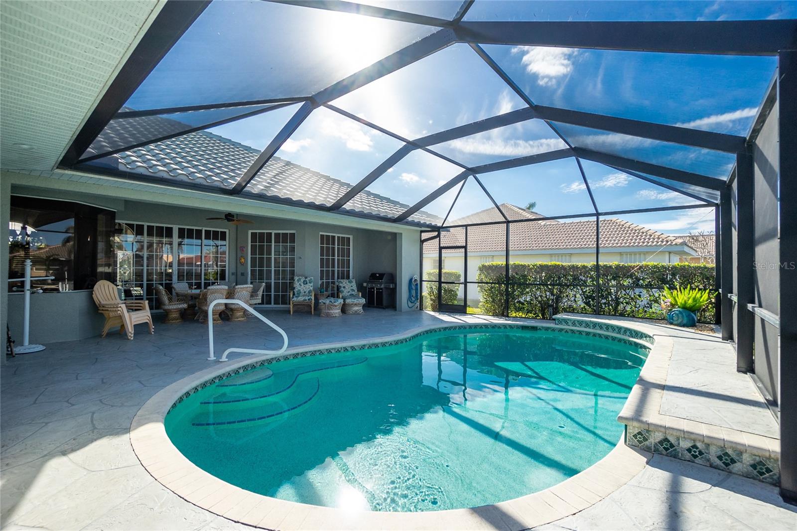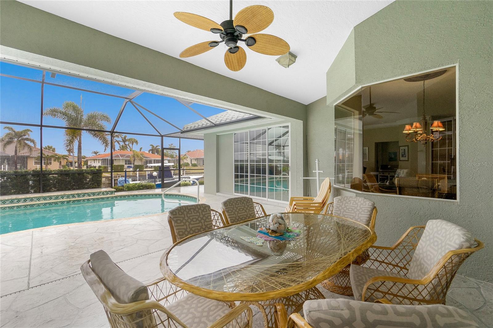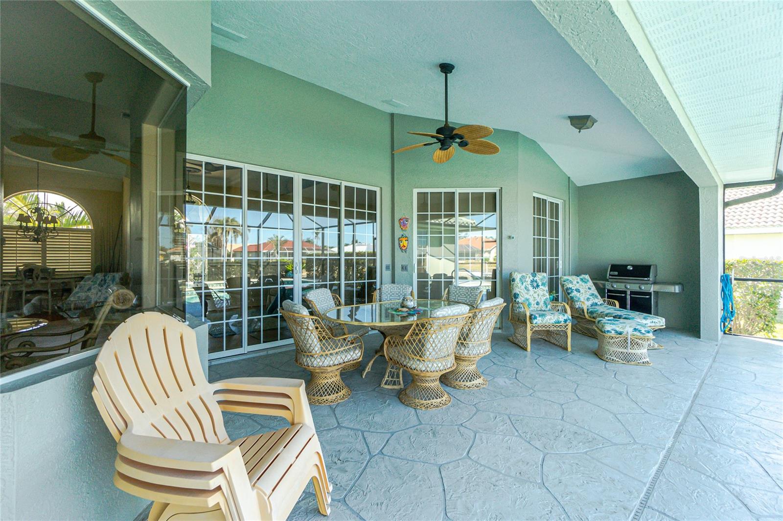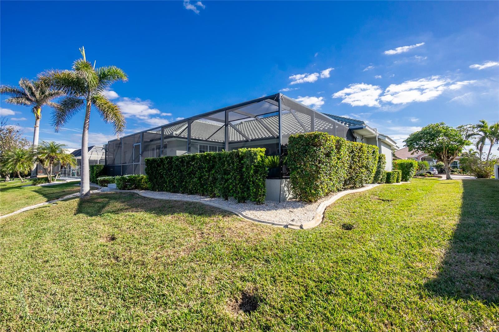 Impressive WATERFRONT home with 3 Bedrooms, 3 Bathrooms and attached 2 Car Garage located on a quiet street in the desirable deed restricted community of PUNTA GORDA ISLES. ***SOLD TURNKEY FURNISHED*** This light and bright home offers an open and split bedroom floor plan with Great Room, separate Dining Room, Family Room, well appointed Kitchen and Inside Laundry. The Great Room features wood floors, plant shelves, high ceiling and sliding glass doors to the Lanai. The spacious Dining Room offers wood floors, natural light through a large arched window and plantation shutters. The Kitchen features stainless appliances, breakfast bar, island with storage, cooktop and stainless range hood, double sink, pantry, cabinets with crown molding, excellent counter and cabinet space. Appliances include : double door refrigerator, built in microwave, built in oven, dishwasher. There is a Dining Area with aquarium glass overlooking the pool and water. The Inside Laundry is equipped with a washer, dryer, sink and cabinets. The large Family Room with tile floors has a large window facing the waterfront with plantation shutters and sliding glass doors to the Lanai. The spacious Master Bedroom suite features wood floor, tray ceiling, lanai access, TWO walk in closets and private bathroom with dual sinks, bathtub and large walk in shower with seat. There are two generous sized guest bedrooms with walk in closets, one with wood floor, the other with luxury vinyl plank. The guest bathroom is also a Pool Bath and offers a walk in shower and his and hers sinks. Your living space extends to the screened Lanai with large covered area, plenty of deck for sunbathing, heated inground swimming pool, outdoor shower, area for grilling (grill conveys with the house) and fantastic water views. Pool is heated by propane and solar - there is a buried 200 gallon propane tank in the front yard. Continue to the waterfront with 76 foot concrete seawall maintained by the city of Punta Gorda. There is a 30 foot concrete dock and 10,000 lb boat lift. Quick powerboat access to Charlotte Harbor and on to the Gulf of Mexico. Other features include: circular driveway, beautiful landscaping, double door entry with transom window, rain gutters, circular driveway, barrell tile roof, 4 walk in closets, central vacuum, NEW tile ROOF 2024, NEW pool cage 2023, Utilities are city water and sewer. There are deed restrictions but NO HOA. This home is 5 minutes to Golf and 10 minutes to Fishermen's Village and historic downtown Punta Gorda shopping, dining, medical care, waterfront parks, boat ramps, fishing piers, walking and biking paths, weekend farmers markets, art galleries, Charlotte Harbor Event Center, downtown events and more! This is Florida living at its best!