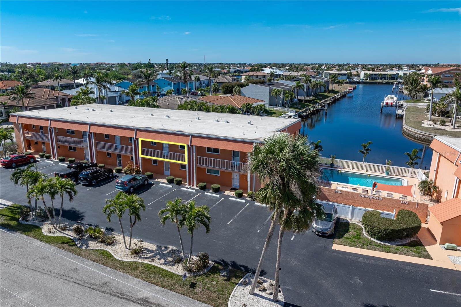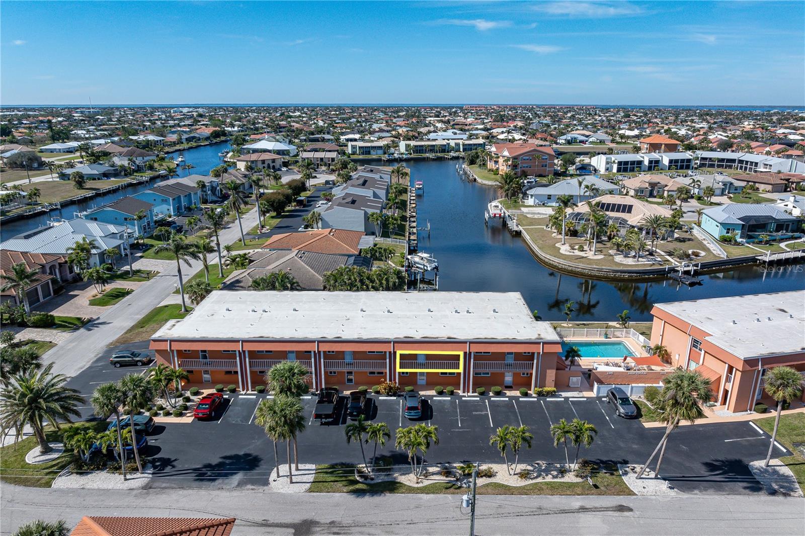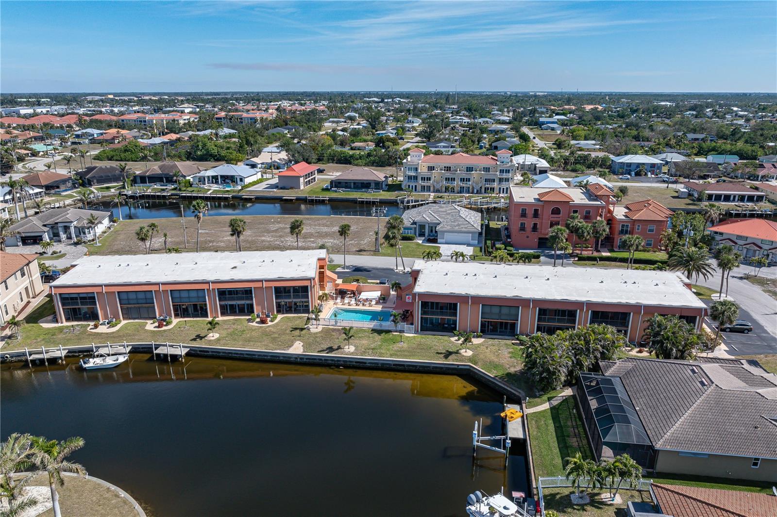RENOVATED WATERFRONT CONDO IN PGI W/SPECTACULAR VIEW & QUICK BOATING ACCESS! Looking for a seasonal getaway or thinking of downsizing? You need to see this completely updated 2-bedroom, 2-bath waterfront condo in Punta Gorda Isles with 1st come/1st serve docks available. Almost all furniture currently in unit is included with sale!!!! Unit was rebuilt from the studs & is absolutely beautiful inside! The unit is ideal for snowbirds, investors, or someone looking to have a smaller footprint. Condo boasts stunning down-the-canal views and a coveted western rear exposure for breathtaking sunsets from your screened lanai. The open-concept living space features a beautifully updated kitchen with stainless steel appliances, stone countertops, and a striking turquoise glass subway tile backsplash. Both bedrooms have en-suite bathrooms, with the primary suite offering three closets—including a large walk-in—and walkout access to the lanai. A wall of closets in the main living area ensures ample storage, complemented by an in-unit stacked washer and dryer conveniently tucked off the kitchen. The living room opens to the lanai, creating seamless indoor-outdoor flow, while a large storage closet anchors the outdoor space. Driftwood Condominiums has several docks on a 1st come/1st serve basis. At the time of listing, there are two dock spaces available. Keep your boat docked in your backyard & start enjoying some of the best fishing & boating in SW Florida. Condo features an in-ground, heated, community pool with shaded seating areas plus ample deck space for lounging poolside while soaking up some Florida sun. There's a BBQ and outdoor dining area that is perfect for entertaining. Other complex amenities include an assigned parking space & plenty of guest parking. Living in Punta Gorda Isles means enjoying quick access to waterfront dining, boutique shopping, and year-round events at Fishermen’s Village, waterfront parks or in the historic downtown area. Miles of sidewalks throughout PGI connect you to nearby parks, nature trails and the harbor walk. New to the area? Consider joining the Isles Yacht Club or the PGI Civic Association (PGICA) - they offer a variety of social clubs and activities. Move-in ready and low-maintenance, this condo is perfectly positioned to enjoy the best of Florida’s active, waterfront lifestyle. Make an appointment today.