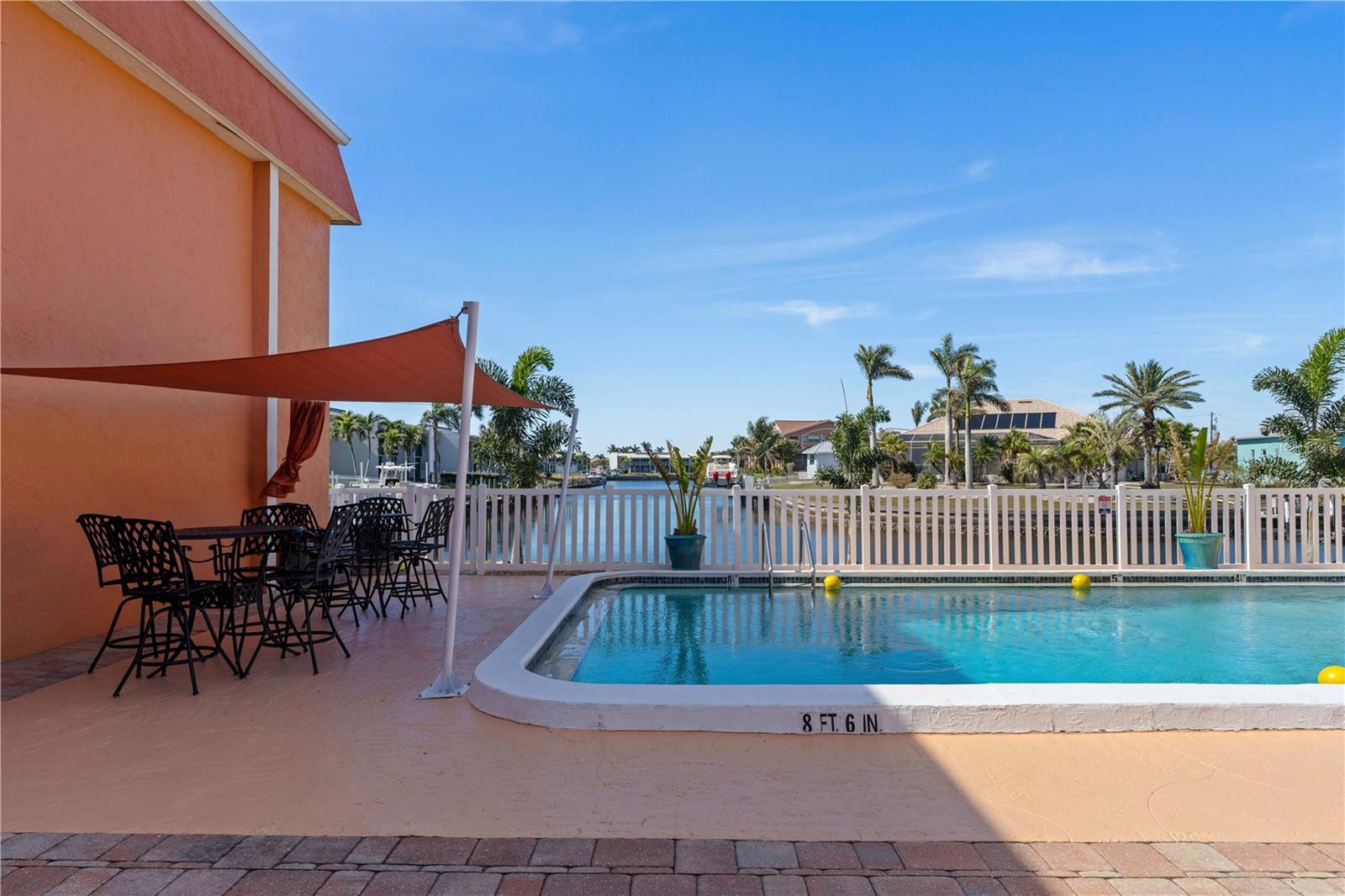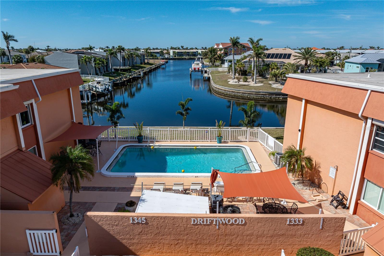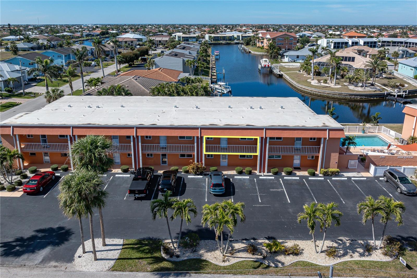 RENOVATED WATERFRONT CONDO IN PGI W/SPECTACULAR VIEW & QUICK BOATING ACCESS! Looking for a seasonal getaway or thinking of downsizing? You need to see this completely updated 2-bedroom, 2-bath waterfront condo in Punta Gorda Isles with 1st come/1st serve docks available. Almost all furniture currently in unit is included with sale!!!! Unit was rebuilt from the studs & is absolutely beautiful inside! The unit is ideal for snowbirds, investors, or someone looking to have a smaller footprint. Condo boasts stunning down-the-canal views and a coveted western rear exposure for breathtaking sunsets from your screened lanai. The open-concept living space features a beautifully updated kitchen with stainless steel appliances, stone countertops, and a striking turquoise glass subway tile backsplash. Both bedrooms have en-suite bathrooms, with the primary suite offering three closets—including a large walk-in—and walkout access to the lanai. A wall of closets in the main living area ensures ample storage, complemented by an in-unit stacked washer and dryer conveniently tucked off the kitchen. The living room opens to the lanai, creating seamless indoor-outdoor flow, while a large storage closet anchors the outdoor space. Driftwood Condominiums has several docks on a 1st come/1st serve basis. At the time of listing, there are two dock spaces available. Keep your boat docked in your backyard & start enjoying some of the best fishing & boating in SW Florida. Condo features an in-ground, heated, community pool with shaded seating areas plus ample deck space for lounging poolside while soaking up some Florida sun. There's a BBQ and outdoor dining area that is perfect for entertaining. Other complex amenities include an assigned parking space & plenty of guest parking. Living in Punta Gorda Isles means enjoying quick access to waterfront dining, boutique shopping, and year-round events at Fishermen’s Village, waterfront parks or in the historic downtown area. Miles of sidewalks throughout PGI connect you to nearby parks, nature trails and the harbor walk. New to the area? Consider joining the Isles Yacht Club or the PGI Civic Association (PGICA) - they offer a variety of social clubs and activities. Move-in ready and low-maintenance, this condo is perfectly positioned to enjoy the best of Florida’s active, waterfront lifestyle. Make an appointment today.