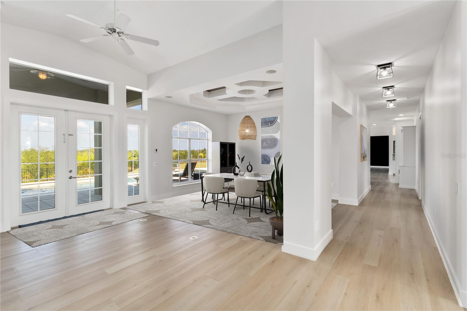 One or more photo(s) has been virtually staged. Welcome to this one-of-a-kind 3.05-acre WATERFRONT private estate nestled in Herons Cove.Through your private gates is a STUNNING 4 bedroom, 4.5 baths, 4652 sq ft LUXURIOUS dream home with an oversized 3 car garage situated in the middle of this private estate. An open floor plan with natural light awaits you with over 12’ ceilings, custom cabinetry, fireplace, impact doors and windows, french doors, oak luxury vinyl flooring, Simply Safe Security system, and a full-house propane back-up generator. Each bedroom has its own en-suite bathroom and large walk-in closets. The master bedroom suite has a sitting area, custom made coffered ceiling with an en-suite bathroom with a toilet closet, jacuzzi tub, dual sinks and plantation shutters. The large walk-in closet has custom built-ins and a hidden safe. The open dining room has a fireplace, coffered ceiling and french doors that lead to the lanai/pool area. A large pantry and custom bar with a bar sink, custom counters, cabinets and wine fridge lead to the huge gourmet kitchen and family room with french doors that lead to the lanai. This “chef’s dream” bright and open kitchen has all upgraded appliances including a 6 burner gas stove with professional-grade oven, refrigerator, microwave, 2 dishwashers, and prep sink on a 5'x7' island. The laundry room has new appliances, extra refrigerator and ice maker. The beautiful french doors lead to a fenced-in outside paradise in your private back yard. The large lanai has lovely pavers, a covered sitting area with a fireplace and a saltwater pool with custom fountains. The paver walkway leads to a separate sitting area with a fire-pit and continues to your newly resurfaced private dock with a 15,000 pound boat lift that overlooks a nature preserve. NO FLOOD DAMAGE and NO FLOOD INSURANCE REQUIRED! If you are looking for your own PRIVATE PARADISE this estate is for you! A STUNNING home with all the upgrades in this beautiful quiet oasis that offers fishing, boating, and even a fenced-in play area with a built-in playground. Drop your boat for a day trip with ocean access through Peace River into Charlotte Harbor or take a short 18 minute drive to downtown Punta Gorda to enjoy our local restaurants and shops. Punta Gorda airport is just 11.3 miles (19 minutes) away.