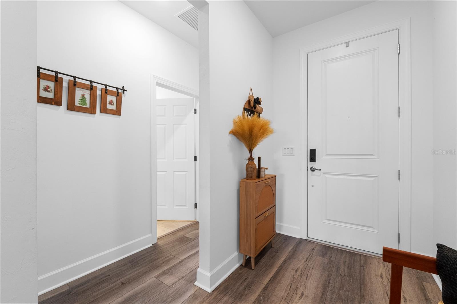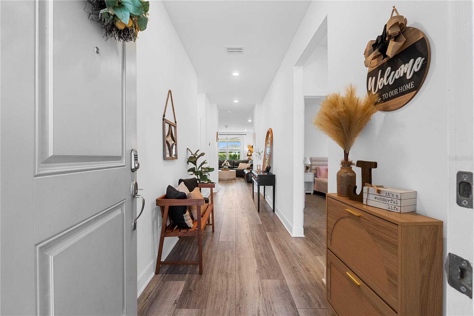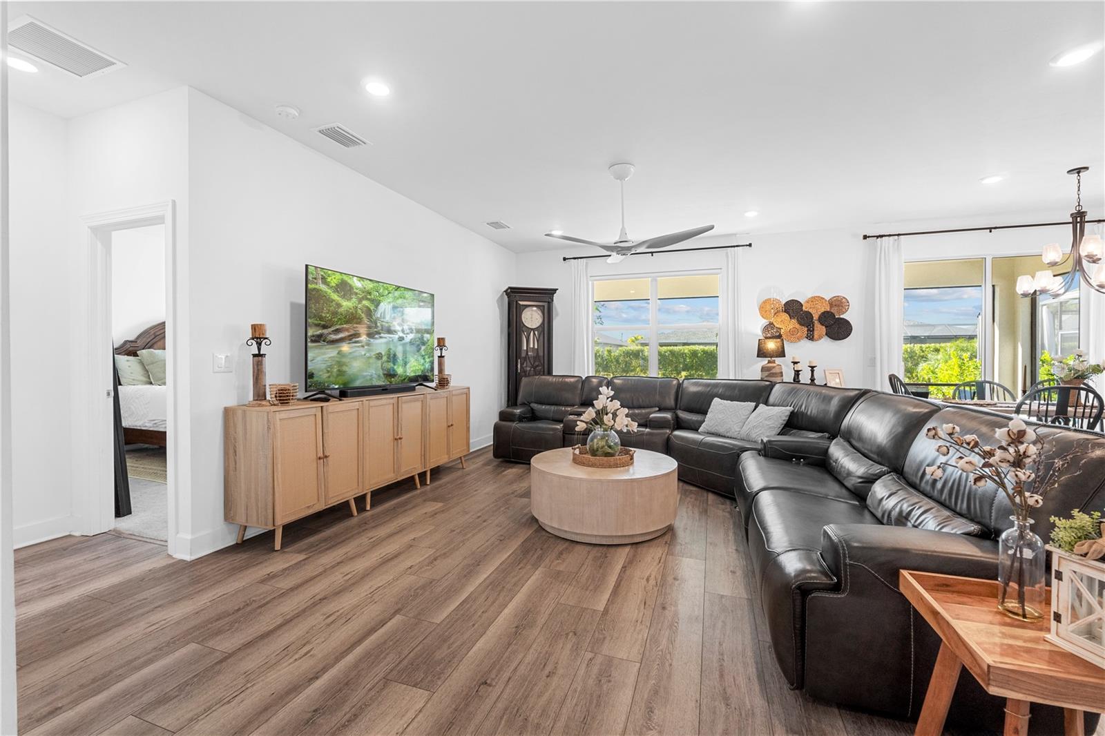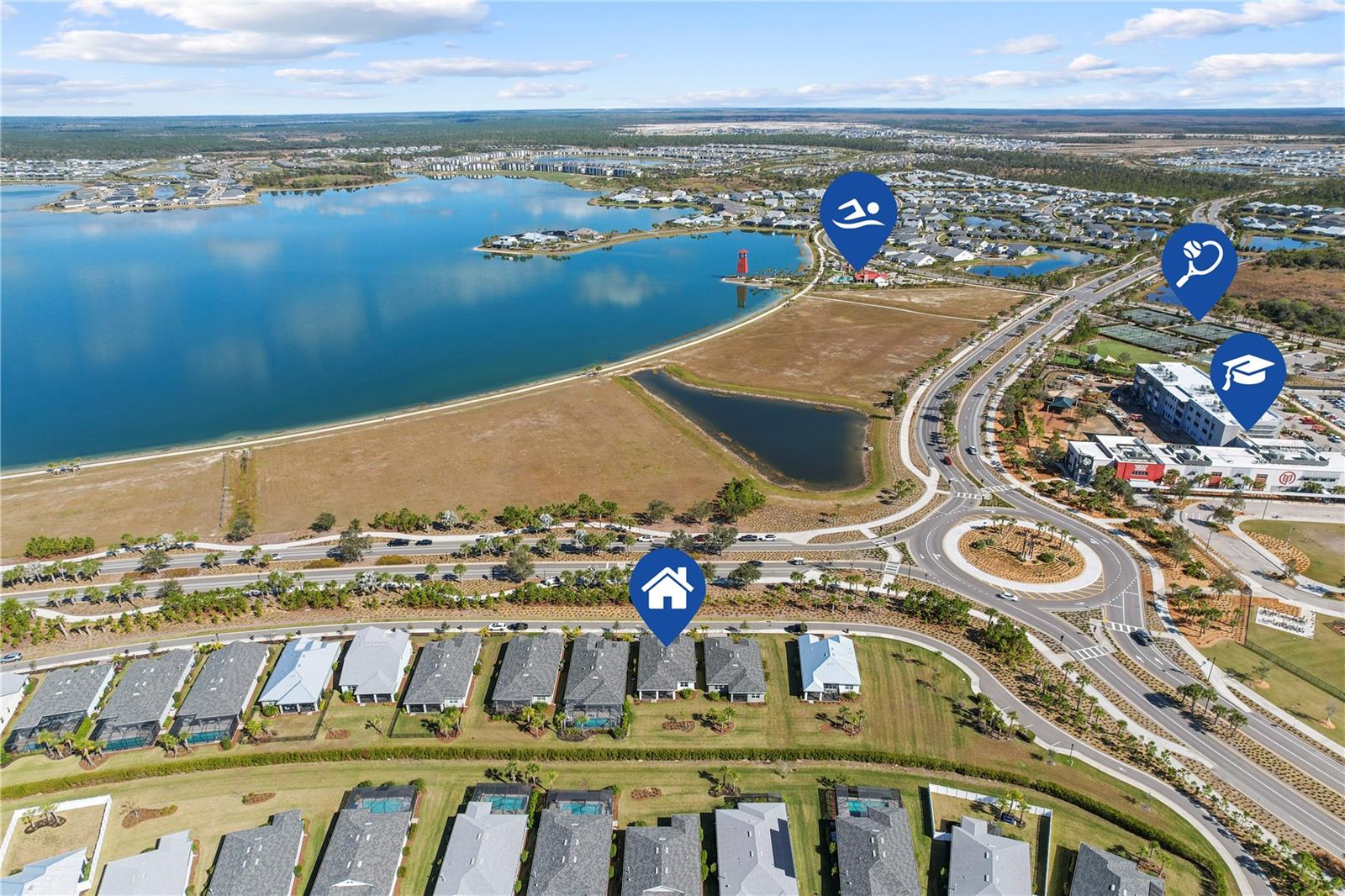 Charming Lakefront Home Near Founders Square & Cypress Lodge. Nestled on a quiet one-way street in the Parkside community this stunning home offers an unbeatable location just moments from Founders Square and all the exciting downtown activities and Gym as well as the world- class amenities of Cypress Lodge. With a serene lake view in the front yard and a private backyard retreat, this home is the perfect blend of luxury and comfort. Inside, you’ll find luxury large-plank laminate wood flooring throughout, adding warmth and sophistication. The open- concept kitchen features white quartz countertops, a designer backsplash, a spacious island with seating (included), and a single lager sink with a window view. The LG front-load washer and dryer stay with the home, and the laundry room includes extra shelving for added convenience. The living room is highlighted by a high-end $3,000 ceiling fan, and every bedroom is equipped with stylish ceiling fans for year-round comfort. Additional upgrades include a Lennox electric AC unit, a Nest thermostat for remote climate control, a Ring doorbell, and a full AC maintenance plan every six months. The entire home is equipped with a water softener system, enhancing water quality. Step outside to enjoy the expansive back porch with a tranquil private view—perfect for relaxing or entertaining. The garage features industrial ceiling storage racks, providing ample space for organization. Elegant chandeliers and designer touches throughout complete this beautifully upgraded home. Don’t miss this incredible opportunity to own a luxurious and well-maintained home in a prime location! This home is not just move-in ready—it's MODEL-HOME PERFECT !! Every upgrade has already been done for you, from the water filtration system to the beautifully decorated interiors. Don’t miss your chance to own this exceptional property with unmatched elegance and convenience. Schedule your private showing today! Enjoy living in Babcock Ranch, America's first entirely solar-powered town, with access to multiple community pools, nature trails, with shopping and dining. Come enjoy the convenience of Babcock Ranch living with festivals, farmer's markets, Concerts, Health gym & just a golf cart ride to the grocery store. There is so much to do with hundreds of clubs and activities planned every month. There is a K-12 neighborhood school with a brand new sports complex, including football, soccer and baseball fields. There are many playgrounds and parks, including multiple dog parks and a brand new skate park and six new parks along the nature trails. Babcock Ranch is a top master planned community and was featured on CNN and 60 Min for not losing any power or internet after hurricane Ian made a direct hit and Milton came very close. Beautiful parks and amenities let you experience SW Florida at its finest! Schedule your private tour today and make your dream home a reality! Come live a better life at Babcock Ranch!