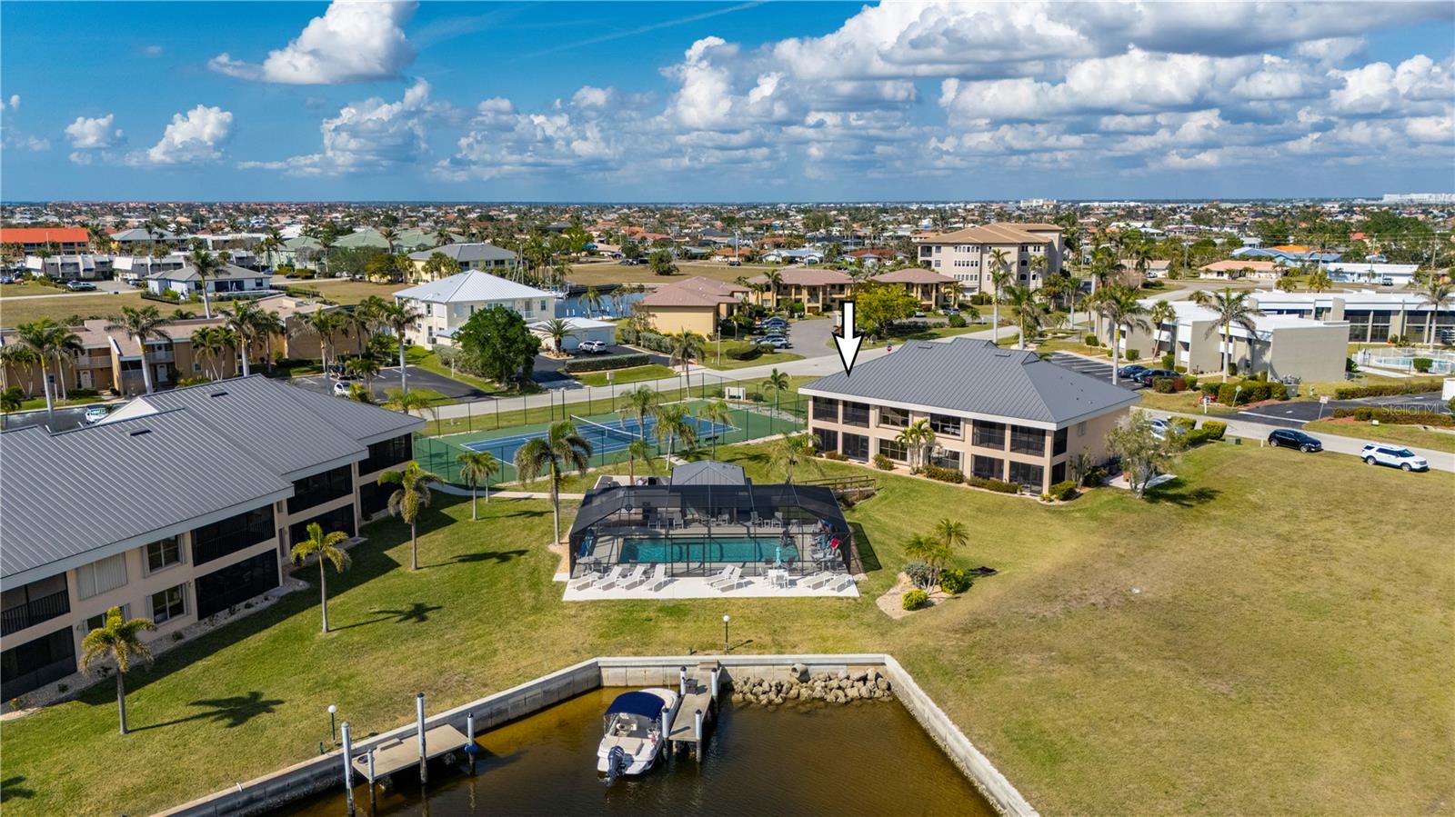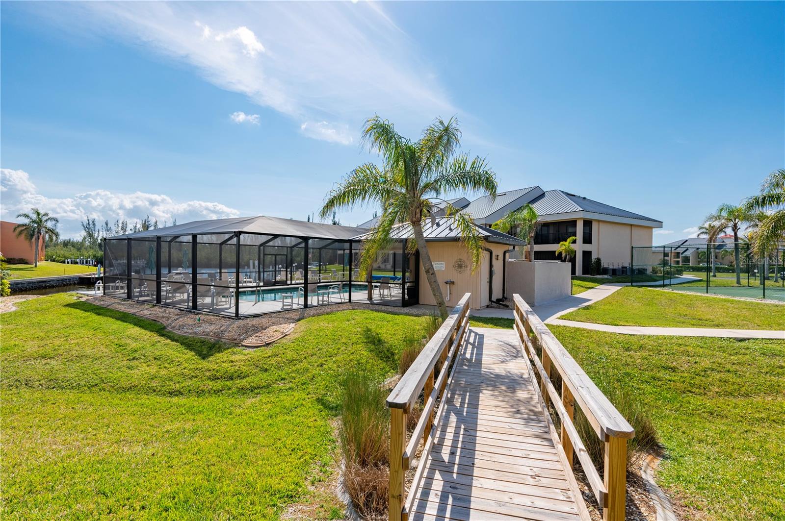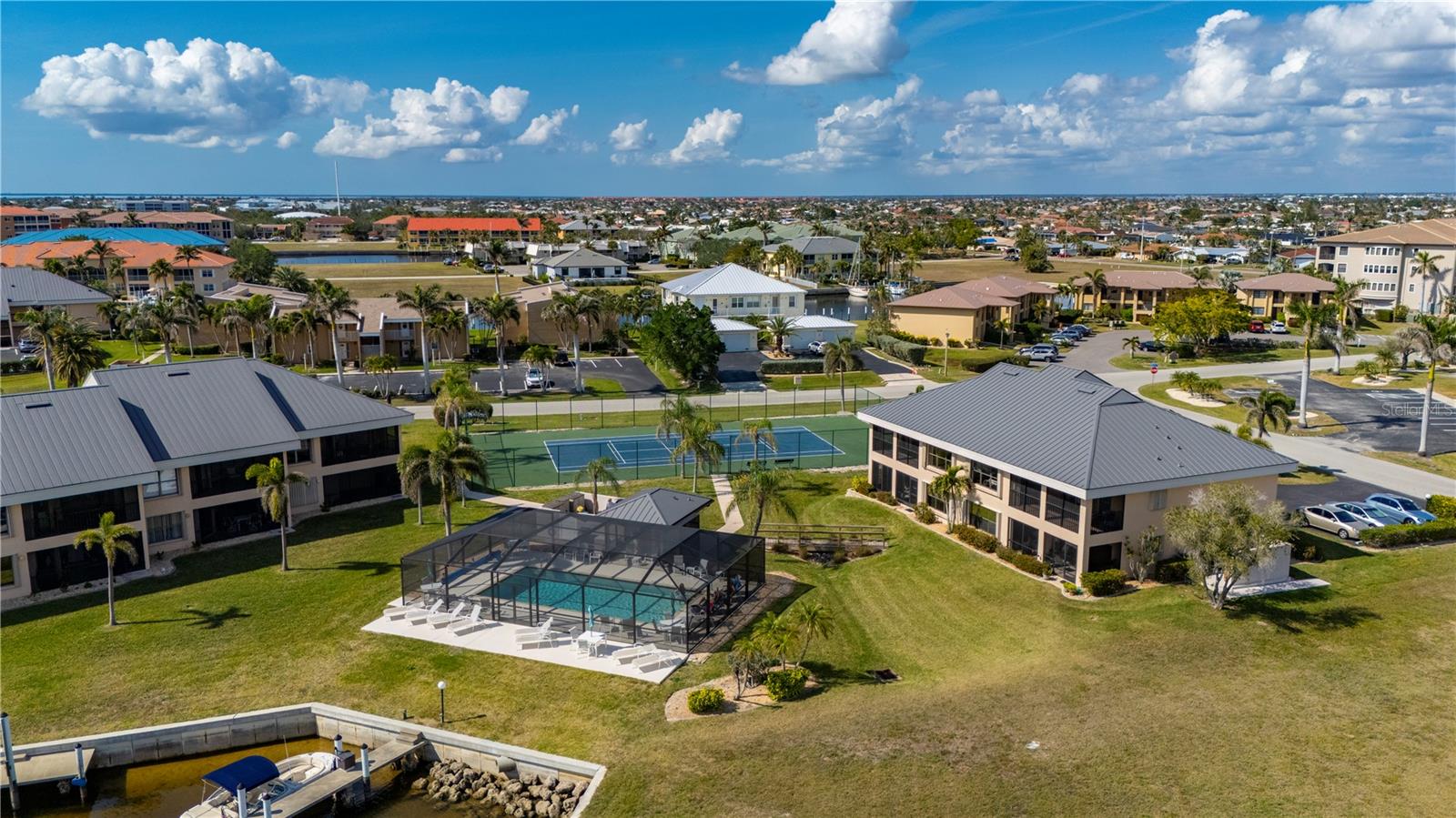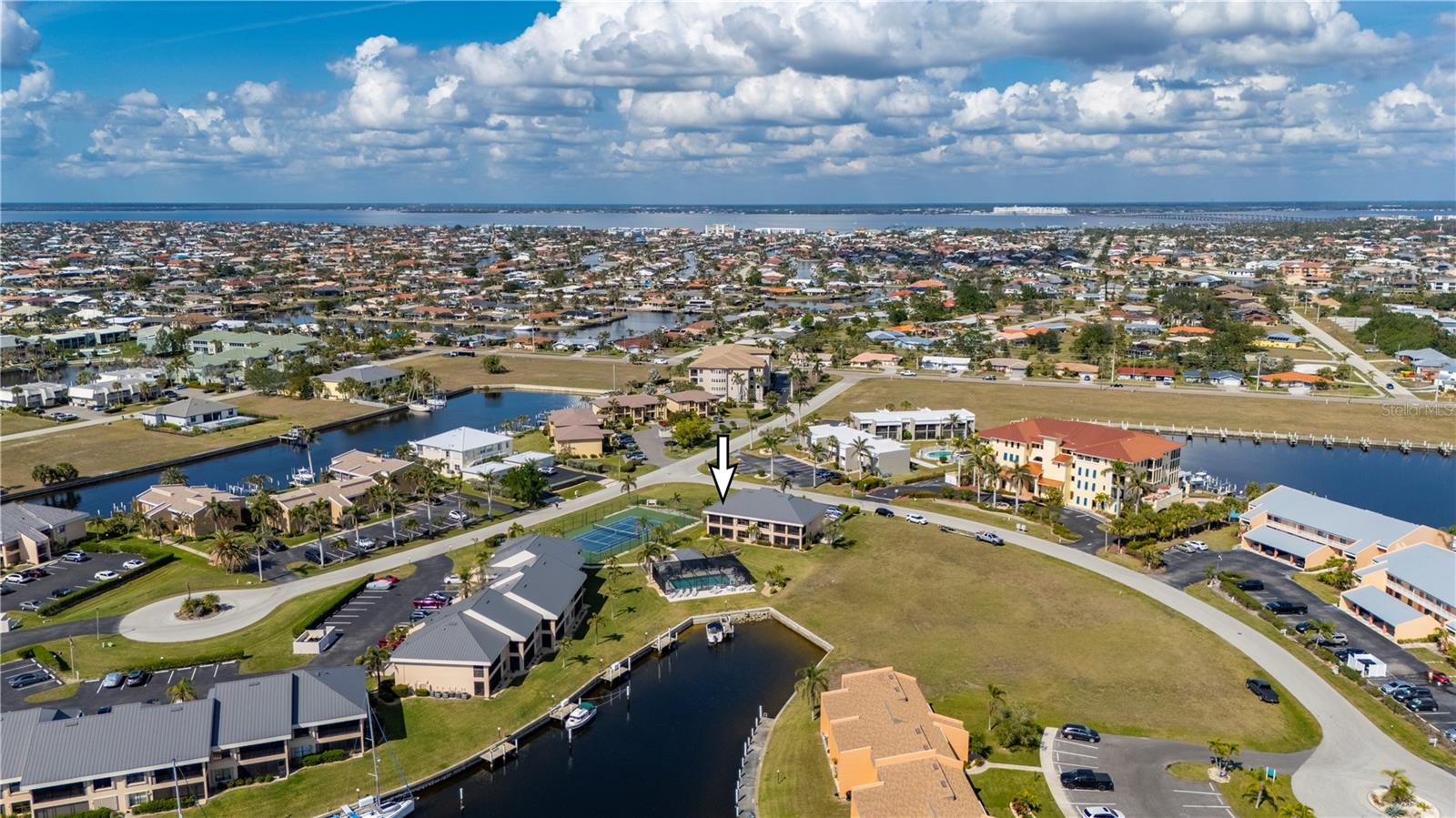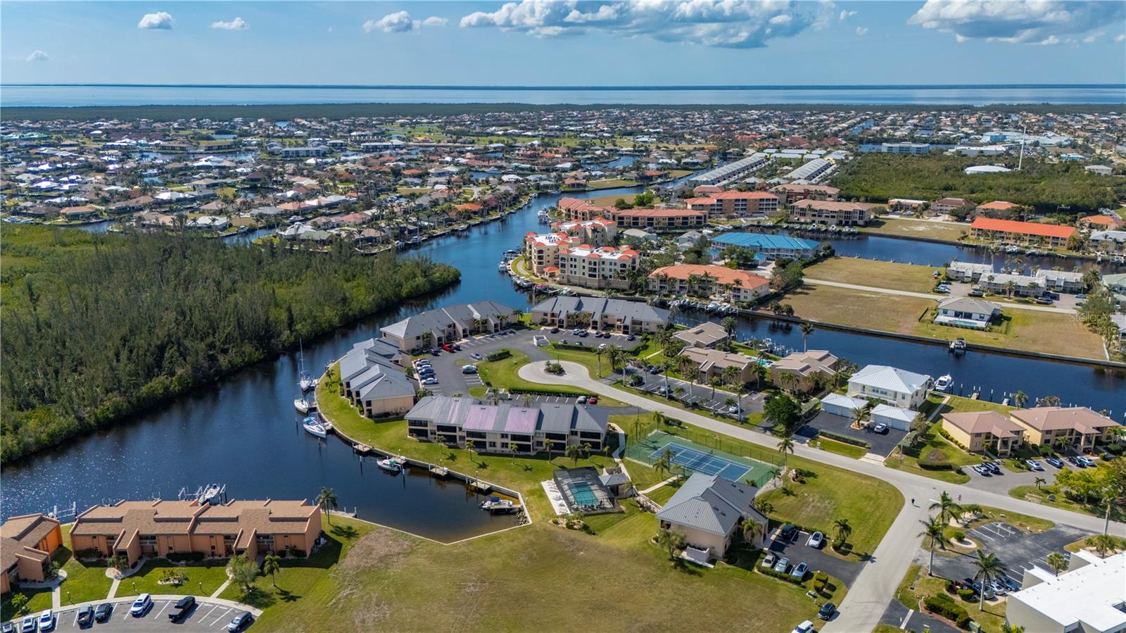 Searching for a winter getaway, or an affordable year-round option to enjoy a lifestyle only Florida affords? Then look no further than this Venetian Isles 3 bedroom, 2 bath condominium located within the boating and golf community of Punta Gorda Isles. Known for its miles of pristine canals, community parks and historic waterfront shops and restaurants, along with year round farmer’s markets, you couldn’t ask for a better community to call home. This two story walk-up makes the most of its living area with ceilings that reach almost 12 ft. in height, enhancing the abundance of natural lighting throughout, while expansive living room windows capture panoramic views of the community pool and canal vistas beyond. The remodeled kitchen with its deep caramel color cabinetry offers an abundance of storage space while the breakfast bar provides a perfect place to stage your favorite dishes and drinks when entertaining. The bedroom suites are spacious in size and offer comfortable options for your guests, or for those who work from home or need additional space to enjoy their hobbies. The primary suite features a remodeled en suite bath and opens to an 8’x17’ screened in lanai that further enhances your living space. Enjoy early morning coffee or late evening dinners, while relaxing to soft music and warm breezes. What better way to start or end your fun-filled day from golf or boating? And if a game of pickleball or tennis is your sport, you’re only a few steps away to the community’s private court. This condominium also comes with a skylight that captures additional lighting in your guest bath area and the security of hurricane protection is provided by a combination of accordion and electric roll down shutters. If you are looking to enjoy the simple pleasures of life in a community friendly neighborhood, this is that piece of paradise you’ve been seeking.