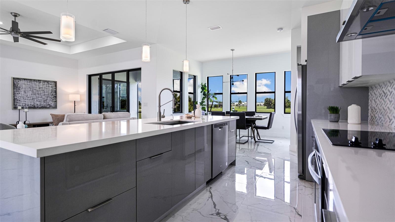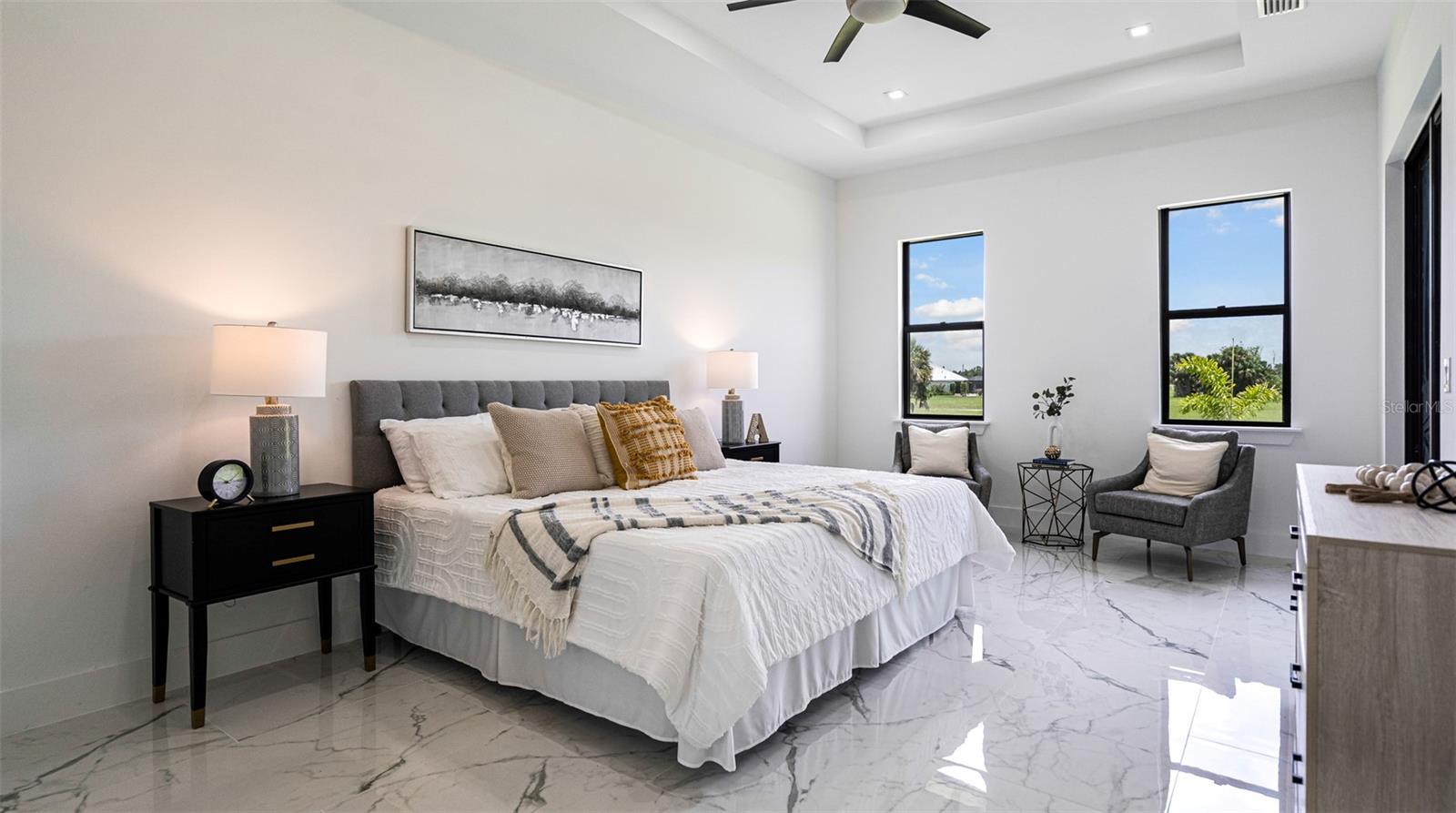 This stunning move-in-ready home is the perfect blend of elegance and comfort! Featuring a spacious open floor plan with 3 bedrooms, 2.5 bathrooms, and an oversized 2-car garage, this home is designed for both relaxation and entertaining. Step inside and be greeted by 8’ doors throughout, leading to an expansive great room that seamlessly flows into the stylish kitchen, complete with a bar area, full-size walk-in pantry, glass cooktop, and wall oven. The upgraded Italian quartz countertops in the kitchen and all three baths add a luxurious touch. The oversized master suite is a true retreat, boasting private lanai access, dual walk-in closets, and a spa-like en-suite bathroom with dual vanities and a large shower with multiple showerheads. The guest bedrooms, located on the opposite side of the home, provide privacy and comfort for family or visitors. Outside, the paver driveway, irrigation system, and beautifully landscaped yard create stunning curb appeal. Golf carts are welcome throughout the community, and residents enjoy the convenience of being just minutes from Punta Gorda and Fort Myers airports, top-rated restaurants, and shopping. Want a pool? The seller is open to adding one to complete your dream backyard! Plus, homeowners can take advantage of optional social memberships, golf, a fitness center, and a marina next door at Burnt Store Marina. With seller financing available, this is an opportunity you don’t want to miss! Experience Florida living at its finest—schedule your private tour today!
