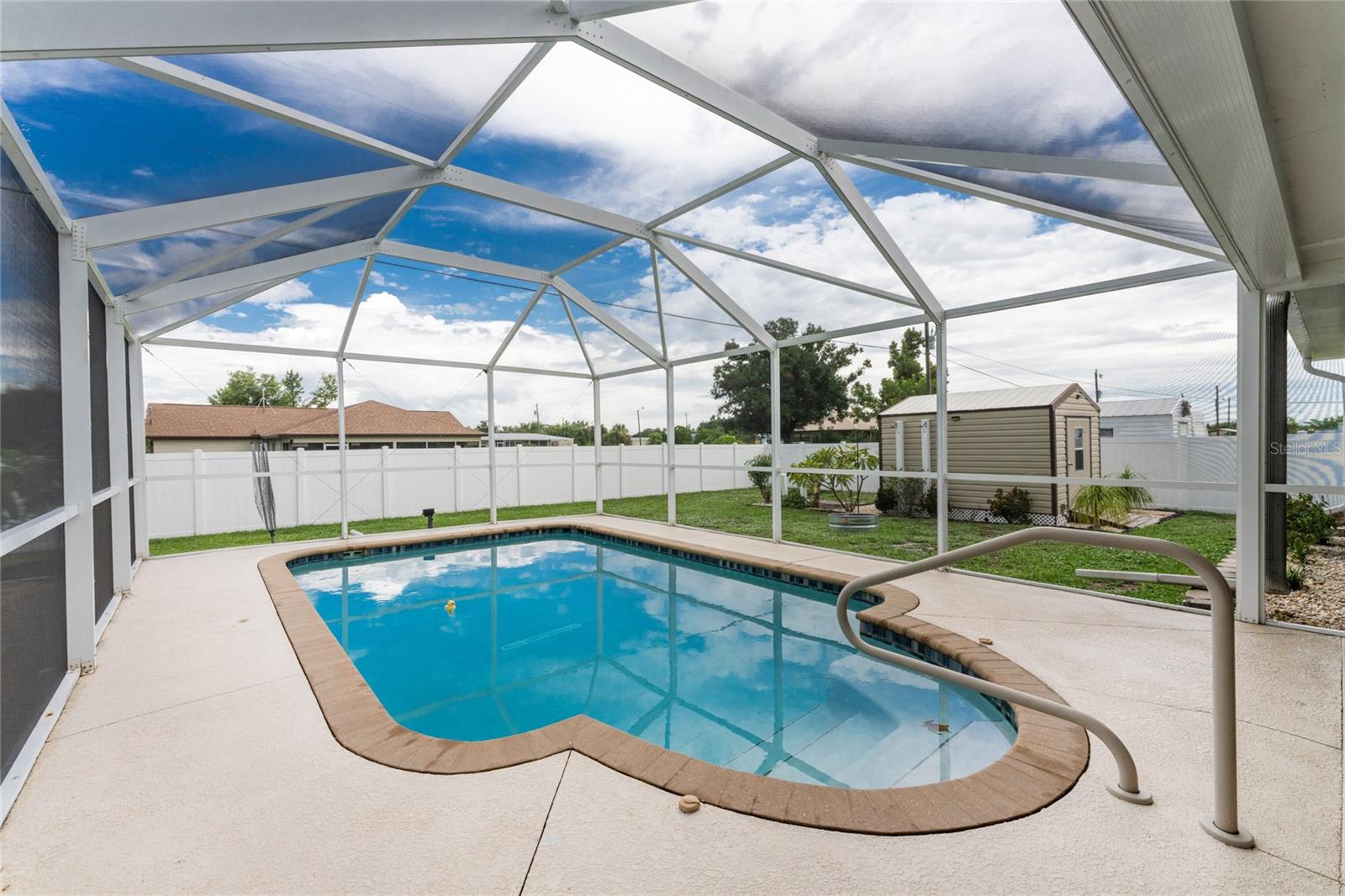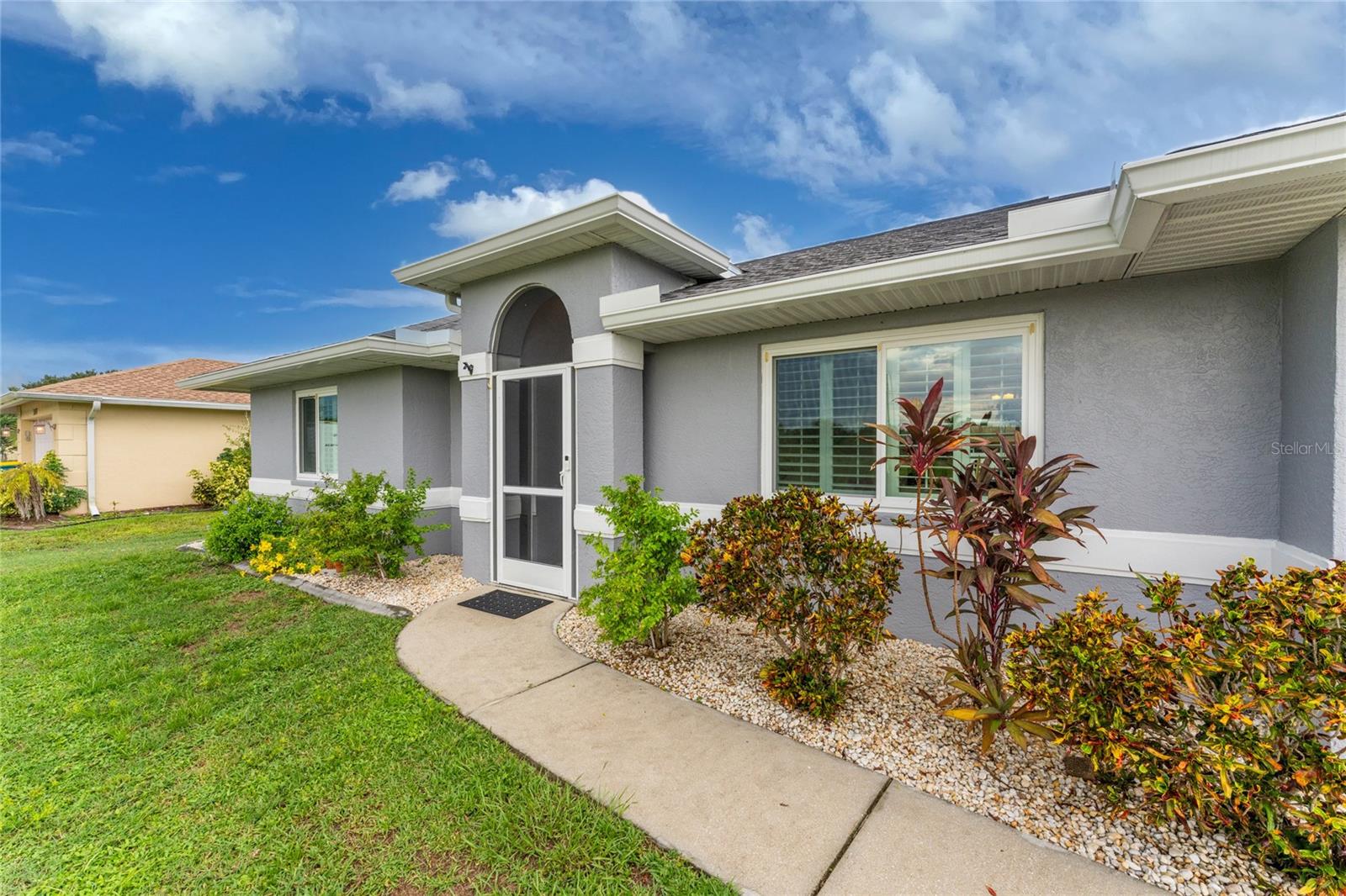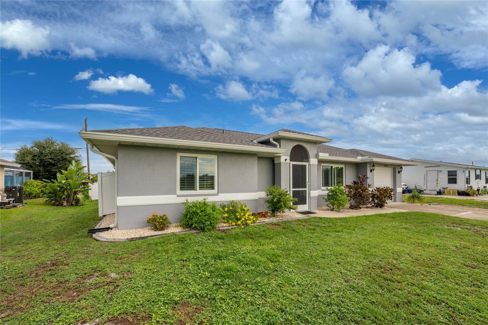 This home survived both recent hurricanes undamaged! MOVE IN READY! UPDATED, TURNKEY 2 bedroom, 2 bath, 1 car garage home with outdoor entertainment space that includes a screened-in saltwater-chlorine generated pool! Brand new roof, HVAC, Septic, Hurricane windows, Plantation shutters throughout & Pool pump. Have both privacy and convenience with this move in ready home! The house was just recently painted as well. Enhancing the already clean lines outside the owner has planted mature privacy hedges on both sides of the property! The screened front entry with high ceilings and a storm door invites you into the foyer garnished with tile flooring and a decorative inlay. The airy living room is filled with natural light, an open floor plan, and Porcelain tile throughout the entire home. The kitchen has stainless steel appliances, Reverse Osmosis system, tile backsplash, closet pantry, and pass-through window to lanai! From the dining room, the sliding doors lead to the very large lanai and pool! Master Bedroom has two closets with ensuite bathroom. Interior laundry room adds convenience and cleanliness. The large lanai has insulated roof, fans, and includes the Hydro pool hot tub. Saltwater Pool installed 2015, screened. The lush backyard has a 12 x 10 Lark storage shed and a fire pit! Pull over shell driveway for ease of extra off-street parking. This home is located in Harbour Heights, a non-deed restricted waterfront community with Harbour Heights Park maintained by Charlotte County. This community offers a public boat ramp, day docks, playground, pavilions and barbecue areas, basketball, shuffleboard, lighted tennis courts, and even a butterfly garden! Boat ramp provides access to the Peace River, Charlotte Harbor and the Gulf of Mexico. Golf, schools, medical, and shopping are all nearby. Just a short distance to I-75 at exit 167 affords easy access to Fort Myers/Naples to the south and Venice/Sarasota to the north.