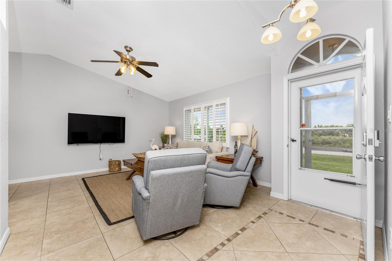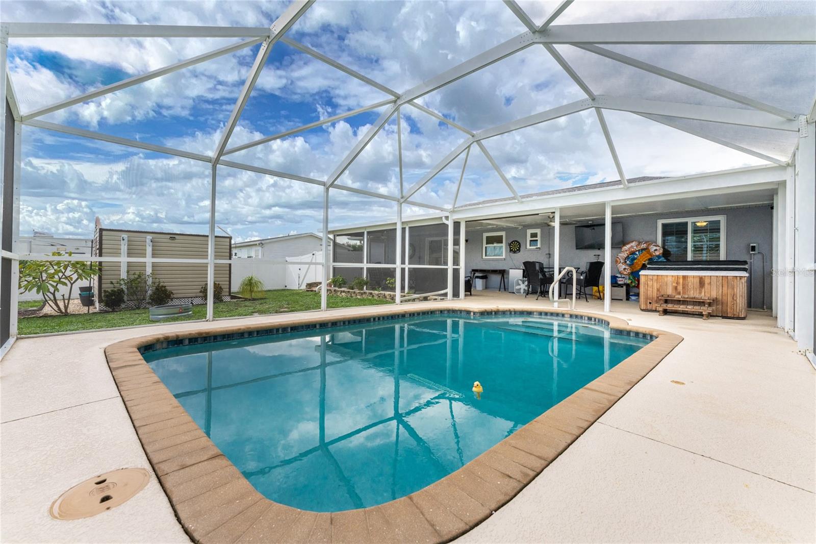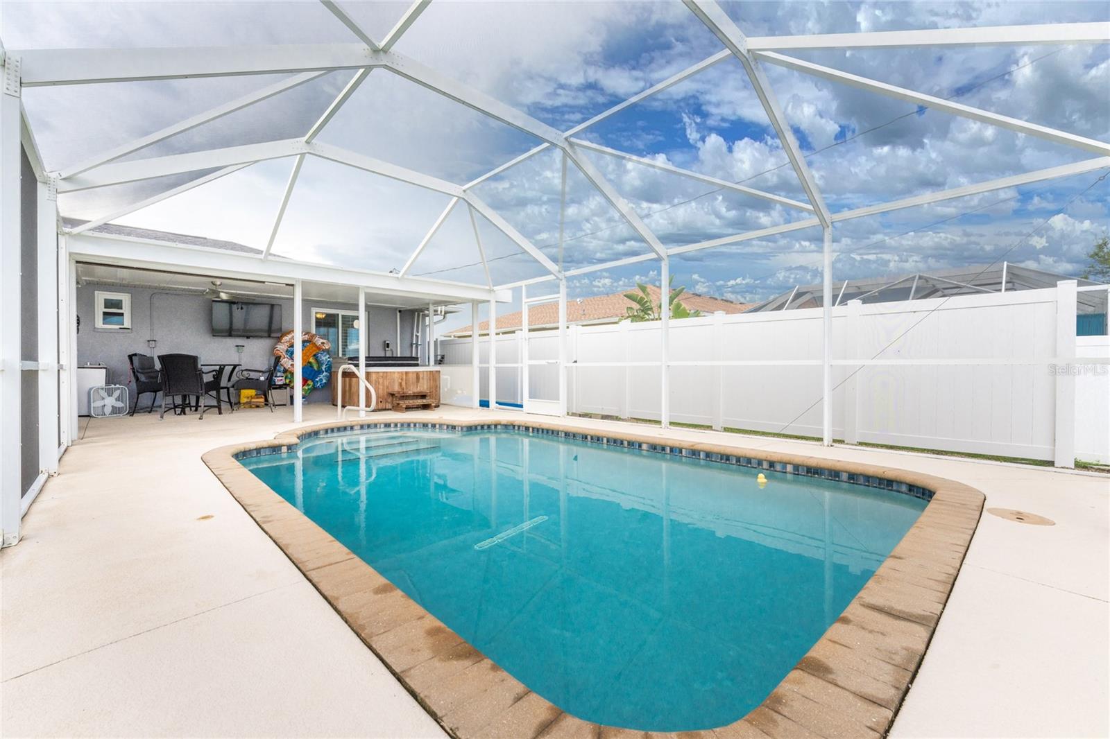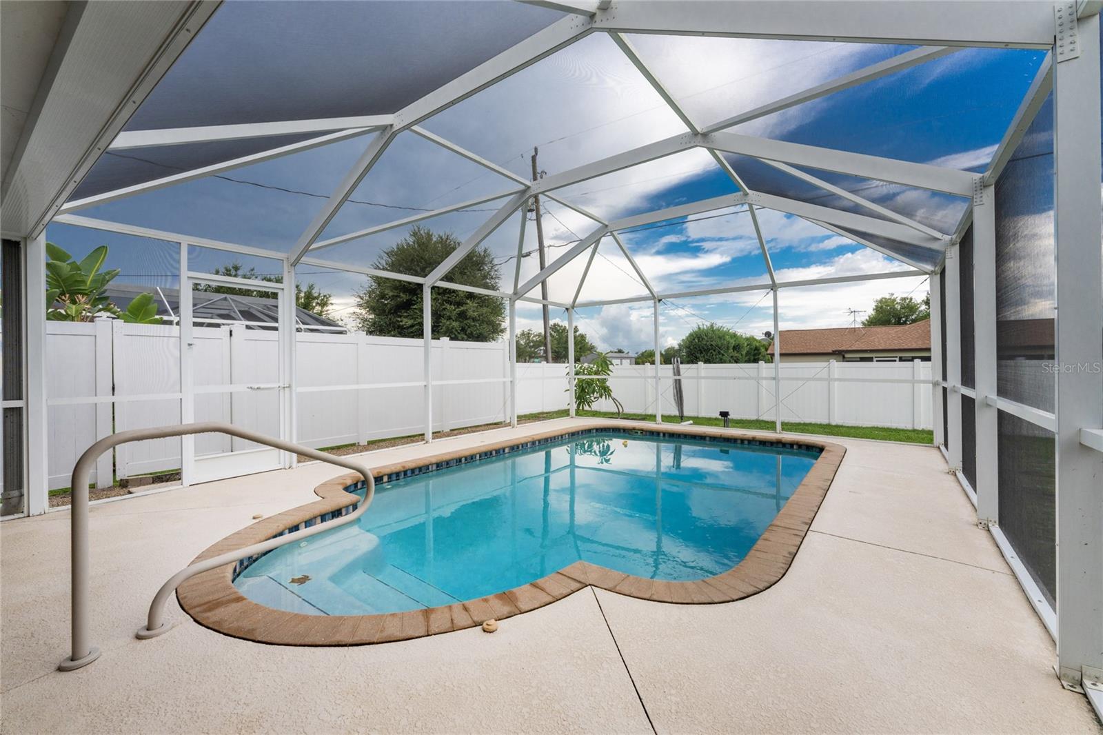 This home survived both recent hurricanes undamaged! MOVE IN READY! UPDATED, TURNKEY 2 bedroom, 2 bath, 1 car garage home with outdoor entertainment space that includes a screened-in saltwater-chlorine generated pool! Brand new roof, HVAC, Septic, Hurricane windows, Plantation shutters throughout & Pool pump. Have both privacy and convenience with this move in ready home! The house was just recently painted as well. Enhancing the already clean lines outside the owner has planted mature privacy hedges on both sides of the property! The screened front entry with high ceilings and a storm door invites you into the foyer garnished with tile flooring and a decorative inlay. The airy living room is filled with natural light, an open floor plan, and Porcelain tile throughout the entire home. The kitchen has stainless steel appliances, Reverse Osmosis system, tile backsplash, closet pantry, and pass-through window to lanai! From the dining room, the sliding doors lead to the very large lanai and pool! Master Bedroom has two closets with ensuite bathroom. Interior laundry room adds convenience and cleanliness. The large lanai has insulated roof, fans, and includes the Hydro pool hot tub. Saltwater Pool installed 2015, screened. The lush backyard has a 12 x 10 Lark storage shed and a fire pit! Pull over shell driveway for ease of extra off-street parking. This home is located in Harbour Heights, a non-deed restricted waterfront community with Harbour Heights Park maintained by Charlotte County. This community offers a public boat ramp, day docks, playground, pavilions and barbecue areas, basketball, shuffleboard, lighted tennis courts, and even a butterfly garden! Boat ramp provides access to the Peace River, Charlotte Harbor and the Gulf of Mexico. Golf, schools, medical, and shopping are all nearby. Just a short distance to I-75 at exit 167 affords easy access to Fort Myers/Naples to the south and Venice/Sarasota to the north.