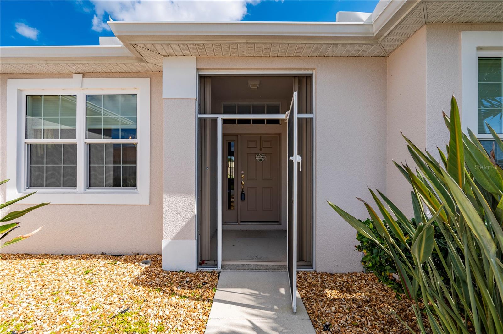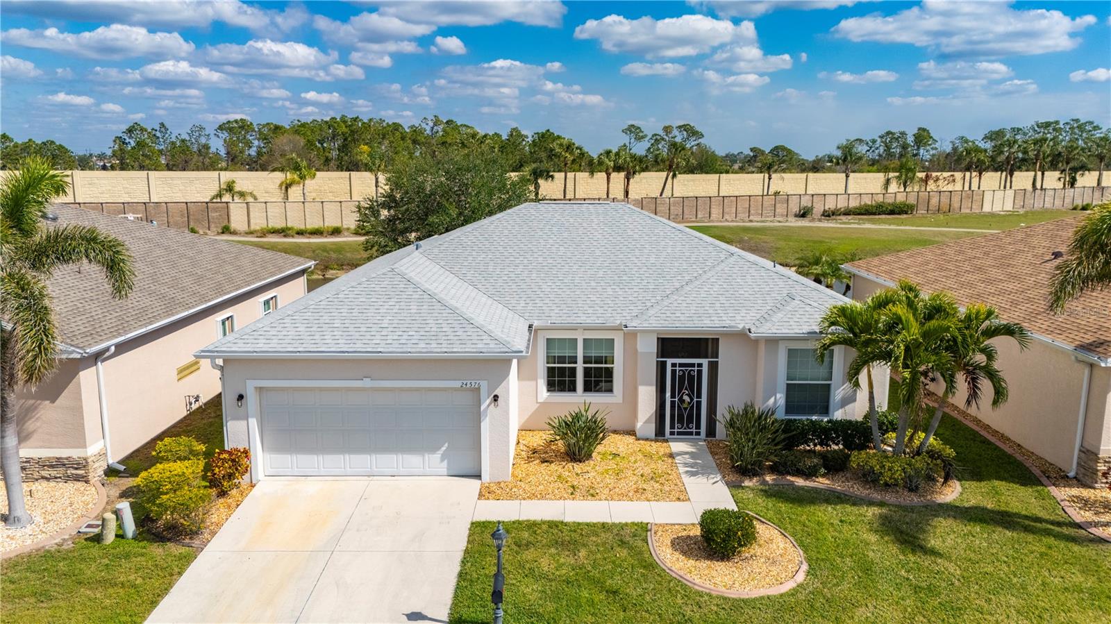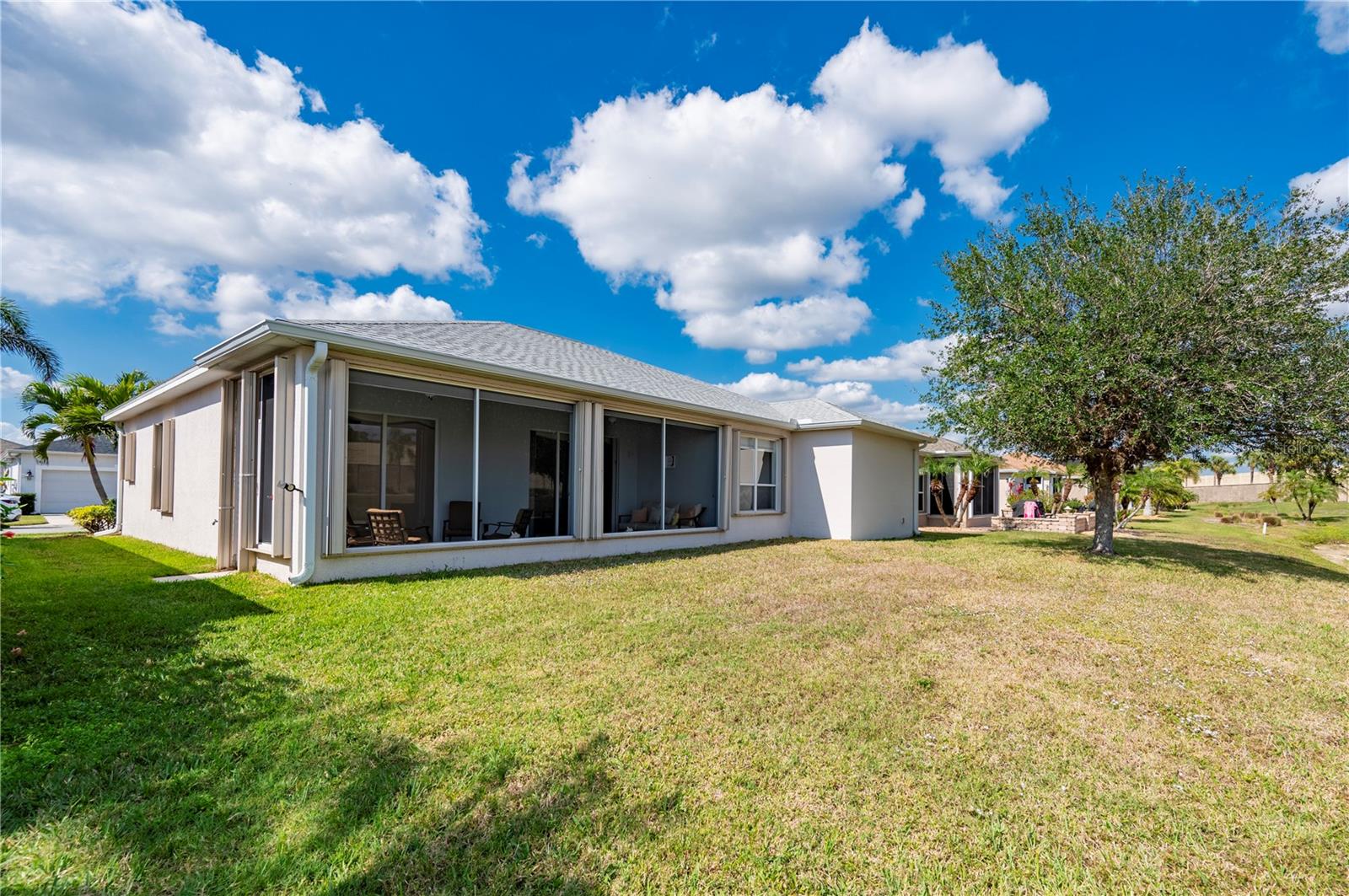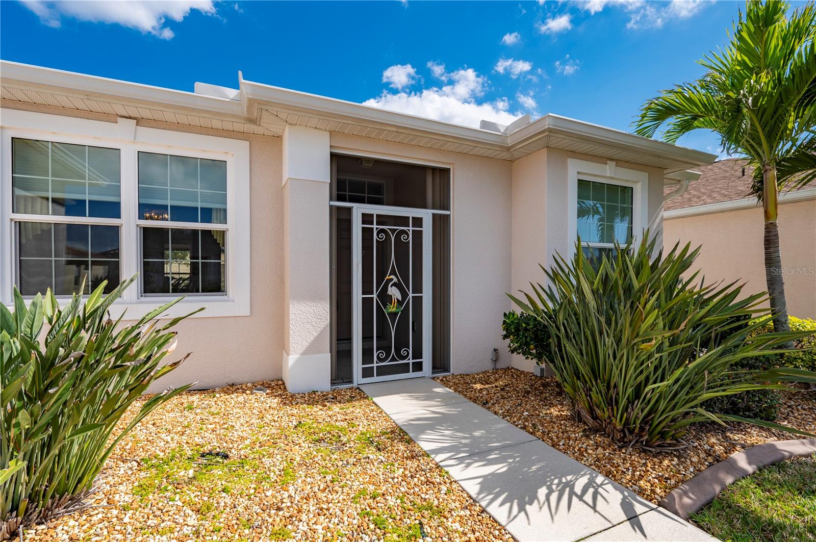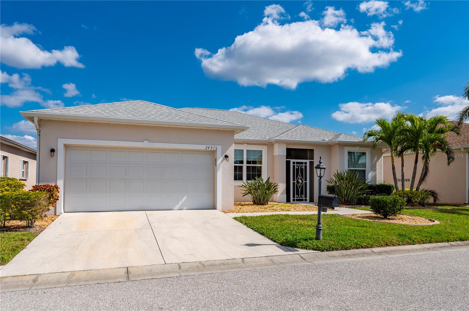 Lovely! Enjoy serene lake and golf course views from this spacious 3-bedroom, 2-bath, 2-car garage home in the desirable 55+ gated golf community of Kings Gate. Built in 2009, this open-concept home offers an airy living area with double sliders leading to an expansive screened lanai—perfect for relaxing and watching herons, ibis, and other native birds. The kitchen features ample cabinetry, a pantry, a breakfast bar, and a cozy dining nook. The oversized primary suite includes lanai access, a walk-in closet, and a luxurious en-suite bath with dual sinks, a soaking tub, and a separate shower. Upgrades include a new roof (2022), A/C (2018), accordion hurricane shutters, impact glass front window, reverse osmosis system, and underground utilities. The Community maintains the irrigation system provides basic cable and keeps your lawn mowed and trimmed. Kings Gate amenities include a full-time Activities Director so there are plenty of fun events scheduled all year long, and you will also enjoy the enormous heated pool and spa, pickleball, tennis, billiards, a complete fitness center, crafts, and on-site golf course and restaurant. Boat/RV storage is available separately. So close to shopping, dining, I-75, and historic Punta Gorda. Fort Myers and Sarasota are nearby, as are several public beaches. Don’t miss this nature-rich retreat—schedule your tour today!