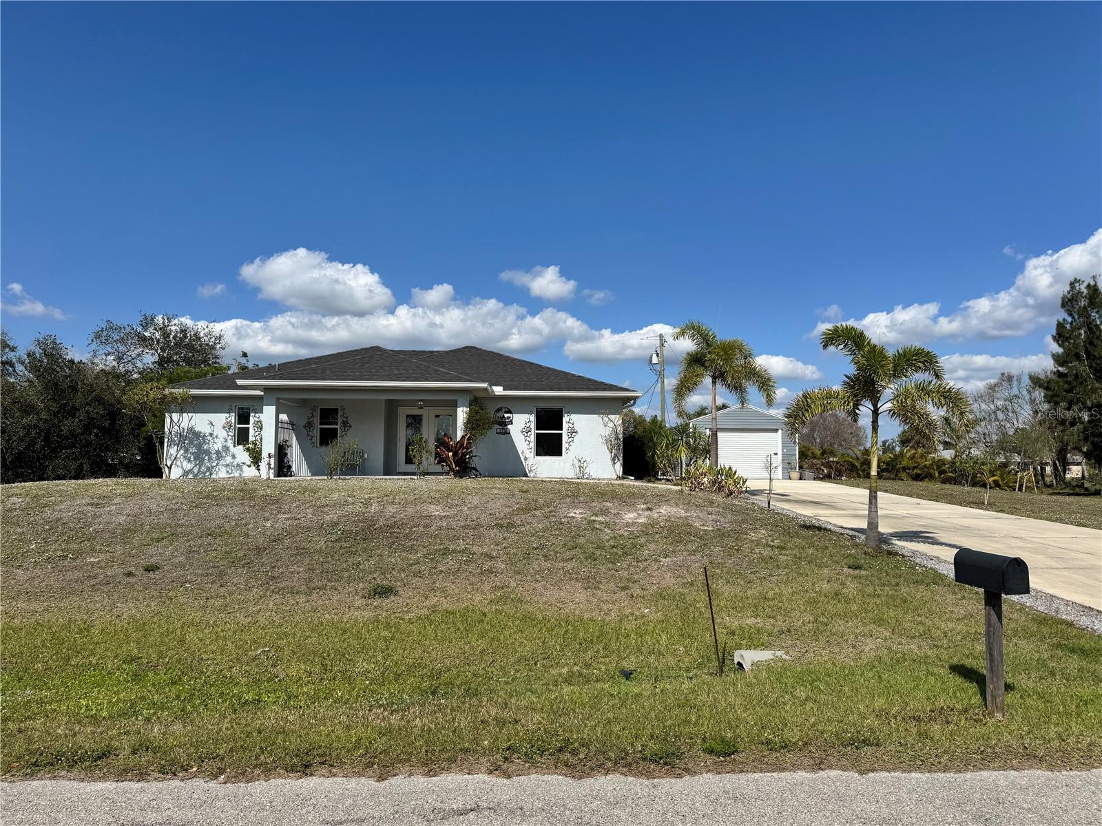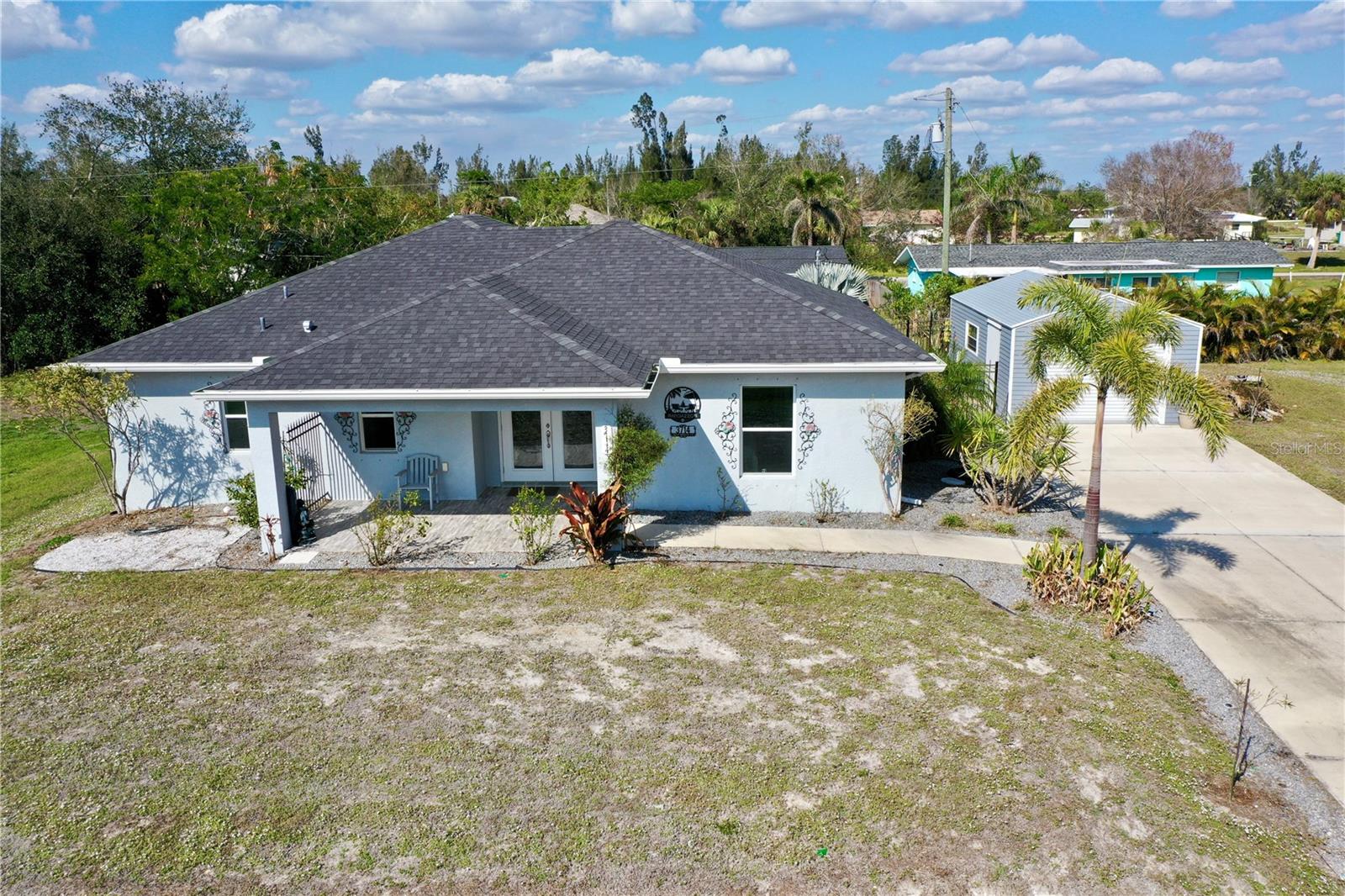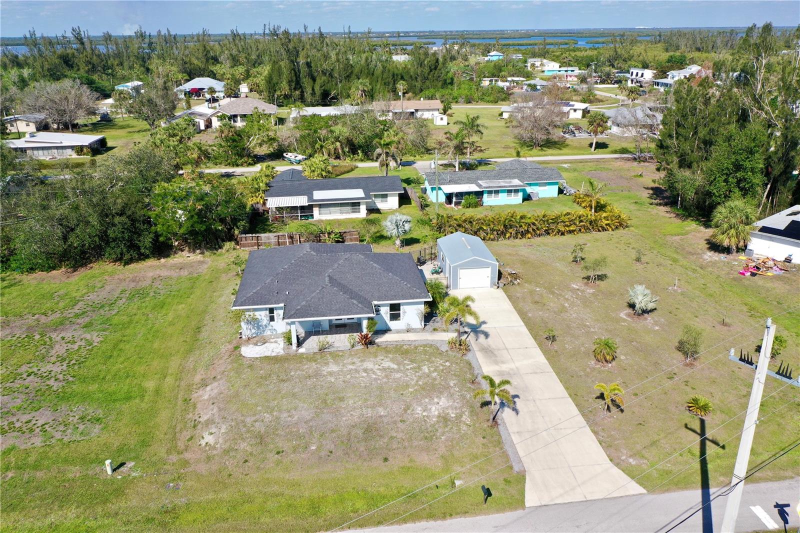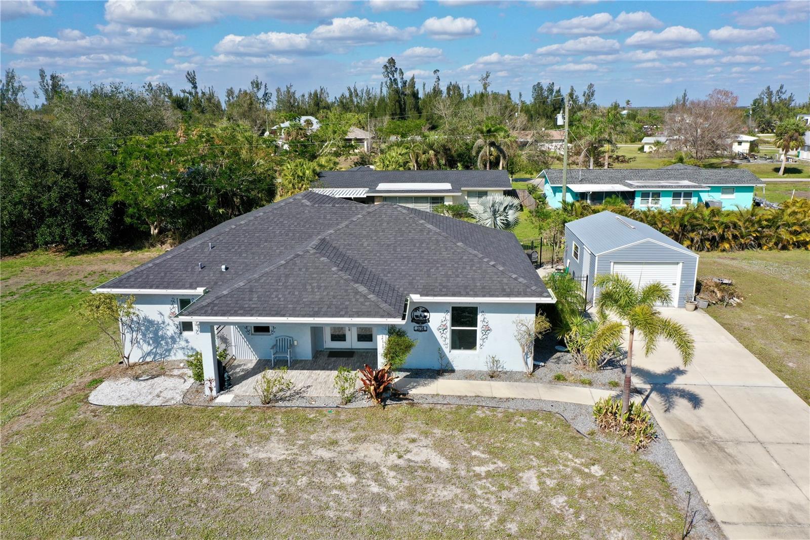 Welcome to your dream home in Punta Gorda! This spacious 2 bedroom, 2 bathroom residence spans 1,400 square feet and was meticulously built in 2019 on an expansive 18,021 sqf, TRIPLE LOT. Situated on high ground, this home proudly stands as it did not flood during the storms of 2024, offering peace of mind within your tranquil surroundings. As you enter, you're greeted by tasteful high-end fixtures, vaulted ceilings, and tile floors throughout, that elevate the split-bedroom home’s elegance. The master spacious main bedroom has a slider to the oversized, screened in lanai, to enjoy the breeze in the evenings. And the primary bathroom has a dual sided walk in shower with two shower heads. The The hurricane impact windows not only provide safety and security but also ensure natural light floods the space, enhancing the open and airy feel of the living areas. Step outside to the back of the home where a large, tiled, screened-in, and covered lanai awaits. This outdoor lanai is accessible through a triple sliding door, perfect for seamless indoor-outdoor living, hosting gatherings, or simply enjoying the Florida sunshine in privacy. The property also features an irrigation system that can keep the landscaping in prime condition year-round, adding to the home's curb appeal and ensuring your outdoor spaces remain vibrant. The property's location is unbeatable for both convenience and leisure. Just a short drive from downtown Punta Gorda, where you can enjoy quaint shops, gourmet dining, and vibrant waterfront activities. For travel, you're minutes away from major transit points with Charlotte County Airport only 5 minutes down the road and Southwest Florida International Airport (RSW) in Fort Myers approximately 40 minutes away. Excellent road access is provided via nearby I-75, making both north and south travel throughout Florida a breeze. For the boating enthusiasts, the Darst Boat Ramp is right down the street, offering direct access to the beautiful waters of the Charlotte Harbor and the Gulf. And for the avid golfer, there is a different course for each day of the week all within a 30 minute drive. This home combines luxury, safety, and prime location, making it an exceptional find in Punta Gorda. Don't miss your chance to own this gem where comfort meets functionality in one of Florida's most desirable locales.