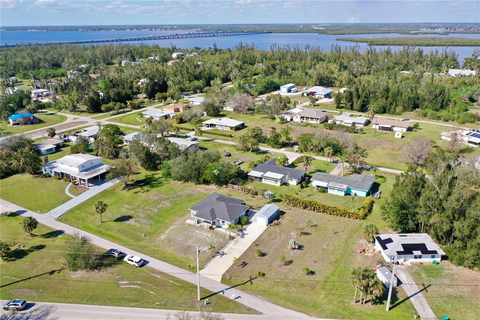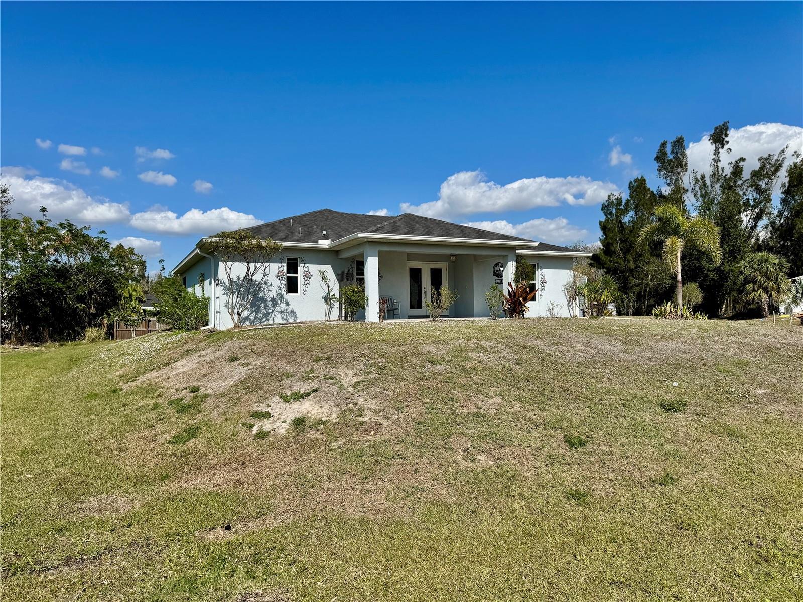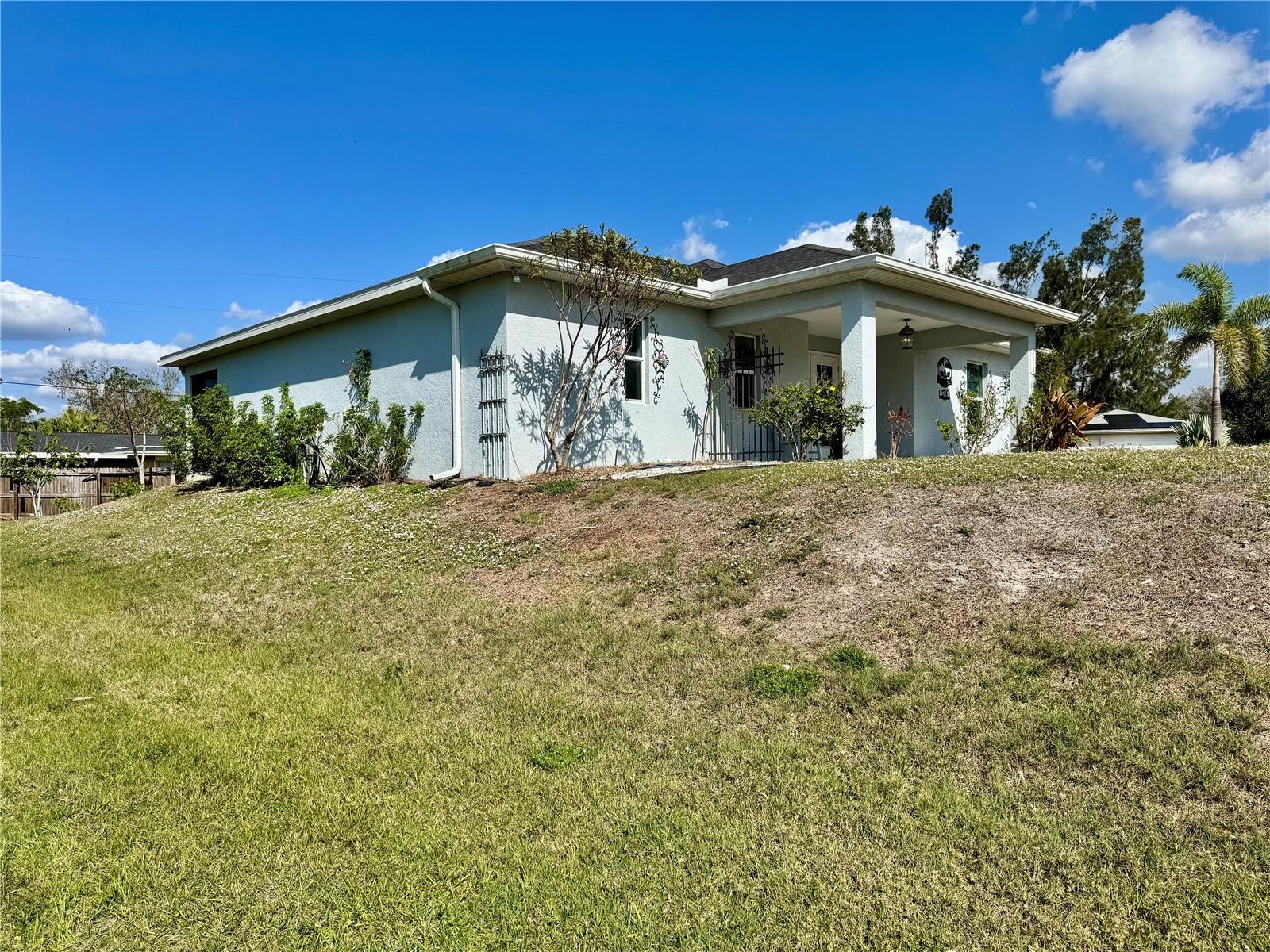 Welcome to your dream home in Punta Gorda! This spacious 2 bedroom, 2 bathroom residence spans 1,400 square feet and was meticulously built in 2019 on an expansive 18,021 sqf, TRIPLE LOT. Situated on high ground, this home proudly stands as it did not flood during the storms of 2024, offering peace of mind within your tranquil surroundings. As you enter, you're greeted by tasteful high-end fixtures, vaulted ceilings, and tile floors throughout, that elevate the split-bedroom home’s elegance. The master spacious main bedroom has a slider to the oversized, screened in lanai, to enjoy the breeze in the evenings. And the primary bathroom has a dual sided walk in shower with two shower heads. The The hurricane impact windows not only provide safety and security but also ensure natural light floods the space, enhancing the open and airy feel of the living areas. Step outside to the back of the home where a large, tiled, screened-in, and covered lanai awaits. This outdoor lanai is accessible through a triple sliding door, perfect for seamless indoor-outdoor living, hosting gatherings, or simply enjoying the Florida sunshine in privacy. The property also features an irrigation system that can keep the landscaping in prime condition year-round, adding to the home's curb appeal and ensuring your outdoor spaces remain vibrant. The property's location is unbeatable for both convenience and leisure. Just a short drive from downtown Punta Gorda, where you can enjoy quaint shops, gourmet dining, and vibrant waterfront activities. For travel, you're minutes away from major transit points with Charlotte County Airport only 5 minutes down the road and Southwest Florida International Airport (RSW) in Fort Myers approximately 40 minutes away. Excellent road access is provided via nearby I-75, making both north and south travel throughout Florida a breeze. For the boating enthusiasts, the Darst Boat Ramp is right down the street, offering direct access to the beautiful waters of the Charlotte Harbor and the Gulf. And for the avid golfer, there is a different course for each day of the week all within a 30 minute drive. This home combines luxury, safety, and prime location, making it an exceptional find in Punta Gorda. Don't miss your chance to own this gem where comfort meets functionality in one of Florida's most desirable locales.
