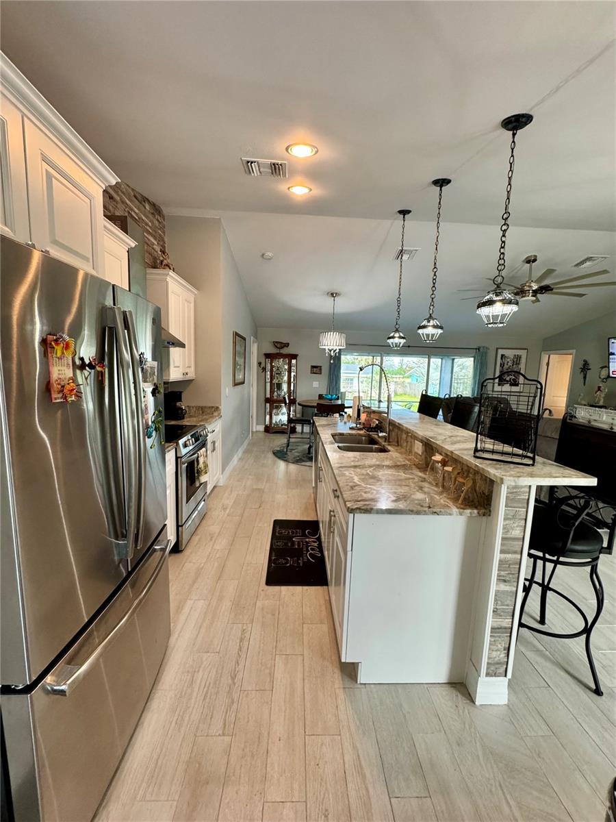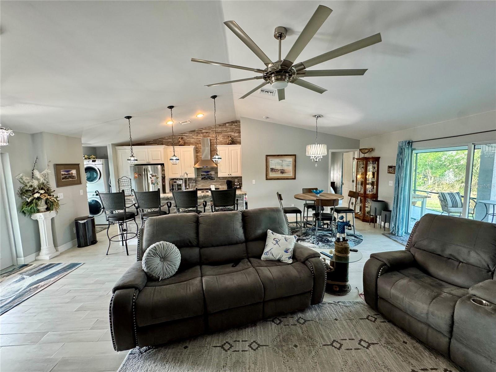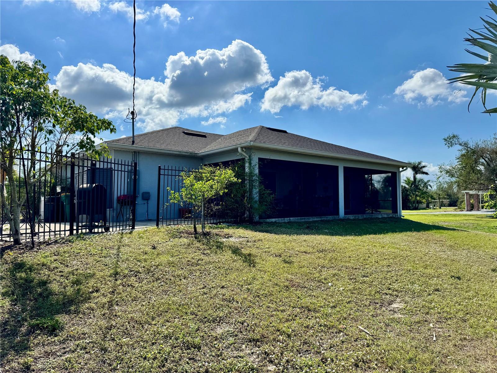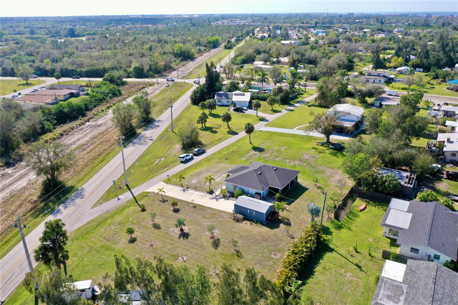 Welcome to your dream home in Punta Gorda! This spacious 2 bedroom, 2 bathroom residence spans 1,400 square feet and was meticulously built in 2019 on an expansive 18,021 sqf, TRIPLE LOT. Situated on high ground, this home proudly stands as it did not flood during the storms of 2024, offering peace of mind within your tranquil surroundings. As you enter, you're greeted by tasteful high-end fixtures, vaulted ceilings, and tile floors throughout, that elevate the split-bedroom home’s elegance. The master spacious main bedroom has a slider to the oversized, screened in lanai, to enjoy the breeze in the evenings. And the primary bathroom has a dual sided walk in shower with two shower heads. The The hurricane impact windows not only provide safety and security but also ensure natural light floods the space, enhancing the open and airy feel of the living areas. Step outside to the back of the home where a large, tiled, screened-in, and covered lanai awaits. This outdoor lanai is accessible through a triple sliding door, perfect for seamless indoor-outdoor living, hosting gatherings, or simply enjoying the Florida sunshine in privacy. The property also features an irrigation system that can keep the landscaping in prime condition year-round, adding to the home's curb appeal and ensuring your outdoor spaces remain vibrant. The property's location is unbeatable for both convenience and leisure. Just a short drive from downtown Punta Gorda, where you can enjoy quaint shops, gourmet dining, and vibrant waterfront activities. For travel, you're minutes away from major transit points with Charlotte County Airport only 5 minutes down the road and Southwest Florida International Airport (RSW) in Fort Myers approximately 40 minutes away. Excellent road access is provided via nearby I-75, making both north and south travel throughout Florida a breeze. For the boating enthusiasts, the Darst Boat Ramp is right down the street, offering direct access to the beautiful waters of the Charlotte Harbor and the Gulf. And for the avid golfer, there is a different course for each day of the week all within a 30 minute drive. This home combines luxury, safety, and prime location, making it an exceptional find in Punta Gorda. Don't miss your chance to own this gem where comfort meets functionality in one of Florida's most desirable locales.