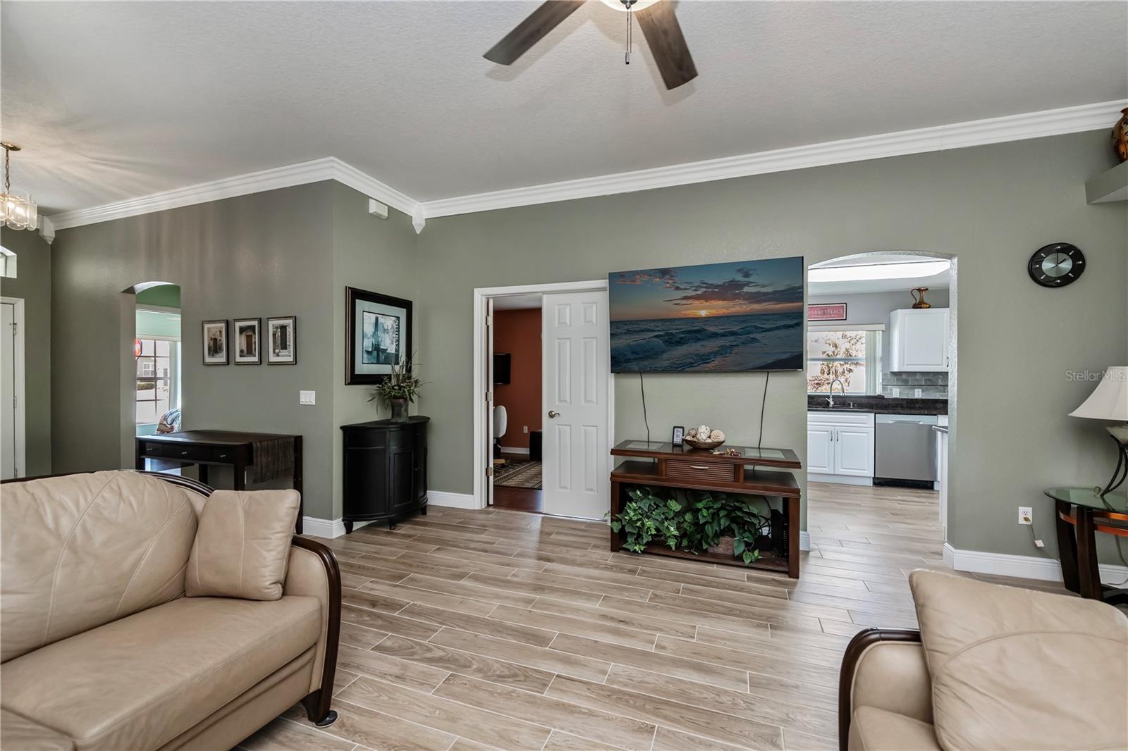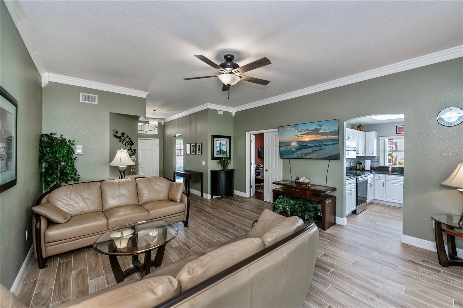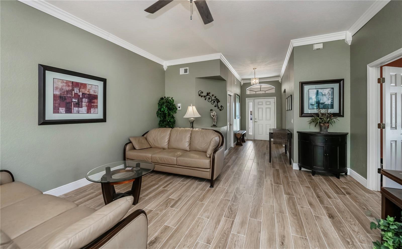 Come and live like you are on vacation in this amazing 55+ community. This home is on a lage corner lot, with new tile throughout the main areas of the house, master bedroom, bathrooms, and florida room. This is a beautiful 2 bedroom, 2 bath home with new ceiling fans, new kitchen cabinet doors, and new back splash. You will love all the activities they have in this community. An olympic sized heated pool, spa, tennis courts, pickle ball courts, shuffleboard, bocce, horshoes, a gym and the list goes on and on. This community does not require flood insurance. It is 20 ft above sea level and has never experienced any kind of storm surge. The evacuation zone is D. Come and see this beautiful home today, it is move in ready.