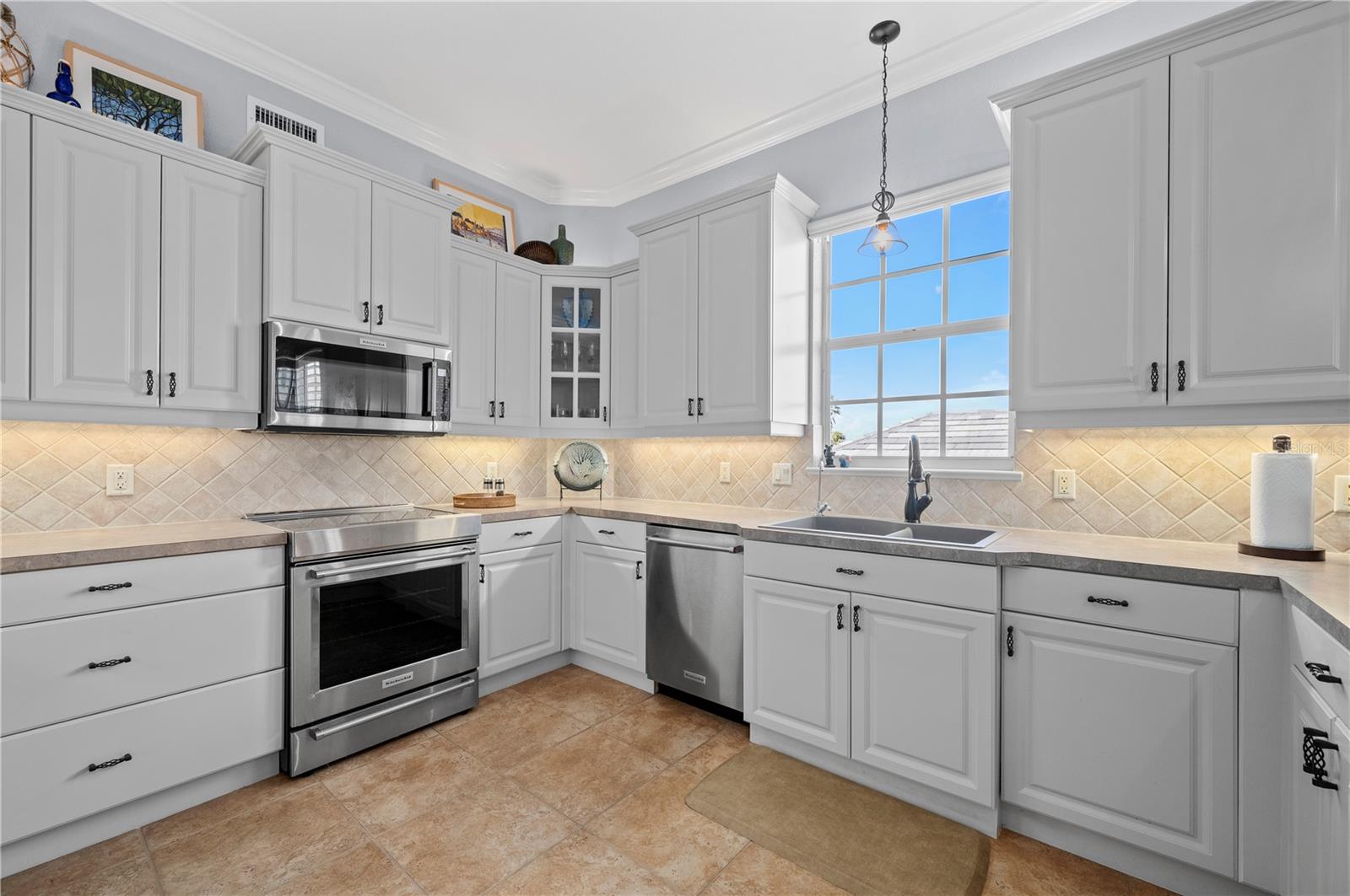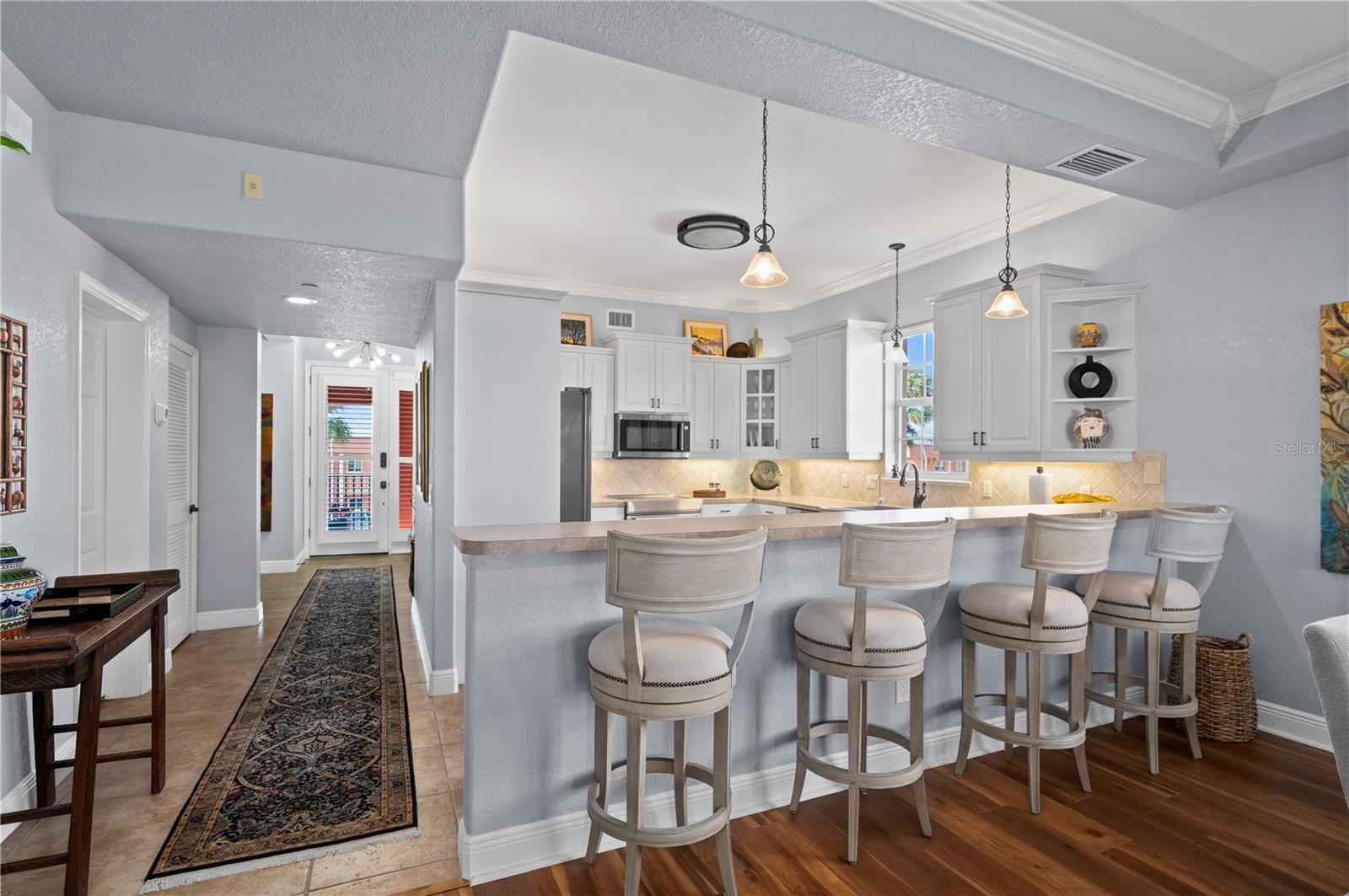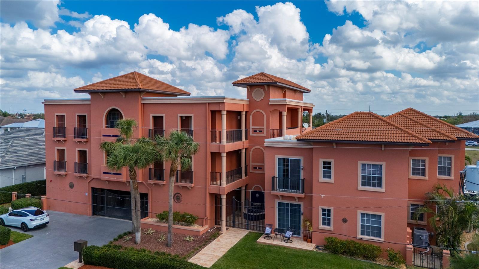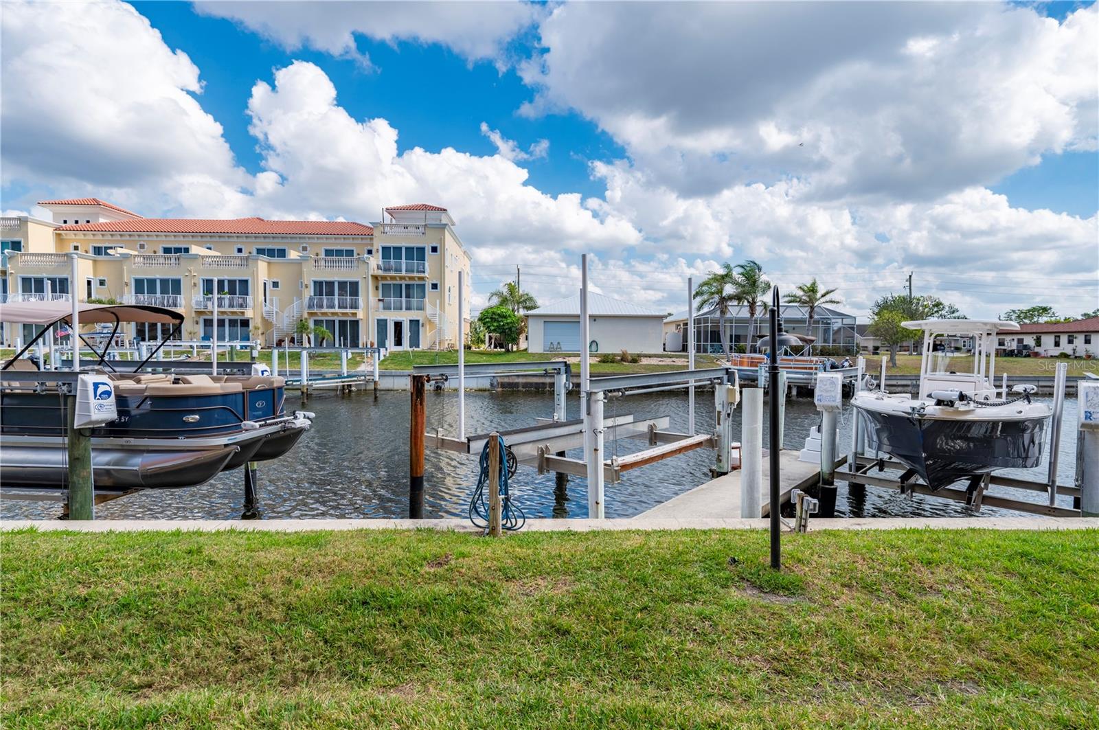 LUXURY WATERFRONT CONDO in Punta Gorda Isles. This elegant & stunning CORNER UNIT offers everything you need for the perfect Florida lifestyle! WATER VIEWS, BOATING to Charlotte Harbor, the Gulf & BEACHES. With a DEEDED BOAT SLIP, a 10,000 pound BOAT LIFT, 2 DEEDED PARKING SPACES in a secure, GATED UNDER-BUILDING GARAGE, INDIVIDUAL STORAGE UNIT, + room for Golf Cart parking & BUILDING ELEVATOR this home is a boater’s dream. Step inside to a spacious, open floor plan with 3 BEDROOMS, 2 BATHROOMS, 2,034 square feet and neutral plank wood-look luxury vinyl & tile flooring throughout. Large windows and WOOD PLANTATION SHUTTERS allow natural light to pour in while offering privacy when needed. The split floor-plan ensures maximum comfort, with the primary suite featuring twin closets, balcony access, water views, an ensuite bath with a walk-in Roman shower, soaking tub, and dual sinks. The guest bedrooms are located on the opposite side of the condo for added privacy, along with a well-appointed guest bath. The large kitchen is designed for both function and style, complete with stainless steel appliances, a breakfast bar, and an adjacent dining area. The expansive living and great room provide plenty of space for entertaining or relaxing. Step onto the oversized, screened-in balcony to soak in the panoramic water views—this is Florida living at its finest. This condo is equipped with modern updates, including new luxury vinyl flooring, modern lighting, a new roof (2025), impact glass on the front door, and remote-controlled electric hurricane shutters for the patio sliding doors for added peace of mind. The private storage area in the garage comes with shelving and a workbench, making organization a breeze. Beyond your front door, enjoy resort-style amenities, including a community heated pool, grill area, fishing, boating and canal-side seating. The location is unbeatable— By boat or car you are just minutes from charming downtown Punta Gorda, Fishermen’s Village, shopping, dining and local favorites like the weekly farmer’s market. Outdoor enthusiasts will love the nearby bike and walking paths, pickleball courts, golf courses, and boating opportunities. Punta Gorda’s vibrant social scene includes live music, waterfront dining, festivals, and more. Whether you’re looking for a peaceful retreat or an active Florida lifestyle, this condo has it all. Don’t miss your chance to own a piece of paradise with unbeatable water views and boating access.
