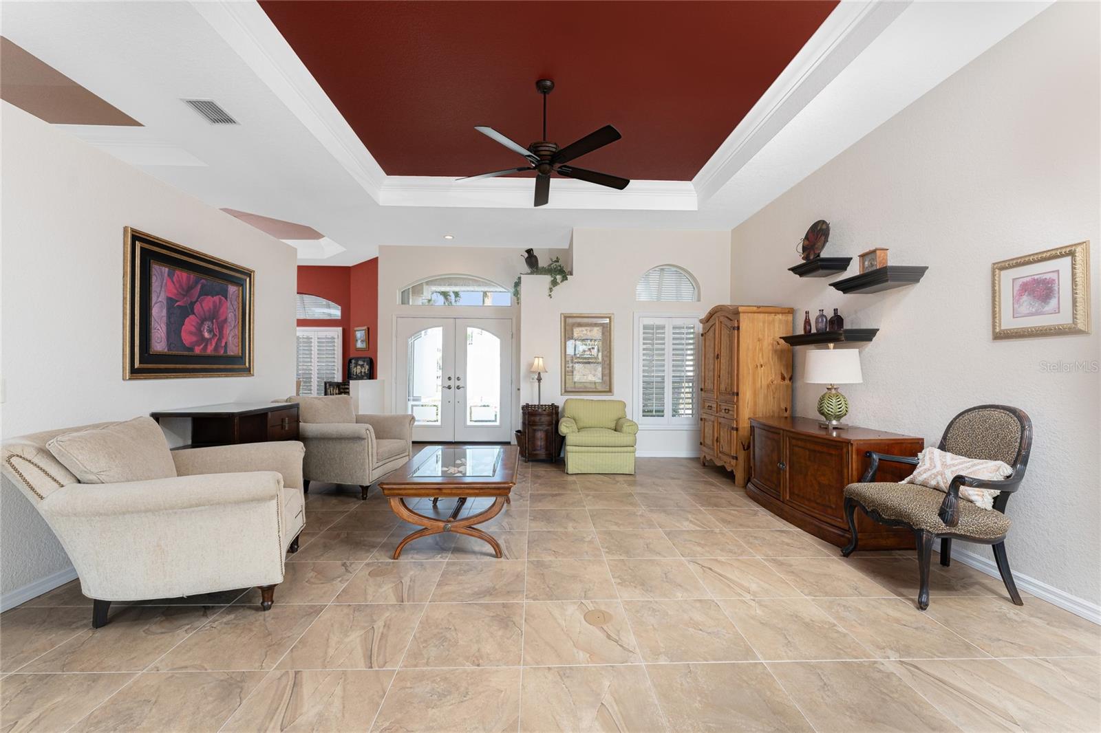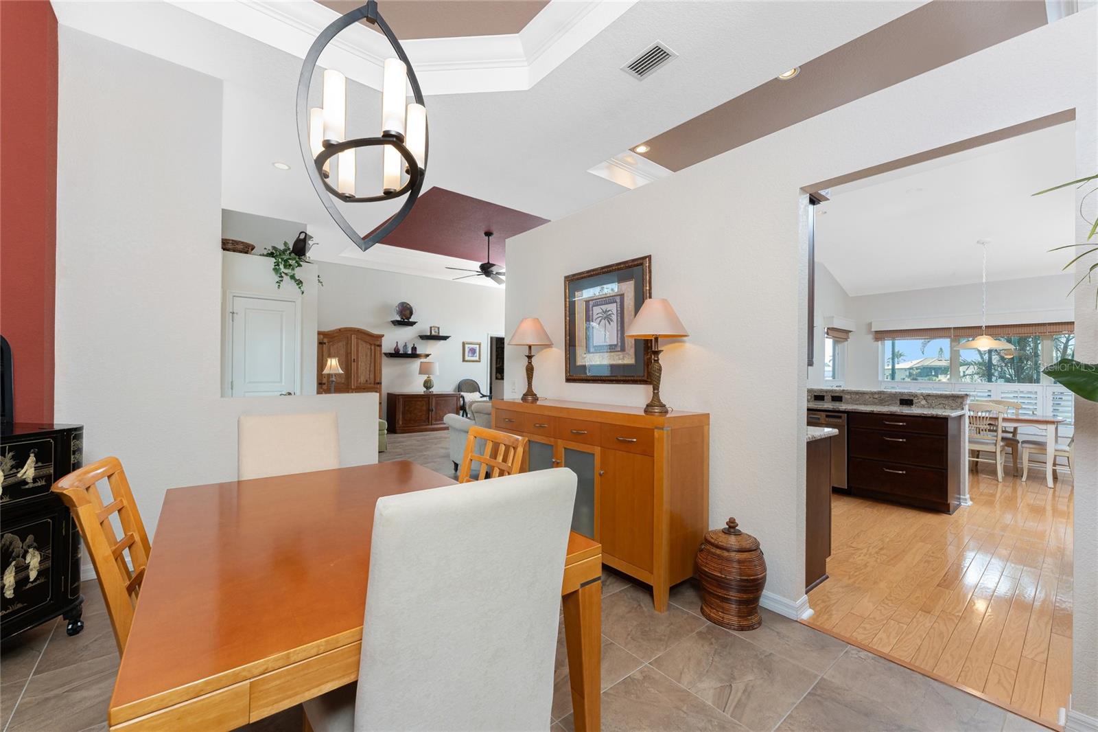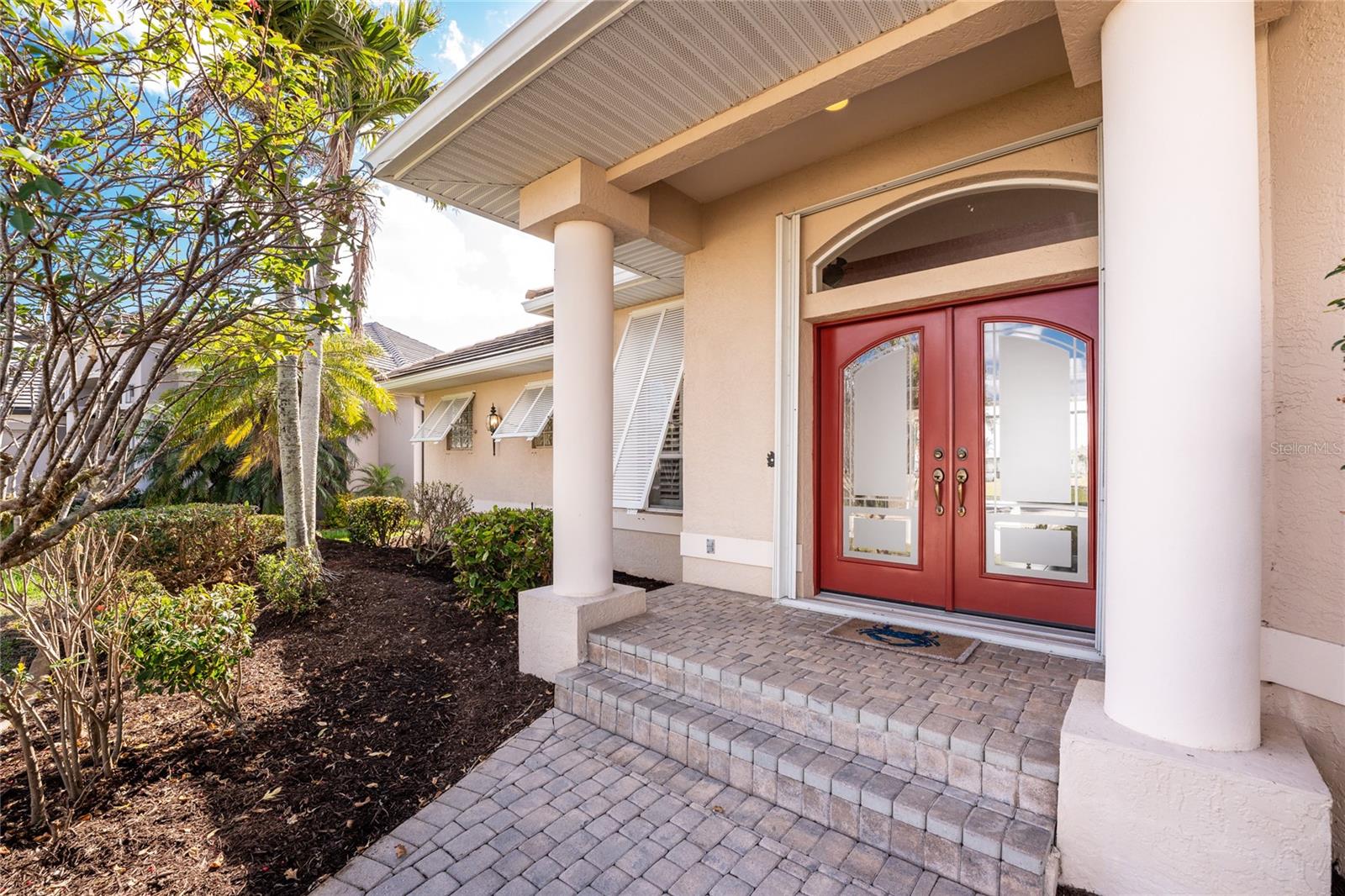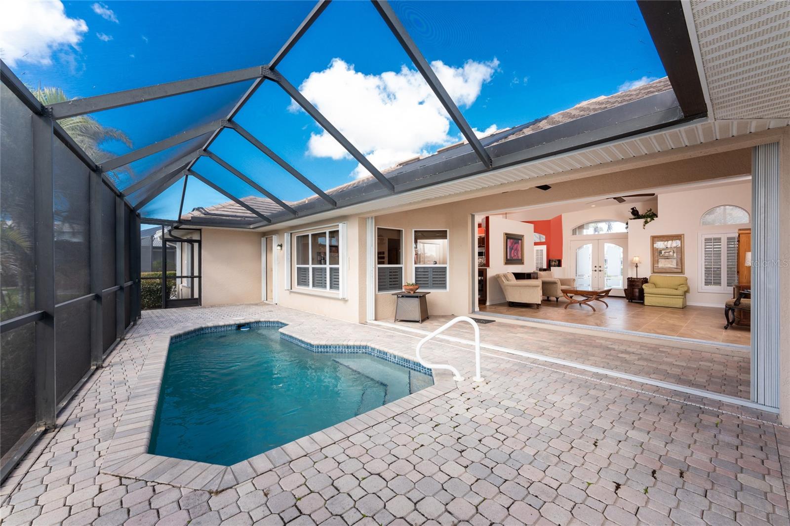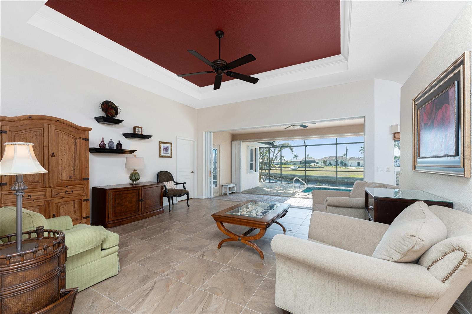 One or more photo(s) has been virtually staged. Elegant waterfront home in prestigious Punta Gorda Isles offers 95 FEET OF SALTWATER FRONT, City owned and maintained concrete seawall with dual docks and an electric boat lift, providing you quick SAILBOAT ACCESS (aka NO BRIDGES) to Charlotte Harbor. This custom-built 3-bedroom, 2-bath home, built by SandStar Custom Homes (now an Arthur Rutenberg Homes franchisee) sits on a QUIET CUL-DE-SAC surrounded by million-dollar properties. SOUTHERN EXPOSURE illuminates the SOLAR-HEATED POOL and an expansive lanai and pool area, all enhanced by premium brick pavers extending to the driveway and walkways. There's also FULL HURRICANE PROTECTION for the entire home. PER THE SELLER, THIS HOME HAS NEVER FLOODED. Interior features showcase meticulous attention to detail with TRAY CEILINGS, CROWN MOLDING, and designer touches including Bermuda exterior shutters and classic plantation shutters throughout. The upgraded kitchen boasts FINE WOOD CABINETRY and FABULOUS GRANITE COUNTERS. Recent improvements include a 2-year-old HVAC system and a 1-year-old water heater. This home also has an efficient Manabloc manifold plumbing system. This charming home should be on your short list. Call for an appointment to see this beautiful home today!