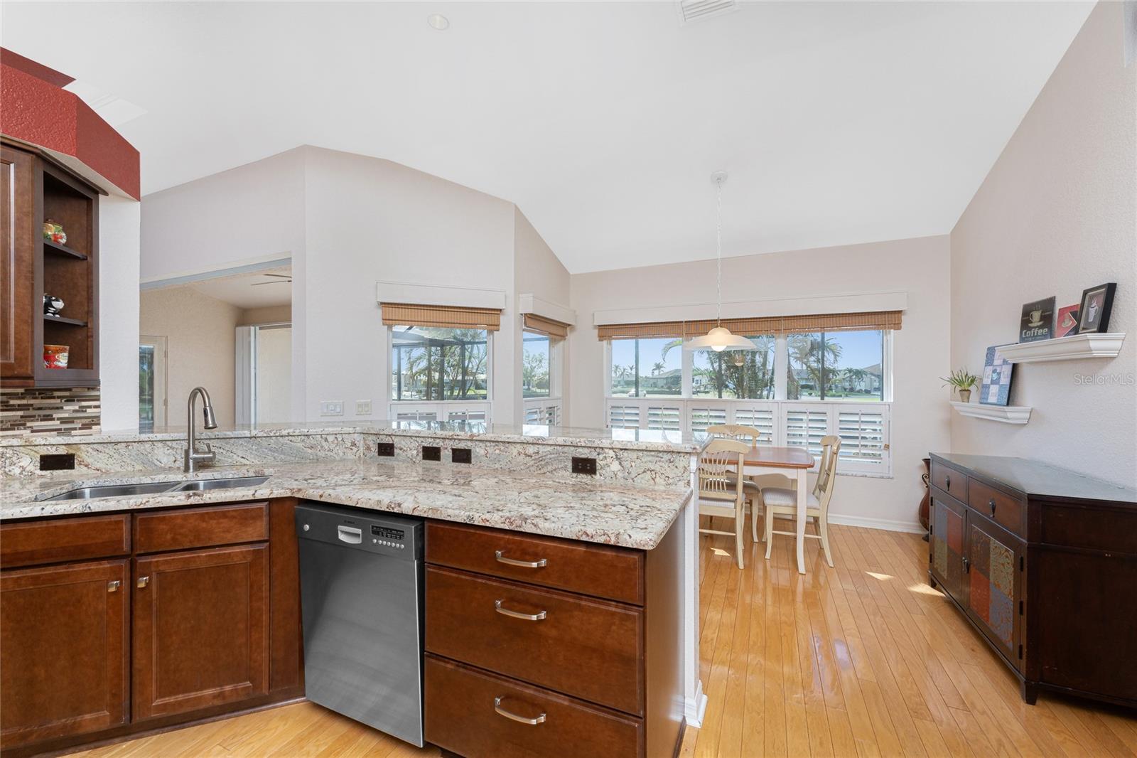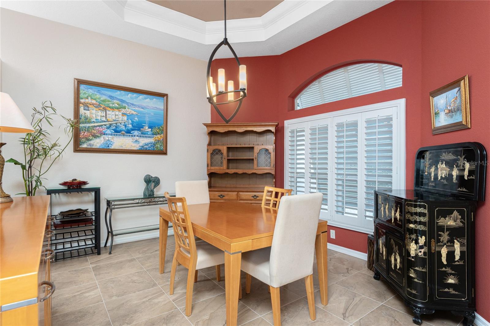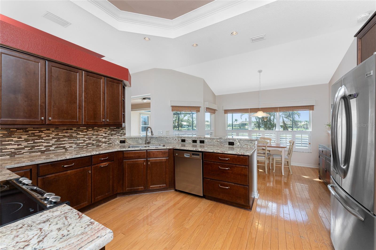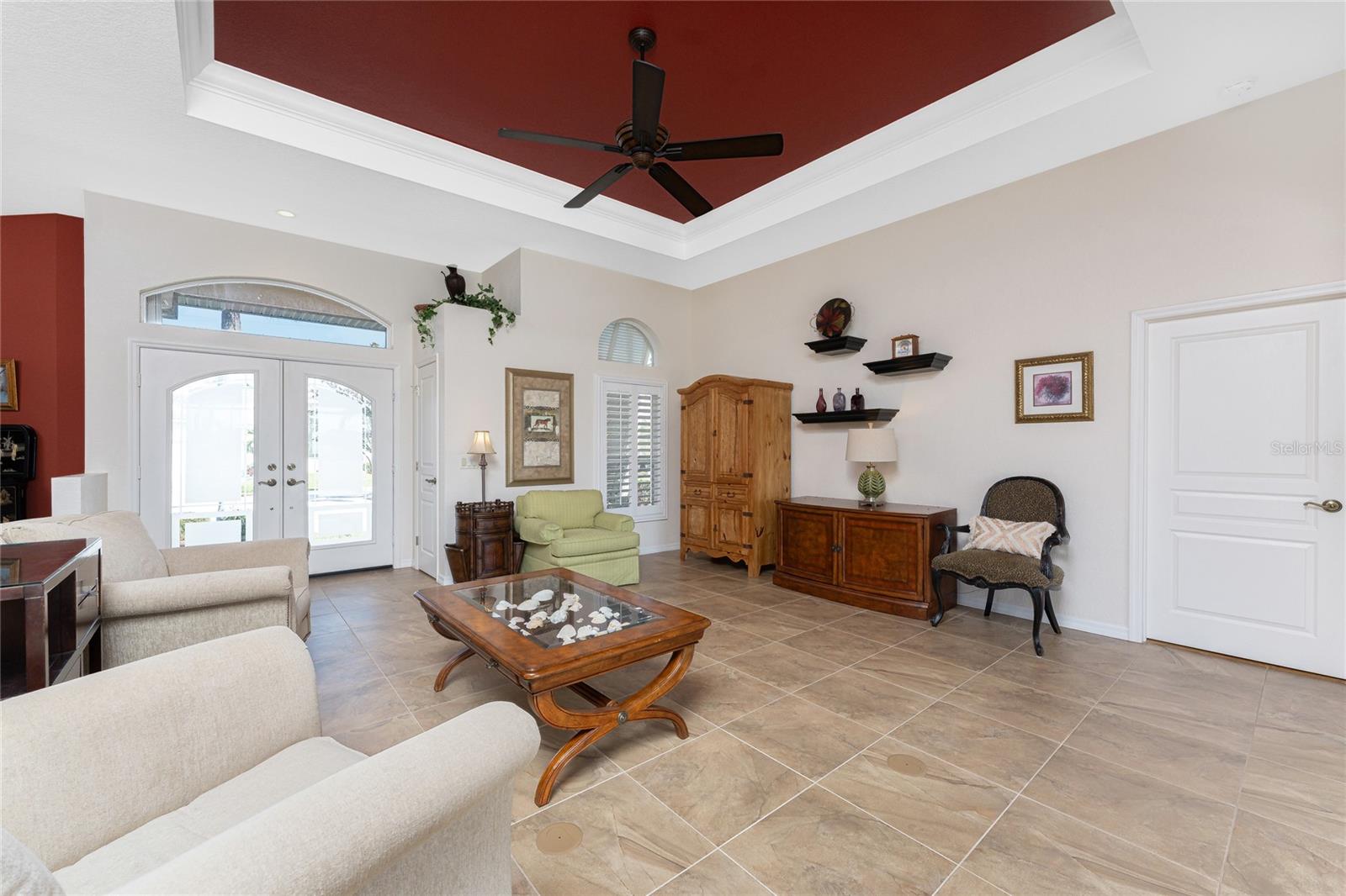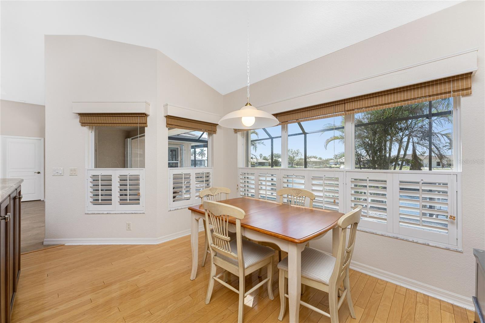 One or more photo(s) has been virtually staged. Elegant waterfront home in prestigious Punta Gorda Isles offers 95 FEET OF SALTWATER FRONT, City owned and maintained concrete seawall with dual docks and an electric boat lift, providing you quick SAILBOAT ACCESS (aka NO BRIDGES) to Charlotte Harbor. This custom-built 3-bedroom, 2-bath home, built by SandStar Custom Homes (now an Arthur Rutenberg Homes franchisee) sits on a QUIET CUL-DE-SAC surrounded by million-dollar properties. SOUTHERN EXPOSURE illuminates the SOLAR-HEATED POOL and an expansive lanai and pool area, all enhanced by premium brick pavers extending to the driveway and walkways. There's also FULL HURRICANE PROTECTION for the entire home. PER THE SELLER, THIS HOME HAS NEVER FLOODED. Interior features showcase meticulous attention to detail with TRAY CEILINGS, CROWN MOLDING, and designer touches including Bermuda exterior shutters and classic plantation shutters throughout. The upgraded kitchen boasts FINE WOOD CABINETRY and FABULOUS GRANITE COUNTERS. Recent improvements include a 2-year-old HVAC system and a 1-year-old water heater. This home also has an efficient Manabloc manifold plumbing system. This charming home should be on your short list. Call for an appointment to see this beautiful home today!