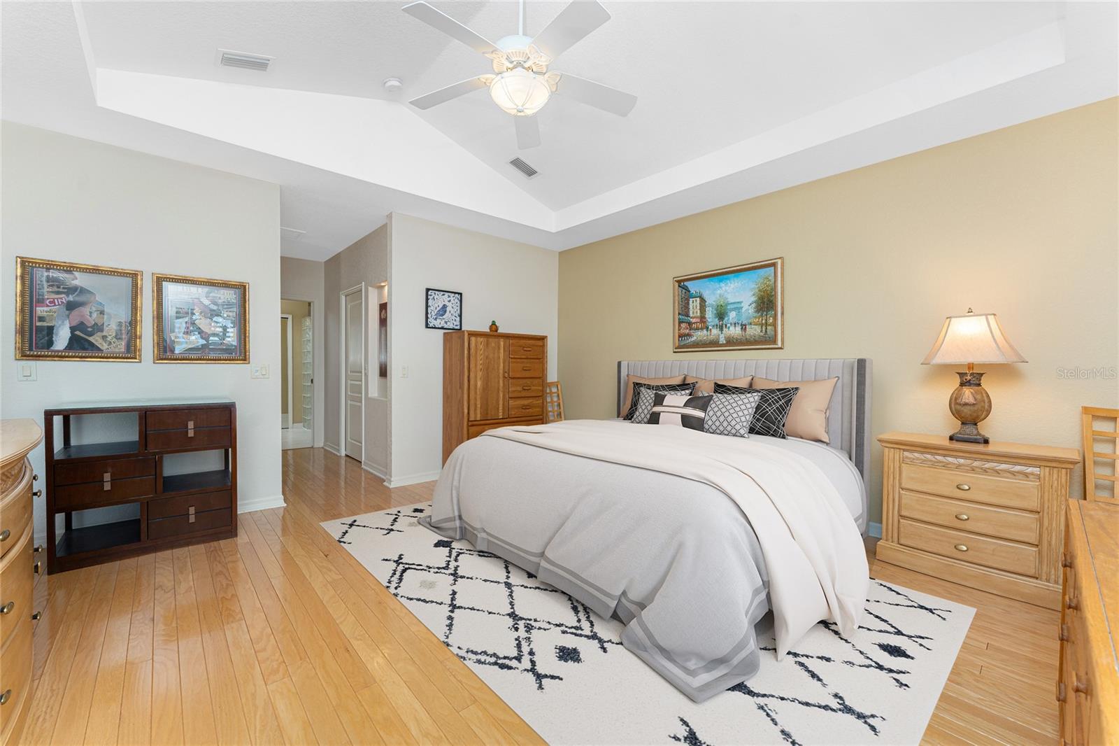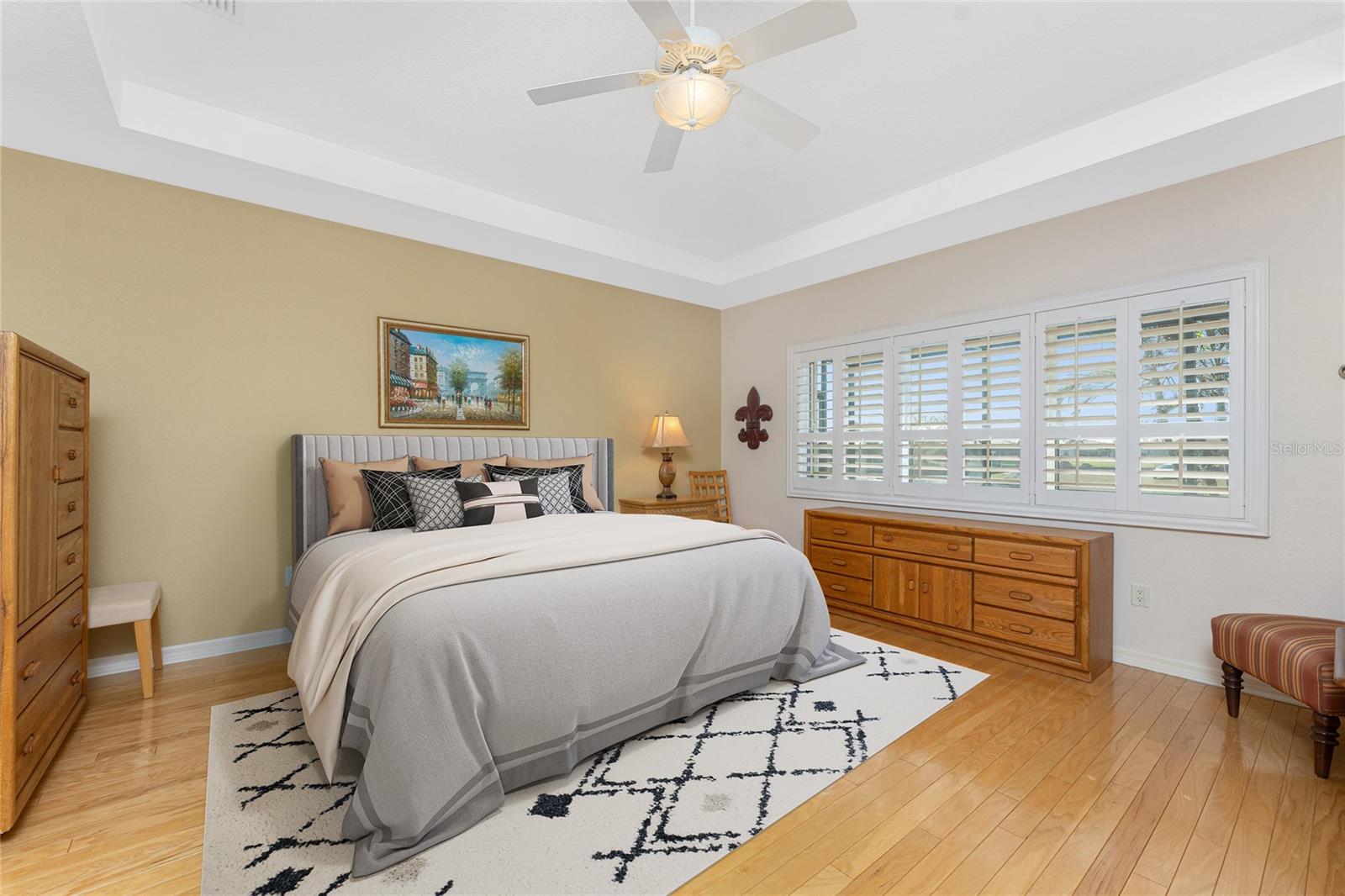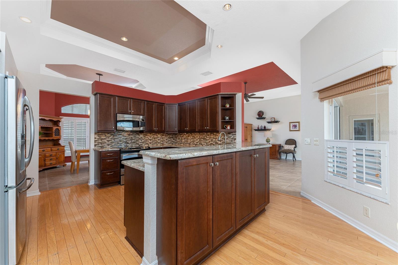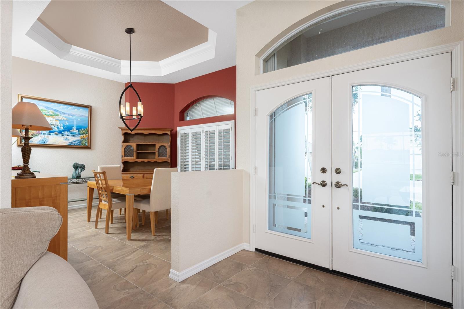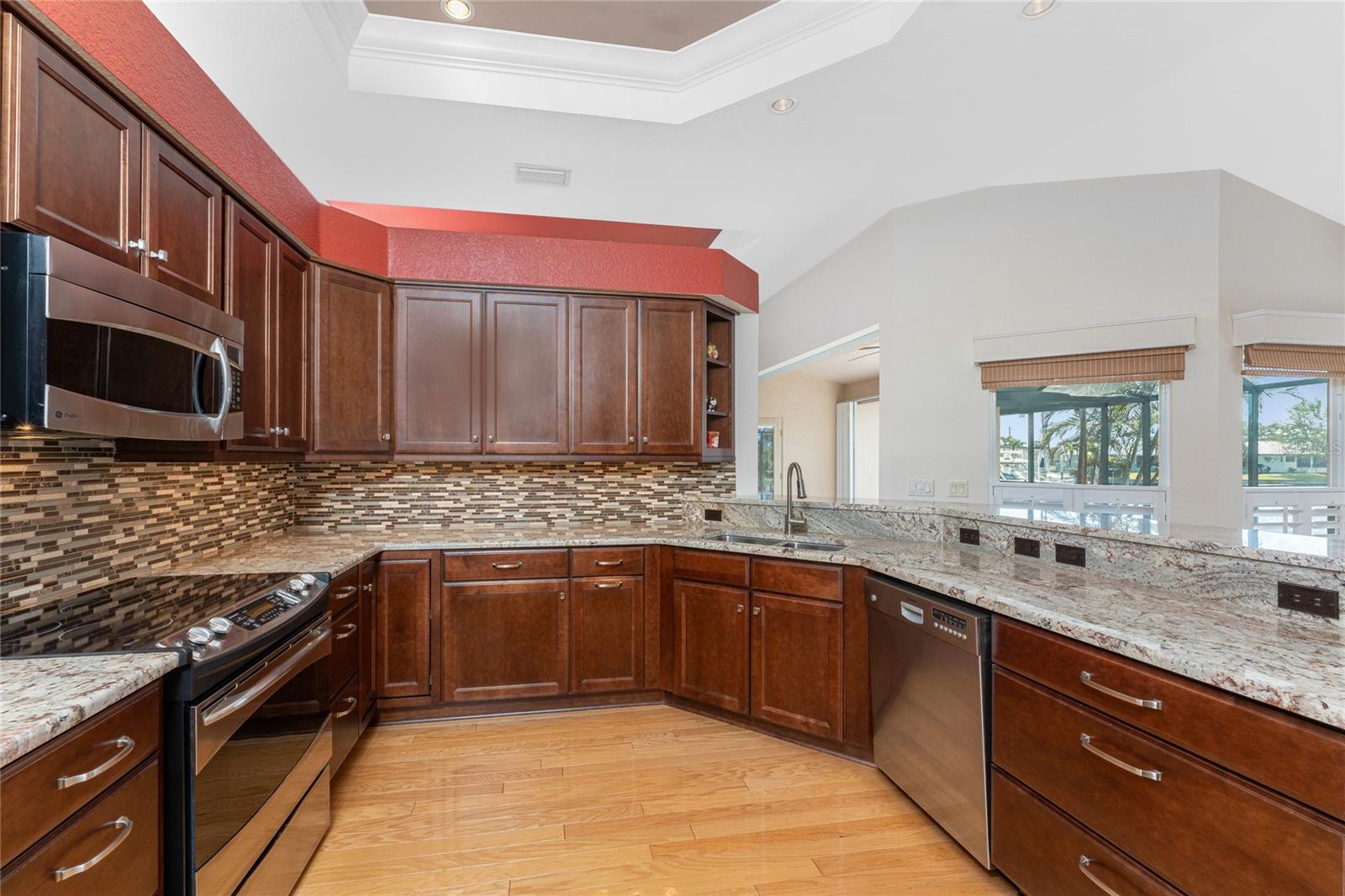 One or more photo(s) has been virtually staged. Elegant waterfront home in prestigious Punta Gorda Isles offers 95 FEET OF SALTWATER FRONT, City owned and maintained concrete seawall with dual docks and an electric boat lift, providing you quick SAILBOAT ACCESS (aka NO BRIDGES) to Charlotte Harbor. This custom-built 3-bedroom, 2-bath home, built by SandStar Custom Homes (now an Arthur Rutenberg Homes franchisee) sits on a QUIET CUL-DE-SAC surrounded by million-dollar properties. SOUTHERN EXPOSURE illuminates the SOLAR-HEATED POOL and an expansive lanai and pool area, all enhanced by premium brick pavers extending to the driveway and walkways. There's also FULL HURRICANE PROTECTION for the entire home. PER THE SELLER, THIS HOME HAS NEVER FLOODED. Interior features showcase meticulous attention to detail with TRAY CEILINGS, CROWN MOLDING, and designer touches including Bermuda exterior shutters and classic plantation shutters throughout. The upgraded kitchen boasts FINE WOOD CABINETRY and FABULOUS GRANITE COUNTERS. Recent improvements include a 2-year-old HVAC system and a 1-year-old water heater. This home also has an efficient Manabloc manifold plumbing system. This charming home should be on your short list. Call for an appointment to see this beautiful home today!