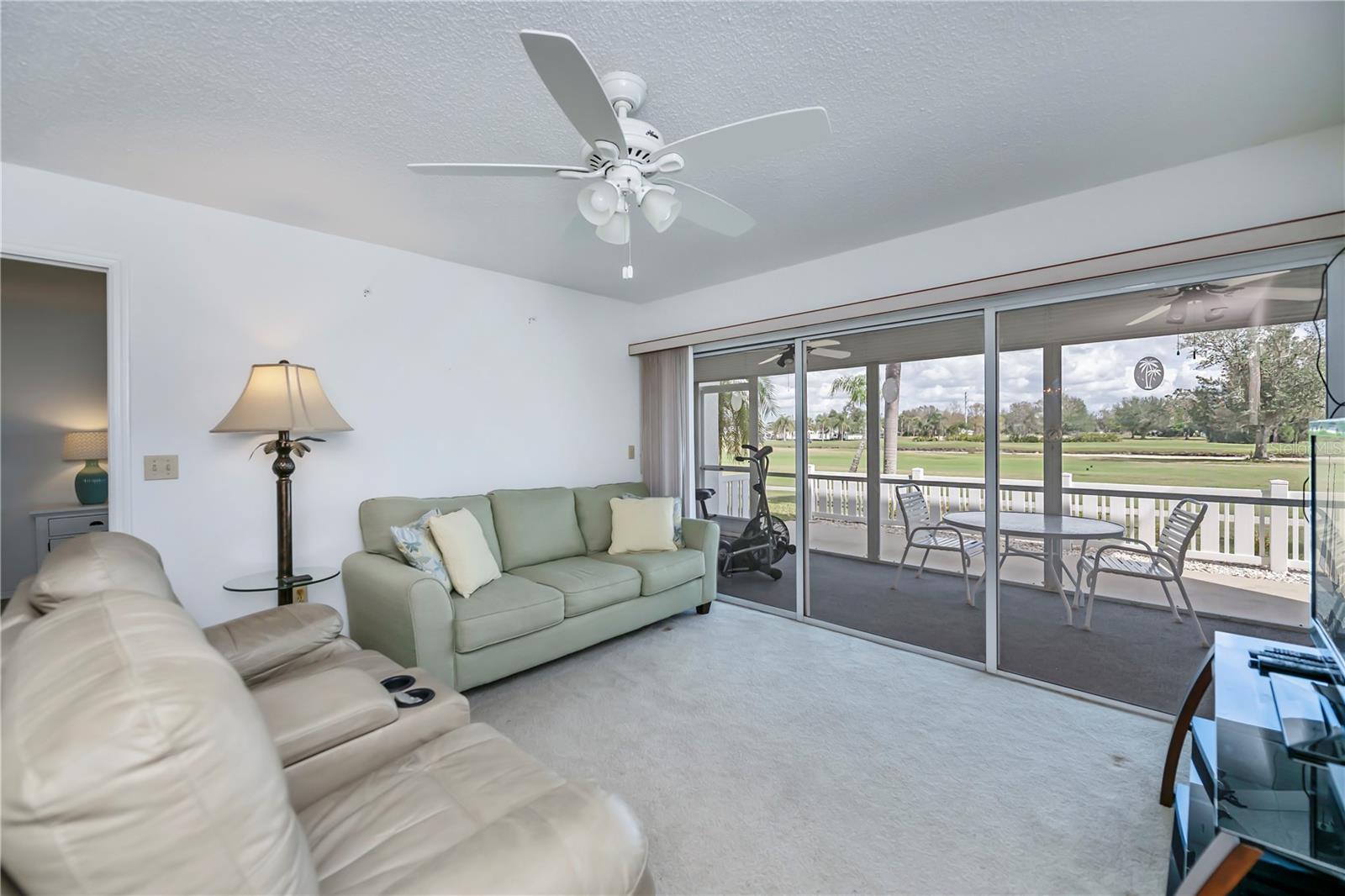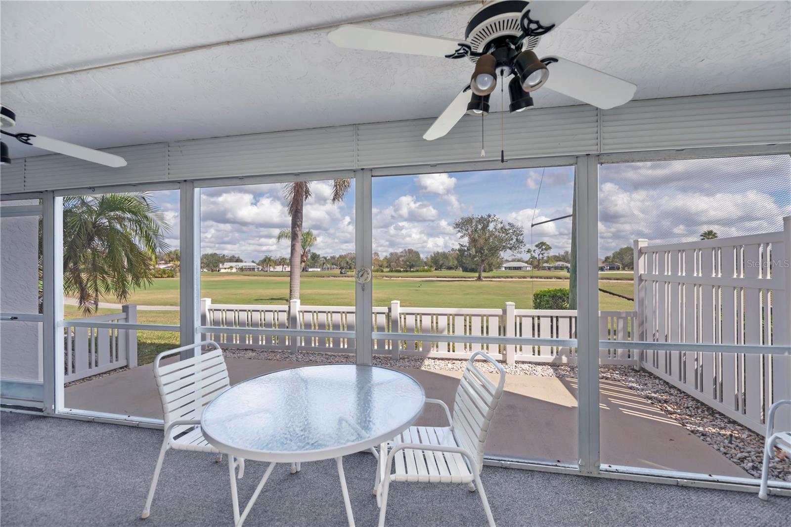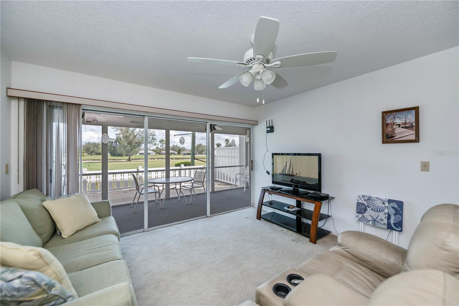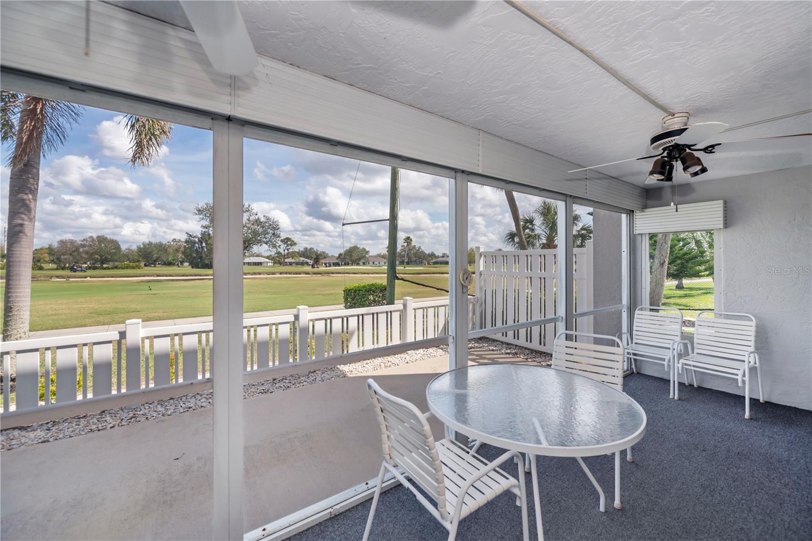 Stunning Panoramic Golf Views! This rarely available charming 1st-floor end unit features a recent price improvement! Enjoy single-level living in this lovely 3-bedroom, 2-bathroom condo, fully turnkey furnished, with no stairs to navigate. This unit feels like a true home and includes a full 1-car garage.Welcome to Fairway Pines in the deed-restricted Deep Creek community, overlooking the 9th hole! Benefit from a low HOA covering water and sewer. This delightful unit boasts both front and back patios, along with an atrium off the third bedroom. Step into a welcoming, private walkway leading to a screened lanai just steps from your garage—perfect for enjoying the cross breezes and keeping the front door open!Ideal for entertaining, the spacious kitchen features stainless steel appliances, ample cabinetry with pullouts, a pantry, a long breakfast bar with extra storage, and a charming eat-in dinette. The dining area, complete with a mirrored and shelved built-in bar, connects to the living room, offering breathtaking views of the 18-hole semi-private golf course and frequent sightings of sandhill cranes, osprey, and egrets through expansive triple glass sliding doors that open to a large back lanai.The generous master bedroom is filled with light and features private patio access, a walk-in closet, a mounted TV, and a lovely ensuite bathroom with updated fixtures and additional closet space. The second guest suite offers stunning greenway views and also has patio access, sharing a Jack and Jill bathroom with the third bedroom.Guests will adore the large third bedroom, enhanced with a triple glass slider leading to a unique dome-topped screened atrium patio—perfect for morning coffee or starlit cocktails! Additionally, a full laundry room off the lanai provides ample storage while keeping noise away from your living space.Golf enthusiasts will love the incredible views and breezes from the expansive 24x8 lanai. Plus, you’re just steps away from the community pool and your privately shelved garage—ideal for pool floats and bikes. Explore nearby parks, dining options, and tiki bars just down the street!Located in one of the most sought-after areas of Deep Creek, this exceptional 3-bedroom, 2-bath condo offers quick access to world-class golfing, dining, shopping, Punta Gorda airport, Sunseeker Resort, Tampa Bay training facility, and the award-winning Gulf beaches—all within easy reach.Experience luxury, convenience, and relaxation in this unforgettable 1st-floor end unit condo. Don’t miss out on this move-in-ready gem—schedule your showing today to discover all the incredible features this property has to offer!