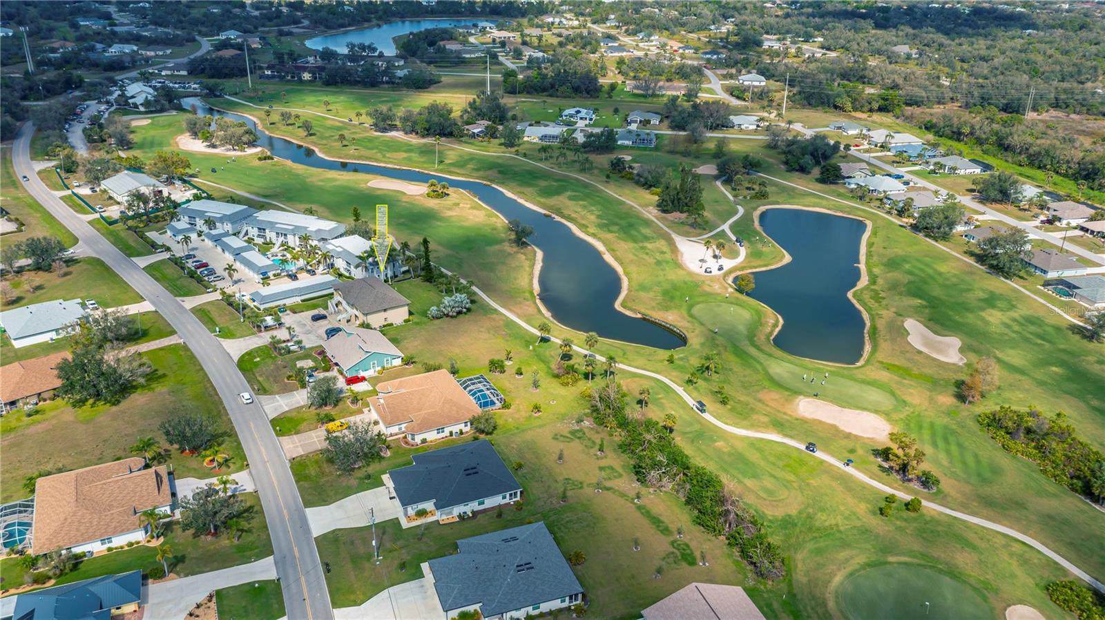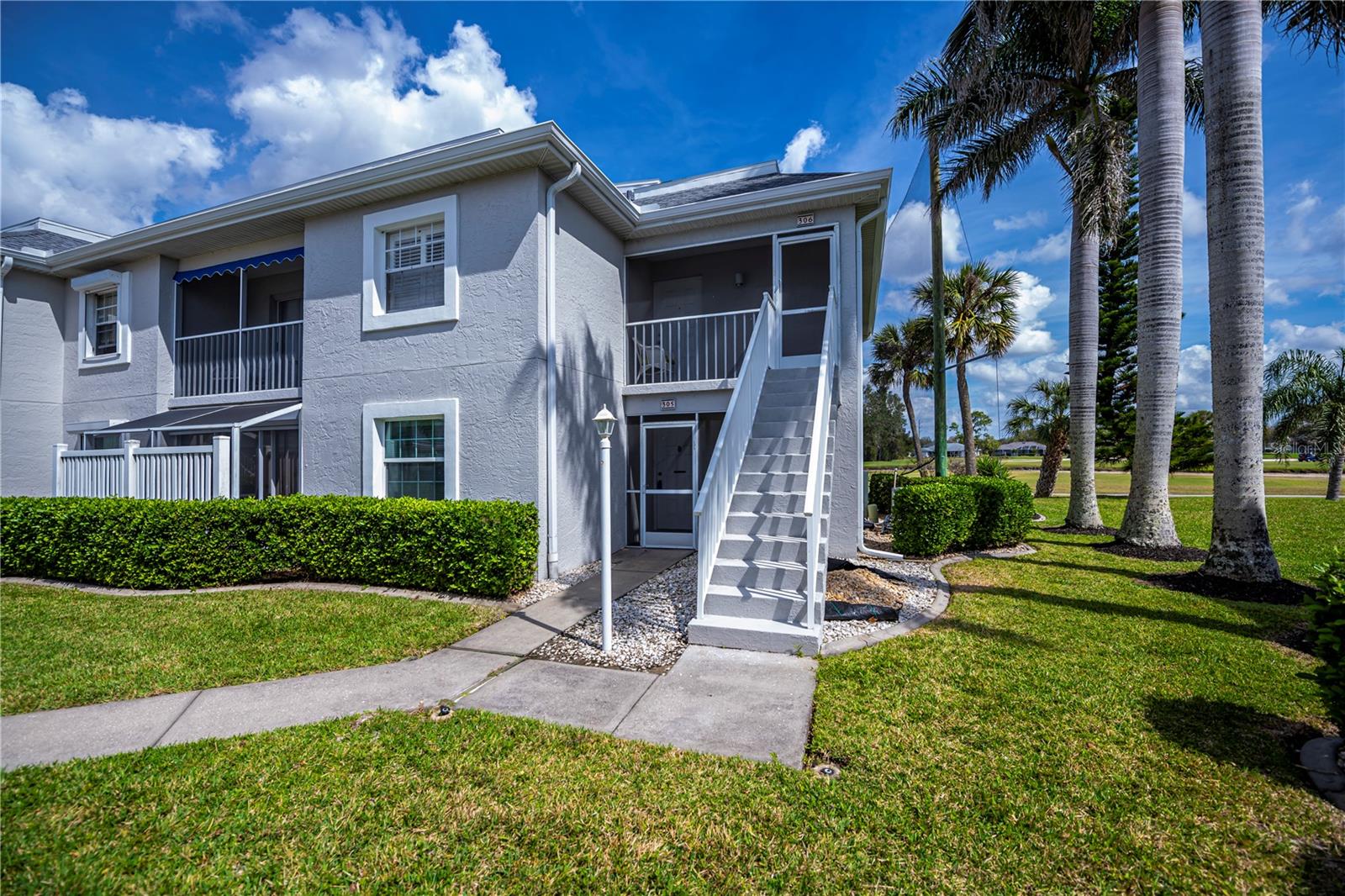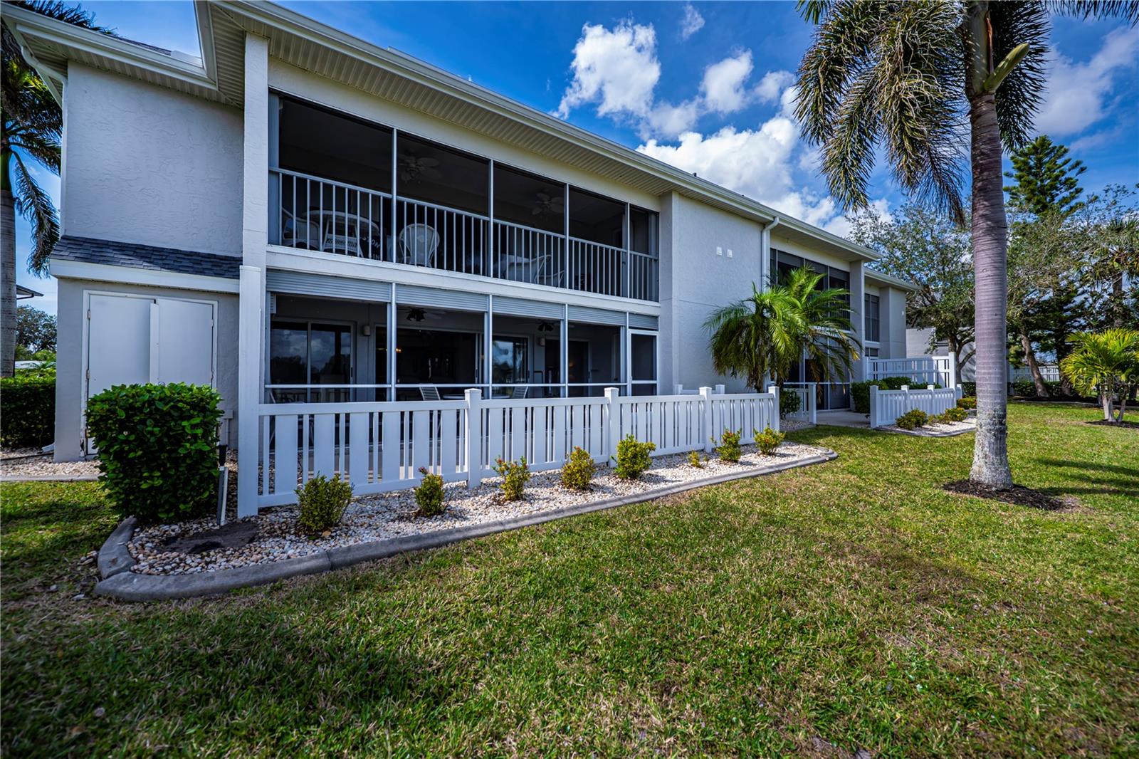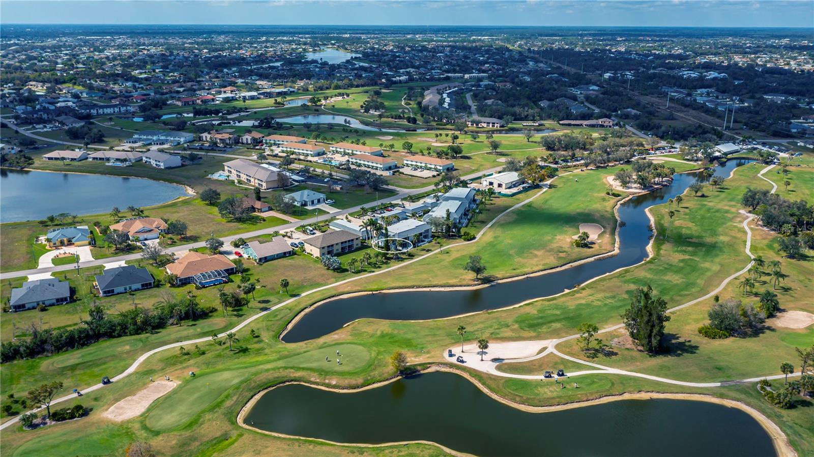 Stunning Panoramic Golf Views! This rarely available charming 1st-floor end unit features a recent price improvement! Enjoy single-level living in this lovely 3-bedroom, 2-bathroom condo, fully turnkey furnished, with no stairs to navigate. This unit feels like a true home and includes a full 1-car garage.Welcome to Fairway Pines in the deed-restricted Deep Creek community, overlooking the 9th hole! Benefit from a low HOA covering water and sewer. This delightful unit boasts both front and back patios, along with an atrium off the third bedroom. Step into a welcoming, private walkway leading to a screened lanai just steps from your garage—perfect for enjoying the cross breezes and keeping the front door open!Ideal for entertaining, the spacious kitchen features stainless steel appliances, ample cabinetry with pullouts, a pantry, a long breakfast bar with extra storage, and a charming eat-in dinette. The dining area, complete with a mirrored and shelved built-in bar, connects to the living room, offering breathtaking views of the 18-hole semi-private golf course and frequent sightings of sandhill cranes, osprey, and egrets through expansive triple glass sliding doors that open to a large back lanai.The generous master bedroom is filled with light and features private patio access, a walk-in closet, a mounted TV, and a lovely ensuite bathroom with updated fixtures and additional closet space. The second guest suite offers stunning greenway views and also has patio access, sharing a Jack and Jill bathroom with the third bedroom.Guests will adore the large third bedroom, enhanced with a triple glass slider leading to a unique dome-topped screened atrium patio—perfect for morning coffee or starlit cocktails! Additionally, a full laundry room off the lanai provides ample storage while keeping noise away from your living space.Golf enthusiasts will love the incredible views and breezes from the expansive 24x8 lanai. Plus, you’re just steps away from the community pool and your privately shelved garage—ideal for pool floats and bikes. Explore nearby parks, dining options, and tiki bars just down the street!Located in one of the most sought-after areas of Deep Creek, this exceptional 3-bedroom, 2-bath condo offers quick access to world-class golfing, dining, shopping, Punta Gorda airport, Sunseeker Resort, Tampa Bay training facility, and the award-winning Gulf beaches—all within easy reach.Experience luxury, convenience, and relaxation in this unforgettable 1st-floor end unit condo. Don’t miss out on this move-in-ready gem—schedule your showing today to discover all the incredible features this property has to offer!