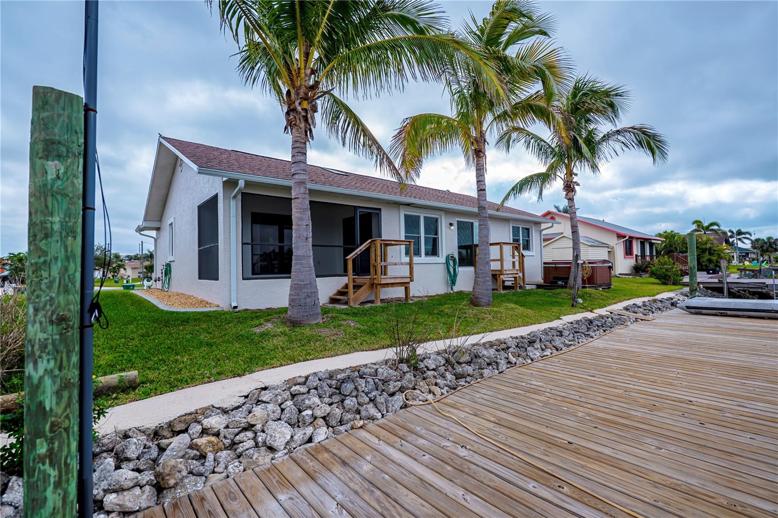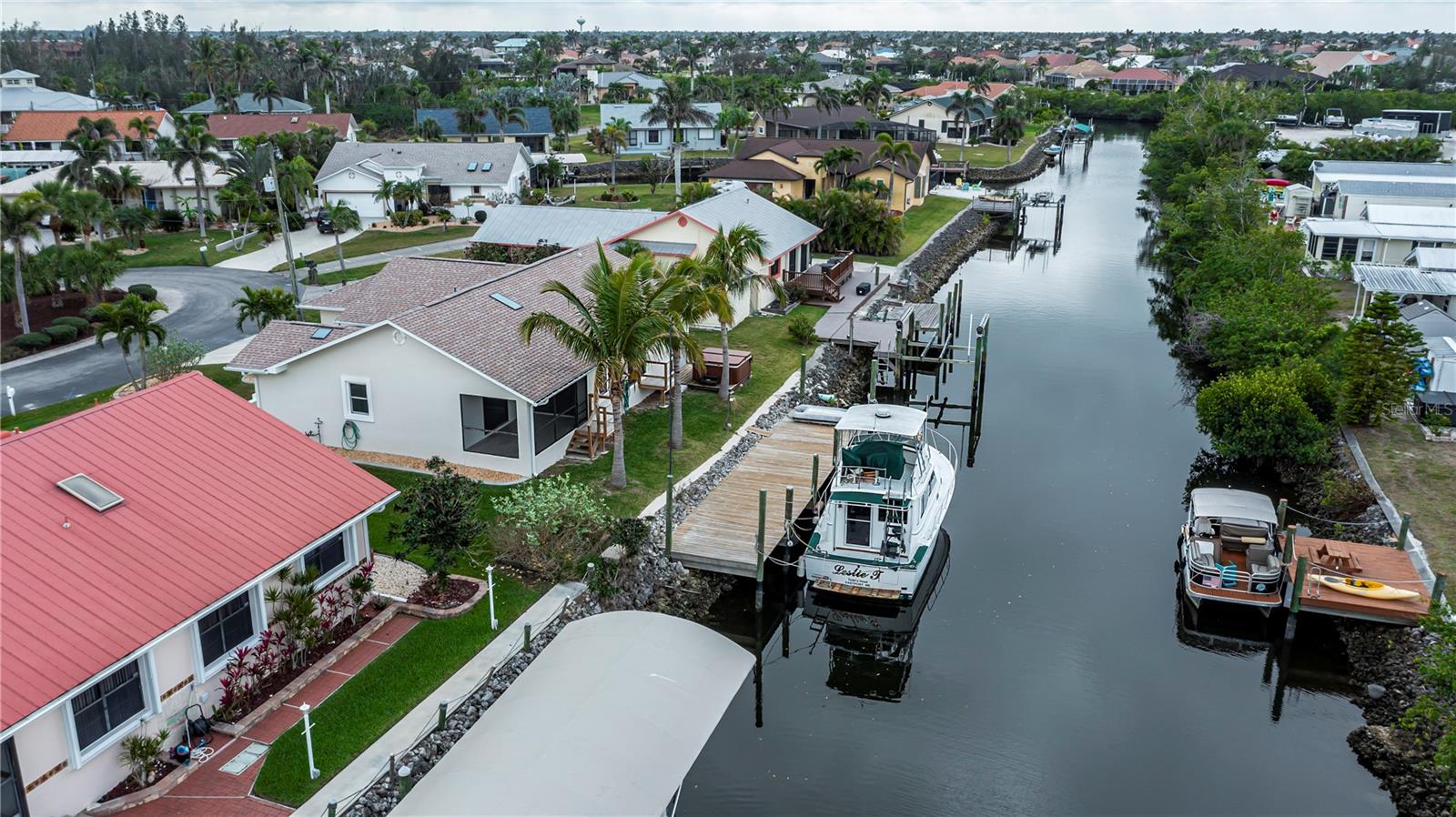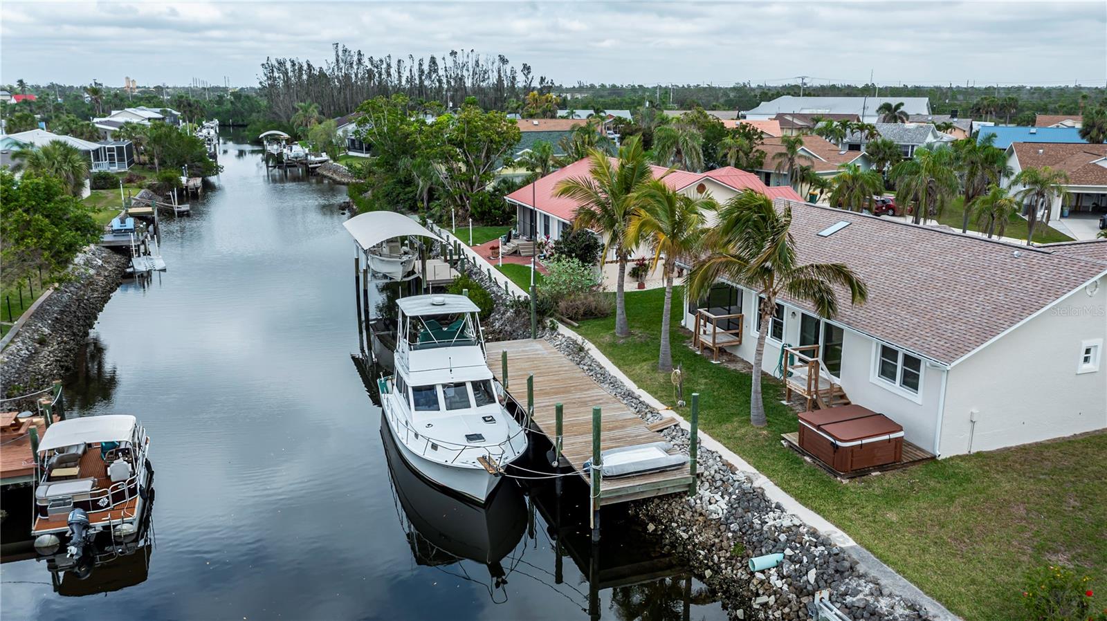 Never Flooded! Enjoy direct sailboat access to Charlotte Harbor with no bridges, making this a boater’s dream! Located on a cul-de-sac, this Gulf-access gem offers deep water access via Alligator Creek to Charlotte Harbor. The home features a split floor plan with a bright and open design, enhanced by a skylight in the main living area. Elegant Turkish travertine floors add sophistication throughout, while the updated kitchen boasts stainless steel appliances, solid surface quartz crystal countertops, and modern cabinetry. The primary suite is a private retreat with a walk-in closet, dual sinks, and a spacious walk-in shower. Relax and take in the serene waterfront views from your screened lanai with a hot tub, or unwind in the beautifully professionally landscaped yard. Additional highlights include hurricane impact windows and patio doors, newer mechanicals, a newer roof, a new AC system, a freshly painted exterior, and a 2-car garage with attic storage. Residents of San Sebastian Harbor enjoy fantastic community amenities, including tennis courts, pickleball, and a community pool. With easy access to US-41 and I-75, this home is perfectly located for both convenience and coastal living. Don’t miss this incredible opportunity—schedule your private showing today!