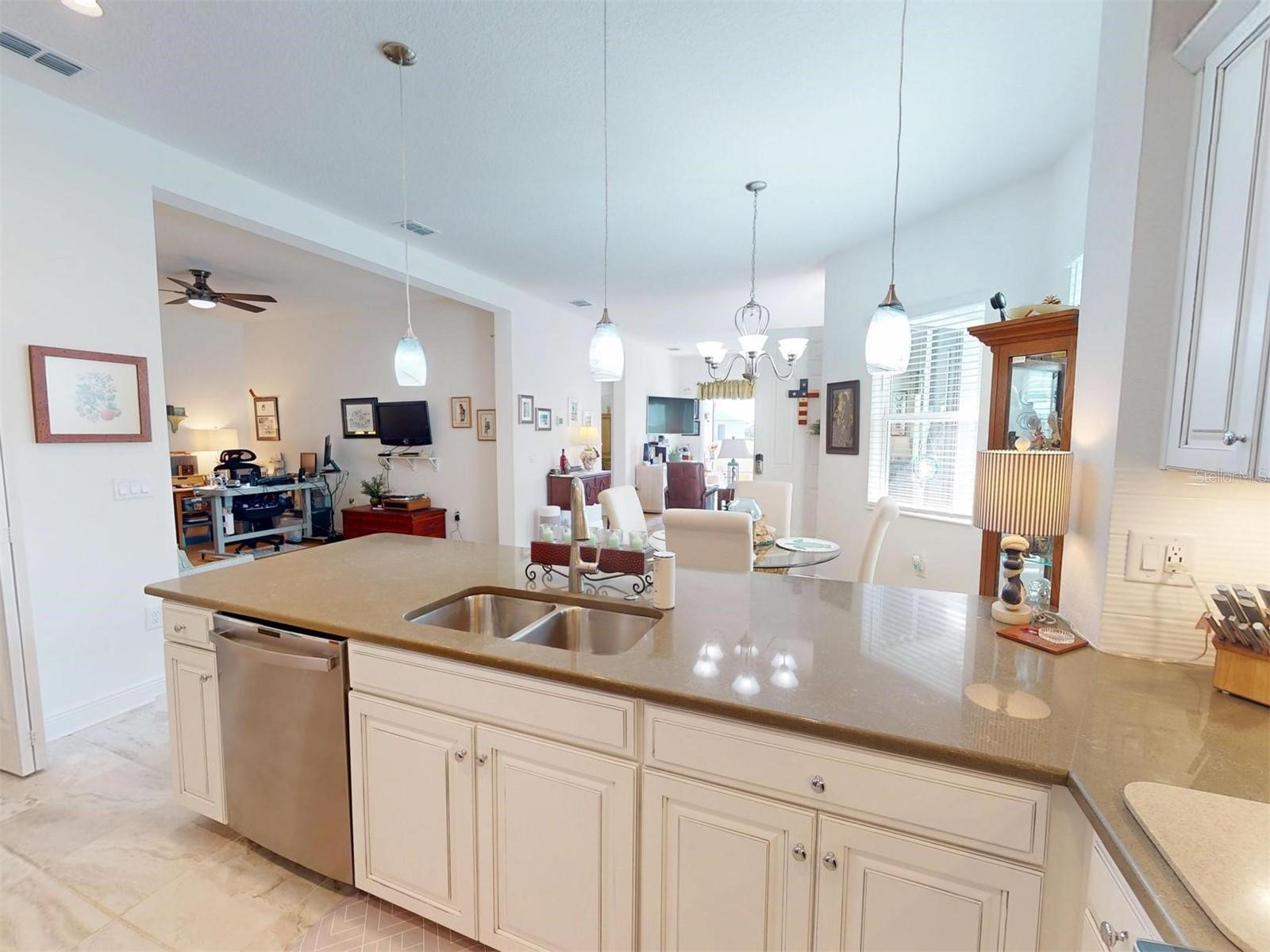 Exceptional upgrades on a premium lot, one of the nicest in Kings Gate. The sq. ft. priced right with all the amenities, plus ready to move in and much better than a new build. FLOOD ZONE X. 2 /3 bedrooms possible 2 Baths. Come see this beautiful home in Kings Gate which is a 55 + community. It is so spacious, and the backyard is on a very large pond with a fountain - the view is breathtaking! This home is two years new; it meets the latest hurricane building code requirements. Hurricane impact windows, and hurricane shutters for the lanai and front door. As you enter this home, you walk into a very open Great Room with 10-foot-tall ceilings and beautiful hardwood floors. The expansive sliding glass door opens up into a tiled lanai with gorgeous views of the pond. This is great when entertaining your family and friends that will come to visit you. Both, the lanai and patio are so peaceful with that million-dollar view whether during the day or at night is simply breathtaking. You can easily get used to enjoying your favorite beverage while relaxing on a chaise lounge on the patio. You could be watching the Pelicans dive into the pond for fish, watching the helmet turtles popping their heads up out of the water or sunbathing along the shoreline, or you could watch the golfers on the green, hoping for a hole in one. There is always something to see while gazing at the pond area. When you enter into the kitchen you will notice the beautiful quartz countertop and the walk-in pantry with plenty of shelving space to meet your needs. All the tile flooring throughout this home, the quartz countertop and kitchen cabinets were all upgrades at the time of build. The microwave is vented to the outdoors, and the kitchen appliances were upgraded as well. The range/oven is an induction with convection and air fry capabilities. If you are a person on the go or busy with all the activities going on in The Kingdom, you can start and stop your oven via Wi-Fi connection. All the rooms in this home are large and in the master bedroom it has a custom barn door that separates the bedroom from the master bath and closets area, Super Cool! Also, the view of the pond from the master bedroom windows is simply awesome to wake up to in the mornings and to gaze at when the full moon crosses over the pond at night. The light reflecting off pond is another reason to enjoy this great view. There are lots of nice upgrades done to this home, too many to mention here. There are many amenities that come with living in Kings Gate (better known as The Kingdom) - a large pool, large ball room, the Lion’s Den Restaurant and Bar is right inside this community. There is pickle ball, social events, like Bingo, Nine and Dines, Trivia night, Yoga and Monday, Wednesday, and Friday work out classes for anyone who wants to join. No charge. There is water aerobics too!! The list goes on and on. We are a golf cart community, so it is only natural to have golf cart decorating festivities, and those evening golf cart rides around the neighborhood is a great way to see your neighbors. If you love golf, this is the place to be living in, in Port Charlotte. Kings Gate Golf course - play 9 or 18 holes of golf on a beautiful golf course, plus enjoy all the nature. Kings Gate is amazing - you can drive your golf cart to Plaza, just right outside of gated area and select dining and or shopping located in the plaza. Please schedule to see this extraordinary home!