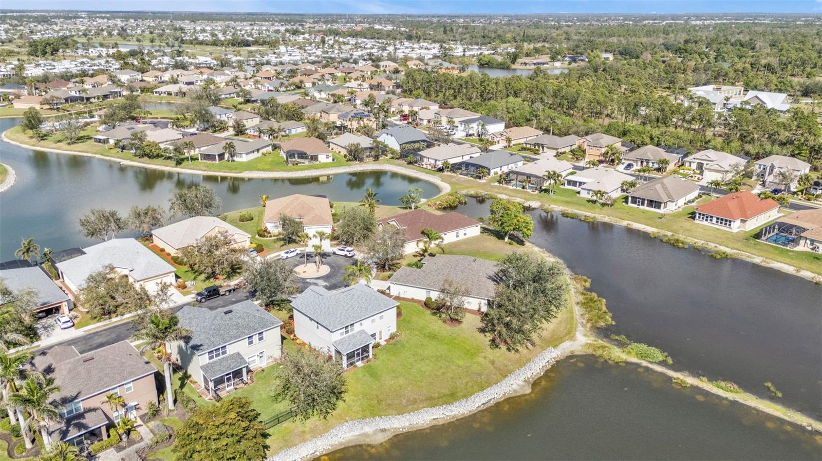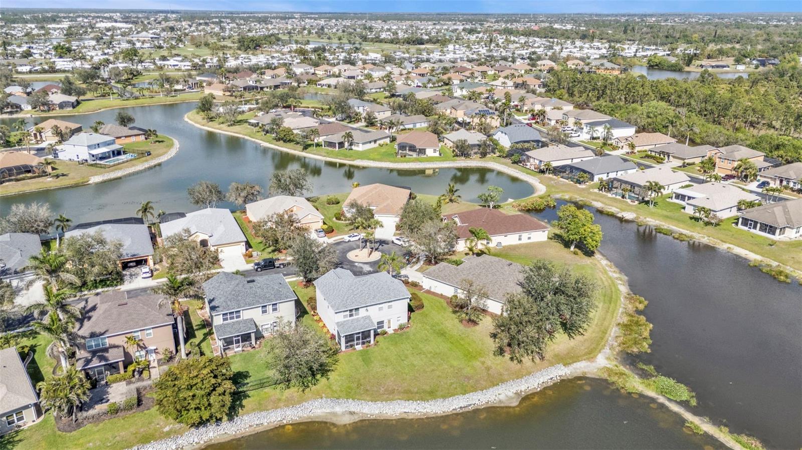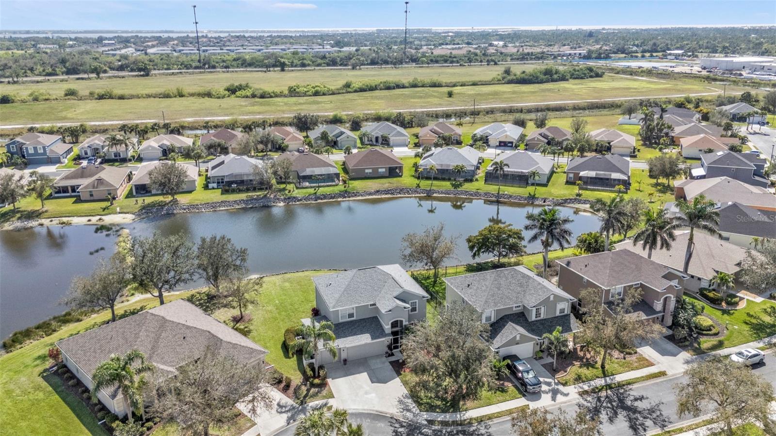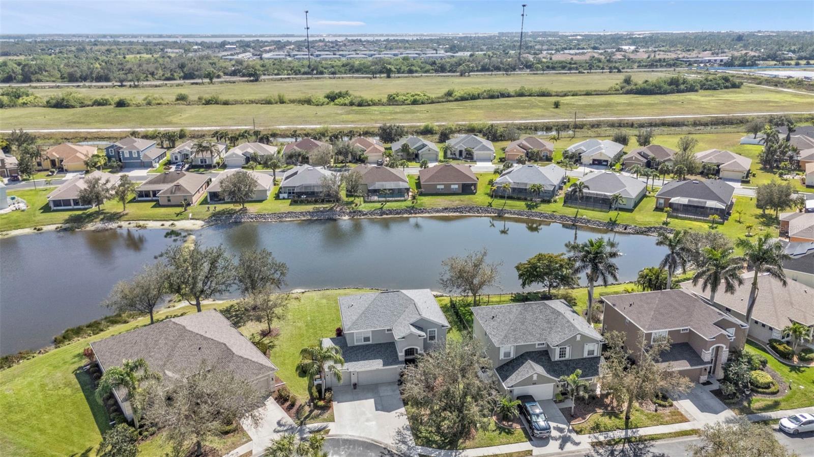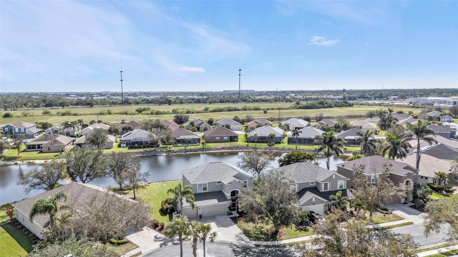 5 Bedroom Lakefront Home in Suncoast Lakes NO FLOOD Insurance Required! Located in the heart of a gated neighborhood, this lakefront home offers the perfect blend of comfort, style, and convenience. With five spacious bedrooms and an array of modern amenities, it is designed to meet all your needs. The front room can be used as a den/office or a dining room. Seamlessly designed open floor plan concept with kitchen, family room, breakfast nook and built in desk area in a comfortable space. The heart of this home is the kitchen, equipped with stainless steel appliances (2 years old), solid surface countertops, breakfast bar, ample cabinets and a closet pantry. Sliders open to a covered screened lanai, perfect to enjoy your coffee while taking in the peaceful lake. Located downstairs is a bedroom and bathroom, perfect home office or den. Each of the five bedrooms is generously sized, providing ample space for all your needs, the primary suite features a large walk-in closet and an en-suite bathroom, offering a luxurious retreat within your home. Upstairs laundry conveniently located with extra storage, two AC units, Roof 2 years old and with a 3 car garage, you will have all the space for your storage needs. The community offers a variety of amenities and security, including a community swimming pool, sidewalks, park and playground. Located in the heart of Port Charlotte, close to hospitals, shopping and I-75. Come live your best life in SW FL and take advantage of all the sunshine state has to offer with World Famous Fishing, Nature parks, Award-winning Golf Courses, and stunning beaches on the Gulf of Mexico! Conveniently located near I-75, a quick 30-minute drive to Sarasota or Fort Myers, Charlotte County is home to the beautiful historic downtown Punta Gorda, Allegiant Sunseeker Resort and the Atlanta Braves and Tampa Bay Rays Spring Training Sports Parks! Don’t miss your opportunity to make this wonderful town YOUR hometown! **See Tour 1 for Virtual 3D Walk Through**