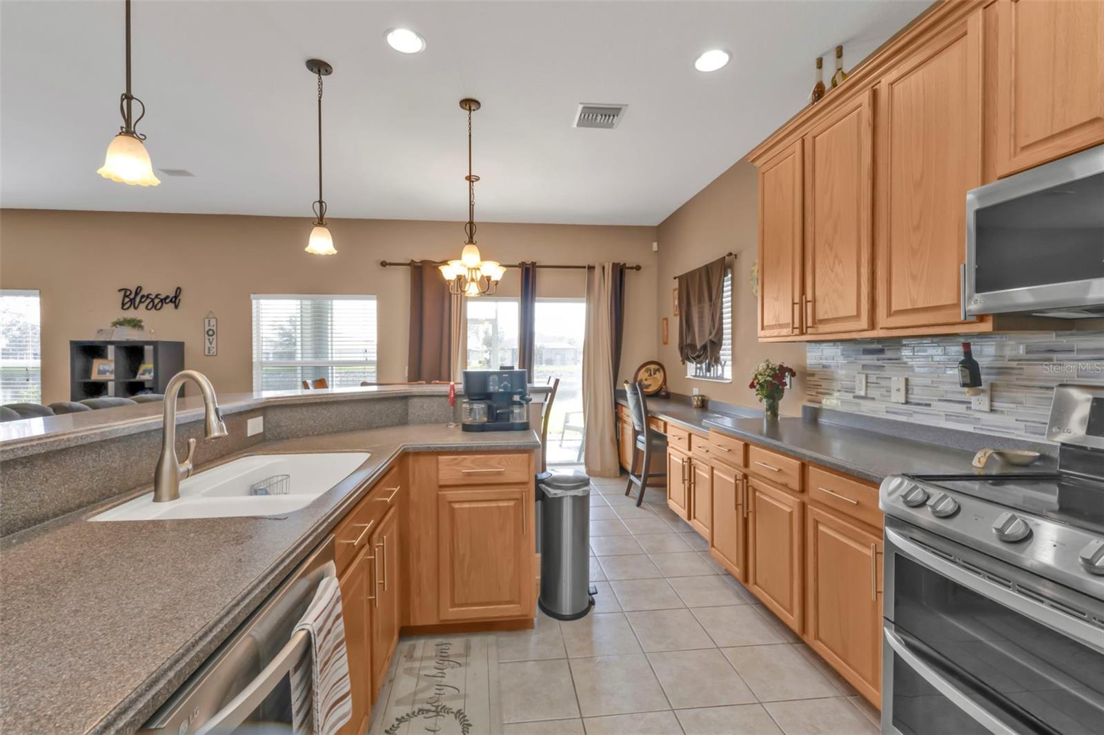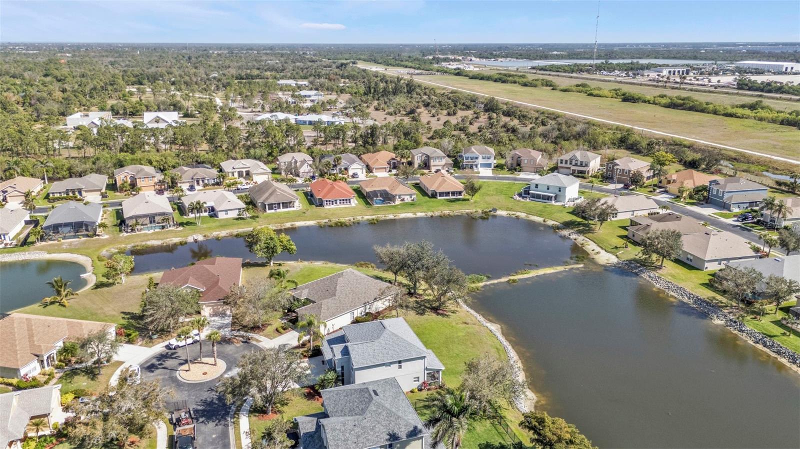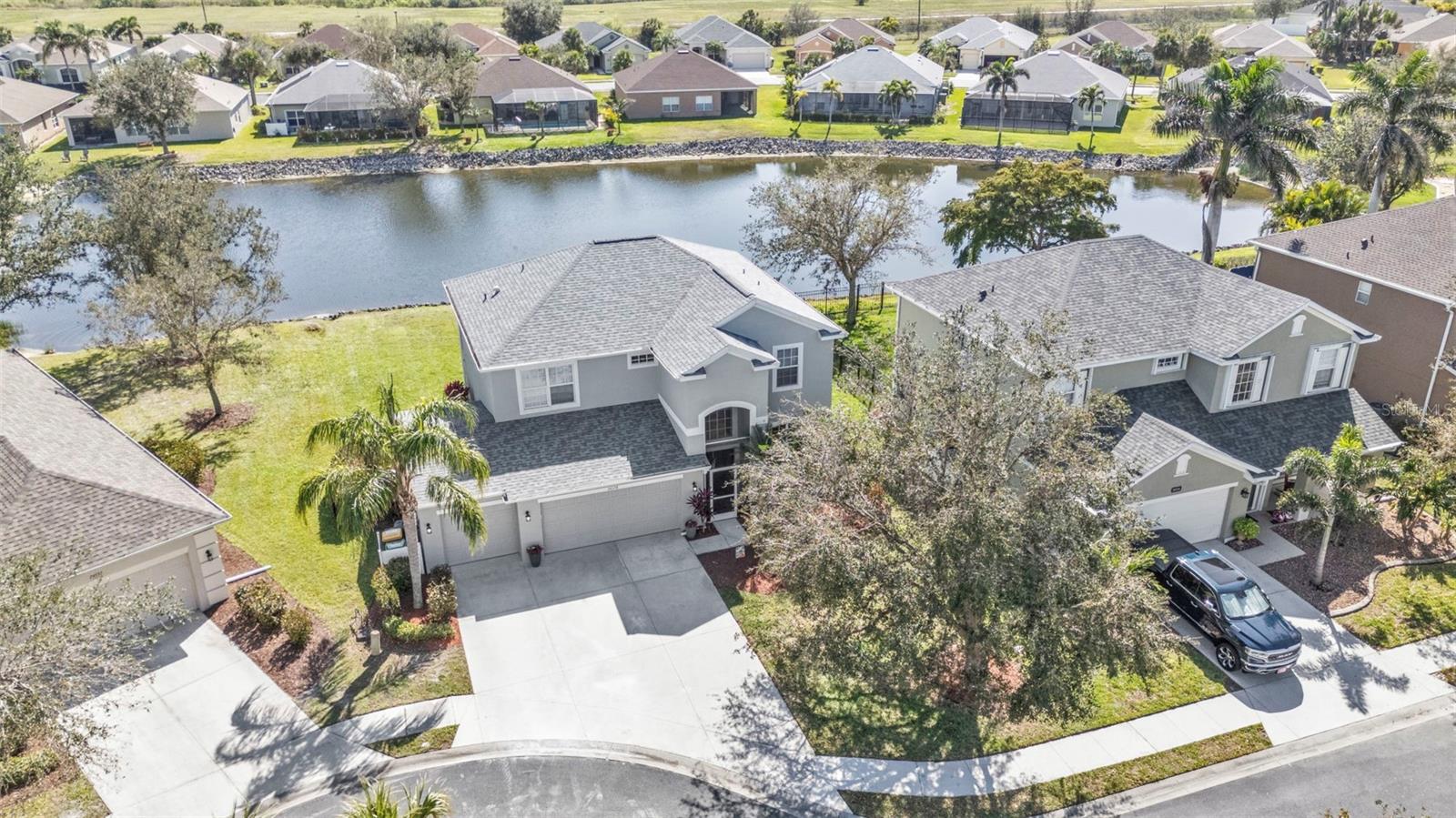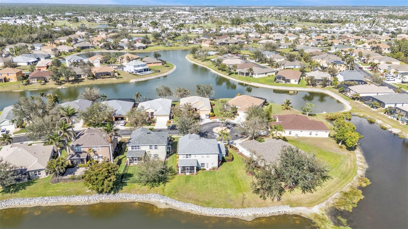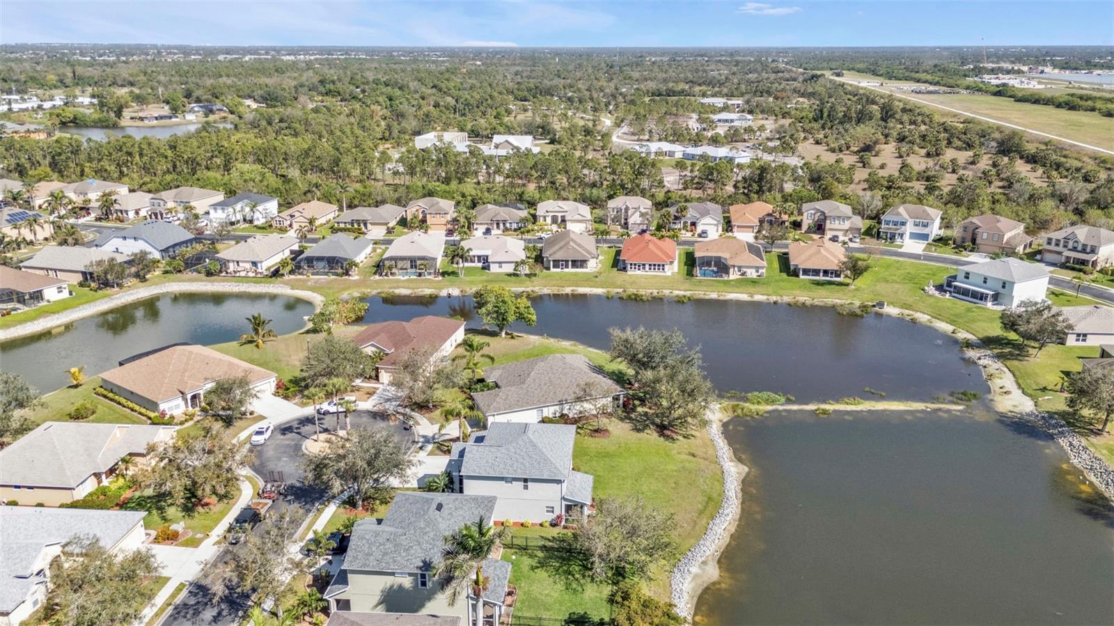 5 Bedroom Lakefront Home in Suncoast Lakes NO FLOOD Insurance Required! Located in the heart of a gated neighborhood, this lakefront home offers the perfect blend of comfort, style, and convenience. With five spacious bedrooms and an array of modern amenities, it is designed to meet all your needs. The front room can be used as a den/office or a dining room. Seamlessly designed open floor plan concept with kitchen, family room, breakfast nook and built in desk area in a comfortable space. The heart of this home is the kitchen, equipped with stainless steel appliances (2 years old), solid surface countertops, breakfast bar, ample cabinets and a closet pantry. Sliders open to a covered screened lanai, perfect to enjoy your coffee while taking in the peaceful lake. Located downstairs is a bedroom and bathroom, perfect home office or den. Each of the five bedrooms is generously sized, providing ample space for all your needs, the primary suite features a large walk-in closet and an en-suite bathroom, offering a luxurious retreat within your home. Upstairs laundry conveniently located with extra storage, two AC units, Roof 2 years old and with a 3 car garage, you will have all the space for your storage needs. The community offers a variety of amenities and security, including a community swimming pool, sidewalks, park and playground. Located in the heart of Port Charlotte, close to hospitals, shopping and I-75. Come live your best life in SW FL and take advantage of all the sunshine state has to offer with World Famous Fishing, Nature parks, Award-winning Golf Courses, and stunning beaches on the Gulf of Mexico! Conveniently located near I-75, a quick 30-minute drive to Sarasota or Fort Myers, Charlotte County is home to the beautiful historic downtown Punta Gorda, Allegiant Sunseeker Resort and the Atlanta Braves and Tampa Bay Rays Spring Training Sports Parks! Don’t miss your opportunity to make this wonderful town YOUR hometown! **See Tour 1 for Virtual 3D Walk Through**