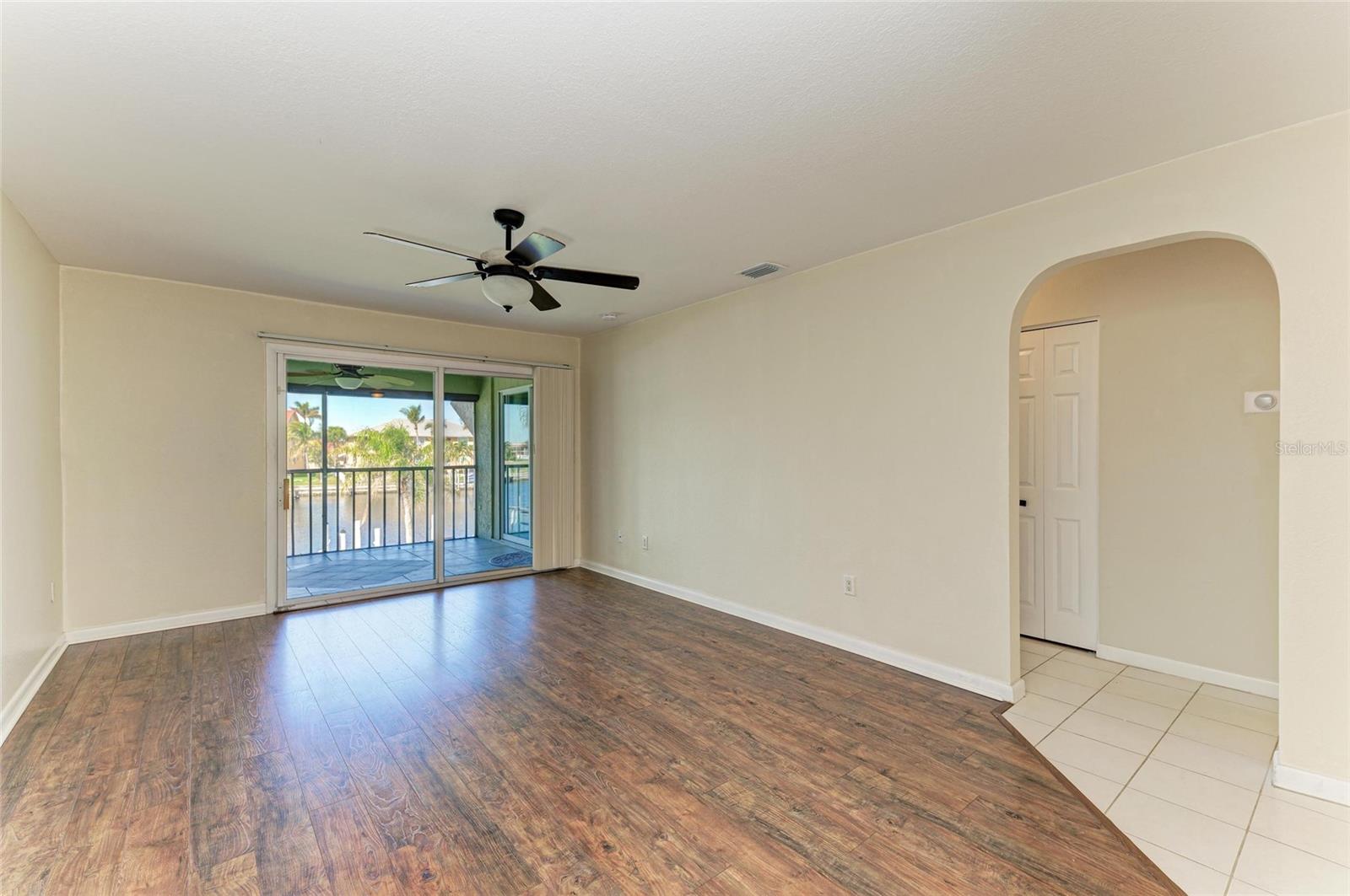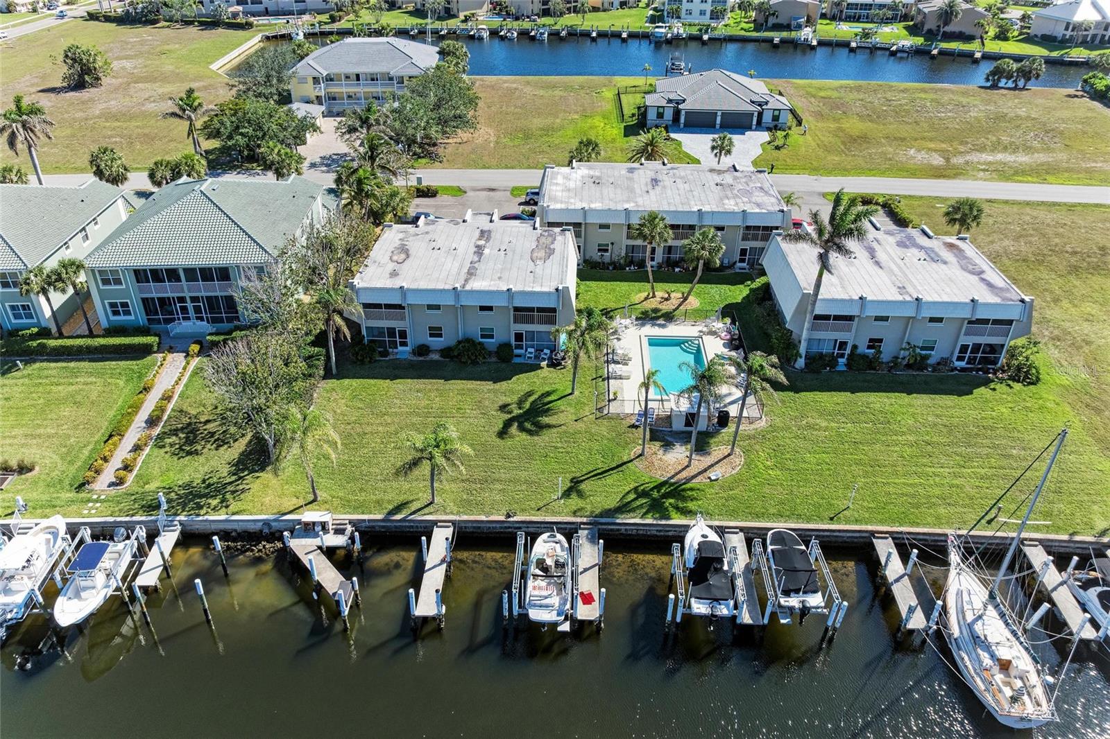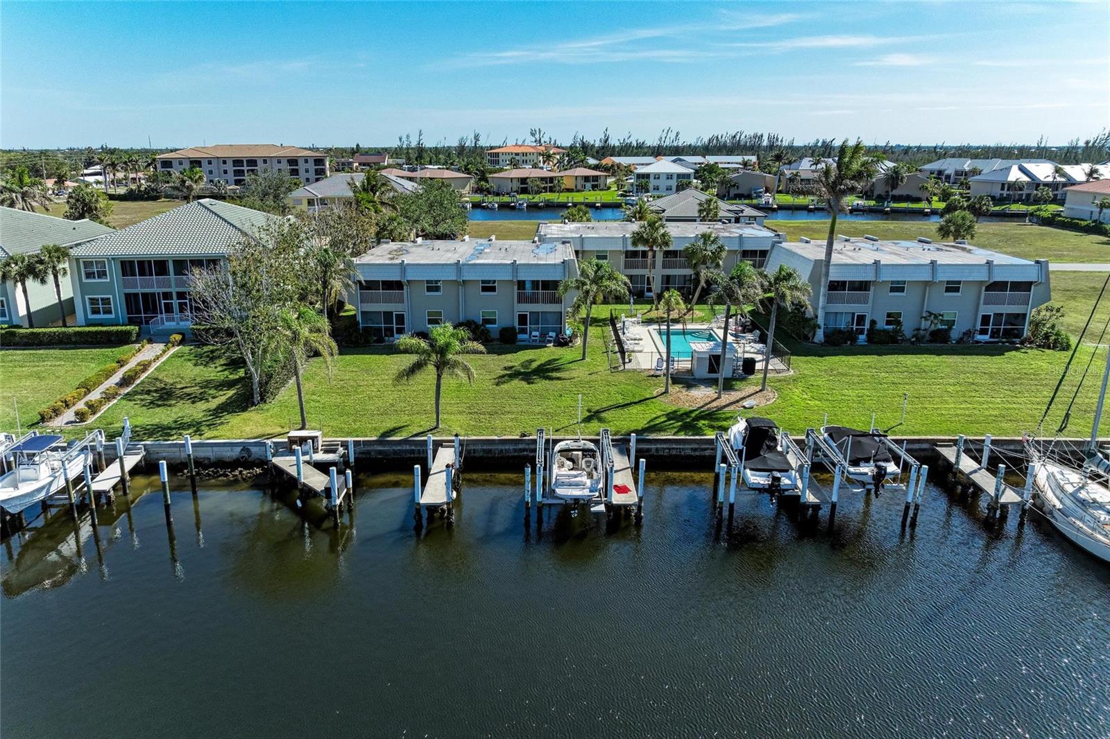 NEW PRICE! NO RISING WATER INTRUSION FROM ANY STORMS AT THIS COMMUNITY FOR ANY OF THE CONDOS. *High and dry 2nd floor location* Owner is MOTIVATED to sell this beautiful, AFFORDABLE condo in popular location! EXTRA WIDE SALTWATER CANAL frontage with *ASSIGNED BOAT DOCK* IN YOUR BACKYARD 60 FEET from your condo with NO BRIDGES and SAILBOAT FRIENDLY WATERS! This top floor, END UNIT boasts a private screened lanai overlooking the serene waterfront perfect for enjoying evening SUNSETS with a rear Western exposure! NEW IMPACT GLASS WINDOWS for your peace of mind! Walk right up to this 2 bedroom, 2 bath TOP FLOOR condo that offers open concept living. Benefit from the warm wood look flooring in the main living space and bedrooms that is easy to clean and maintain! There is all hard flooring throughout this property (no carpet). The kitchen offers neutral cabinetry, tile flooring and matching appliances! The primary bedroom has sliding glass doors to the lanai and an en-suite bathroom + HUGE WALK IN CLOSET. Your guest bedroom has a ceiling fan and wall closet for added storage space! The guest bathroom has a vanity, solid surface countertops and a combination tub/shower. BRAND NEW STACKABLE WASHER/DRYER in laundry closet. There is also a BRAND NEW HOT WATER HEATER, new smoke detectors and your A/C system was just serviced and cleaned! Additionally there is a KINETICO WHOLE HOME WATER SYSTEM that conveys with the purchase of the condo. Relax on the screened lanai with sunshades and watch the boats go by or go for a swim in the COMMUNITY POOL! You are allowed to put in a BOAT LIFT if you desire. Laporta Boca is a smaller waterfront community nestled in Punta Gorda Isles WITH AFFORDABLE HOA fees that includes exterior building maintenance, lawn mowing/landscaping, pool maintenance, water and sewer and more! Punta Gorda features miles of bike paths along the Charlotte Harbor, unique shops & dining, weekend Farmer's markets and many outdoor festivals! This Southwest Florida location is ideal for year-round enjoyment of boating, fishing, golfing, Several Gulf beaches (reachable in under 1 hour), fine and casual dining, parks, public tennis courts and shopping. Allegiant Airport is located 5 miles away with tons of flights to many destinations in the US! Fisherman's Village and Historic Downtown Punta Gorda are just over 2 miles away! Call today for a private showing!