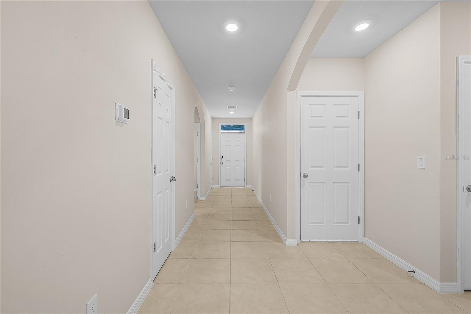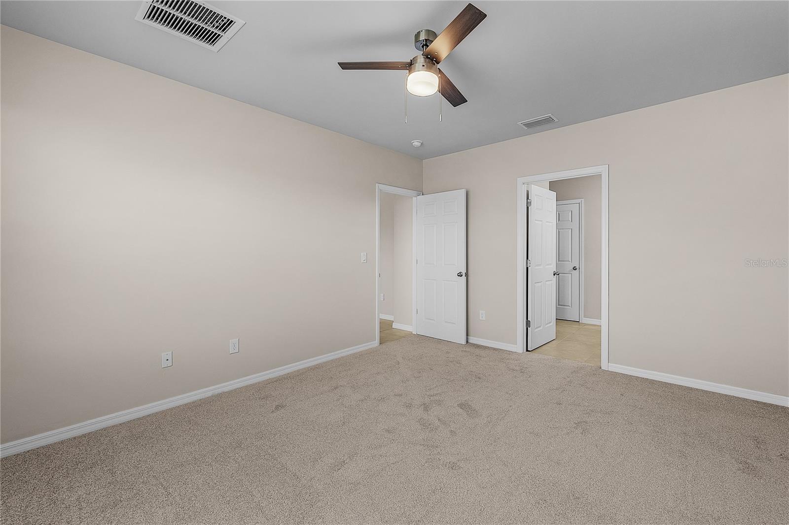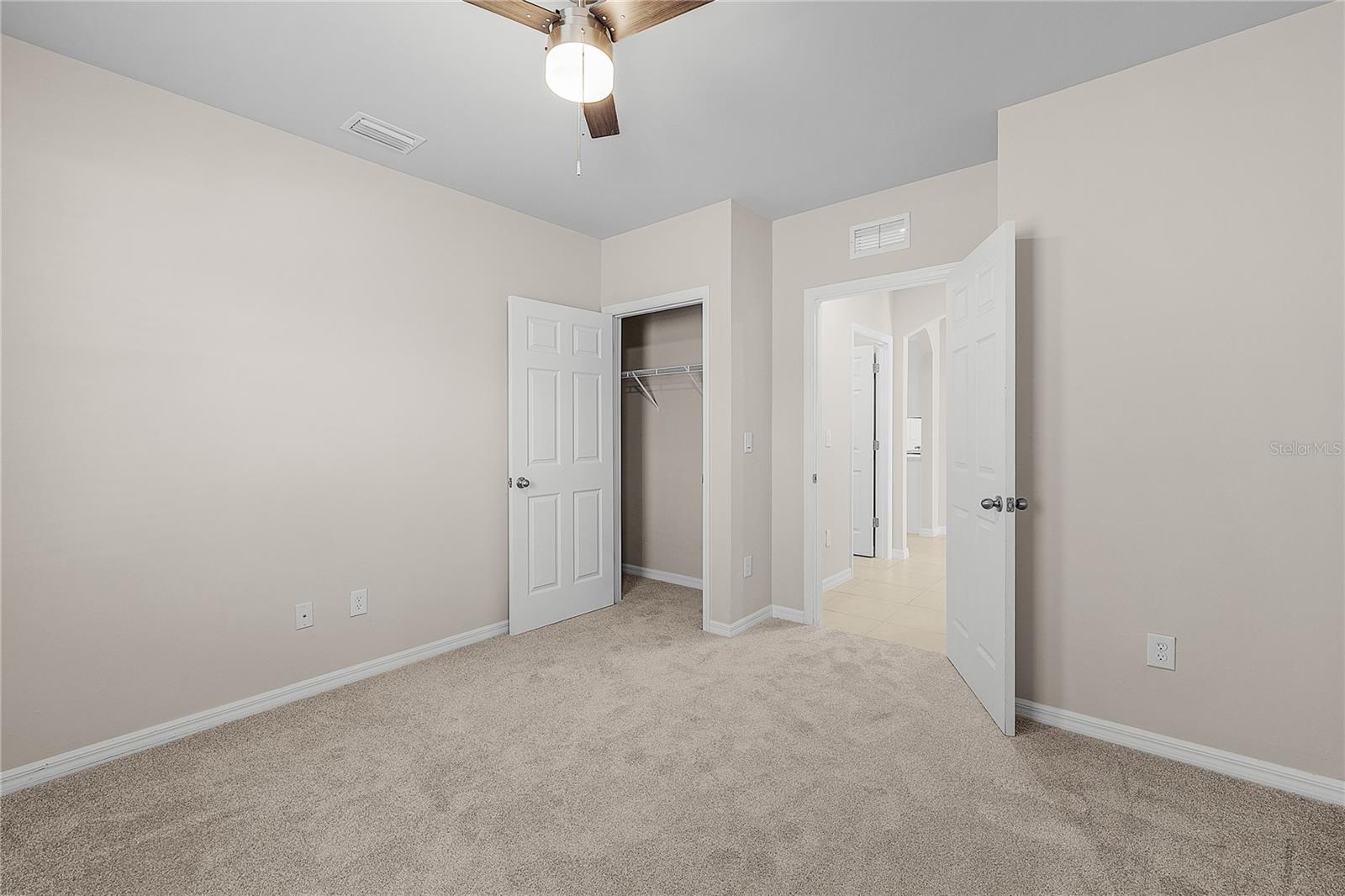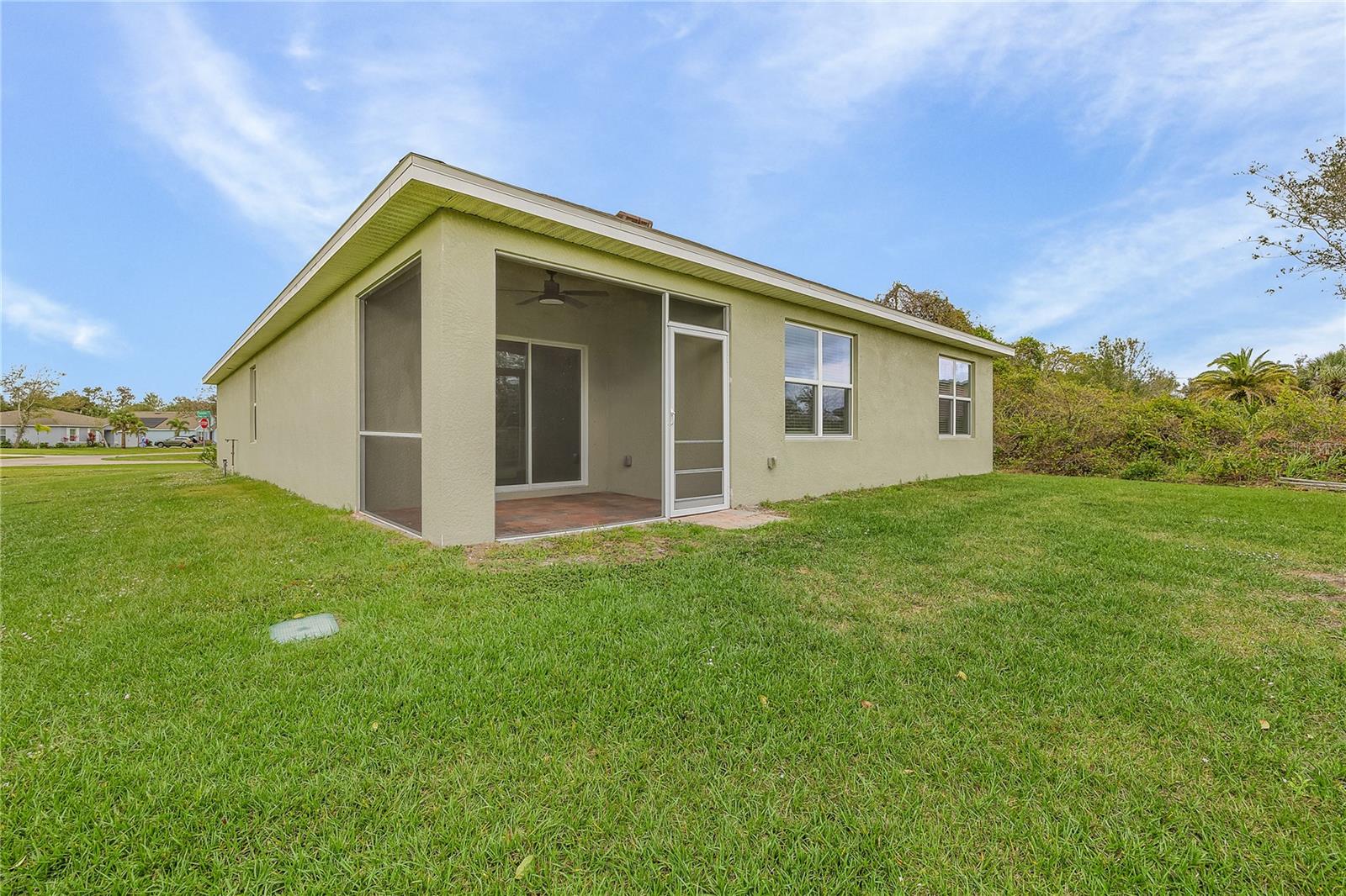 Welcome to this beautifully maintained 4-bedroom, 2-bathroom home, located on a 0.3 acre corner lot in the highly desirable Deep Creek neighborhood. Built in 2021, this home offers modern comfort and convenience, with freshly painted walls, brand-new carpeting throughout all the bedrooms, and clean tile in the open living areas. The home has been deep-cleaned inside and the exterior pressure washed, making it truly move-in ready. Step into the spacious open floor plan, featuring a large kitchen, dining, and great room area – perfect for both everyday living and entertaining. The kitchen boasts stainless steel appliances, a closet pantry, and ample cabinetry. Sliding doors lead to the screened-in covered lanai, ideal for enjoying the outdoors. The primary suite offers a serene retreat, complete with an ensuite bathroom featuring a dual vanity, a large shower, a private water closet, and a walk-in closet. Three additional bedrooms, all generously sized with large closets and ceiling fans, share a well-appointed second bathroom with a shower/tub combo. The front foyer separates the front bedrooms from the main living area, providing added privacy. A two-car garage with a garage door opener enhance the appeal of this home. The clean landscaping and expansive corner lot provides plenty of room for outdoor activities. Hunter Irrigation system for the whole yard. Situated in the sought-after Deep Creek neighborhood, this home is ready to welcome you with its fresh, clean appeal. Don’t miss out on this incredible opportunity to own a piece of paradise! Deep Creek Golf Club nearby. Peace River Preserve for hiking is nearby.