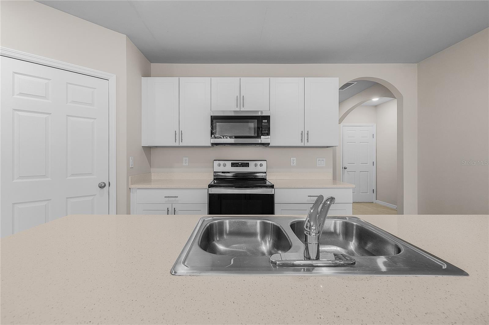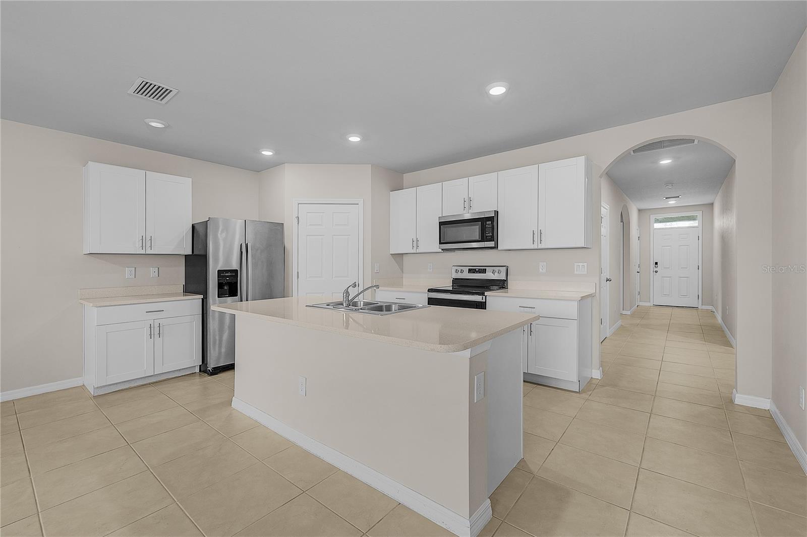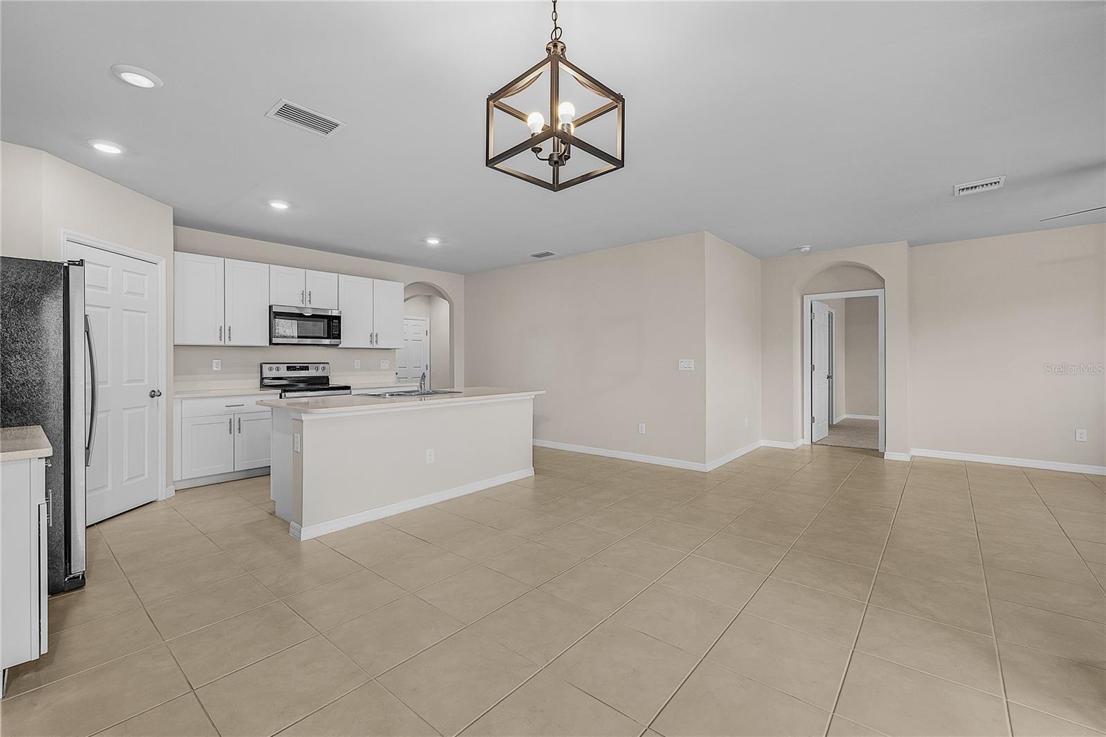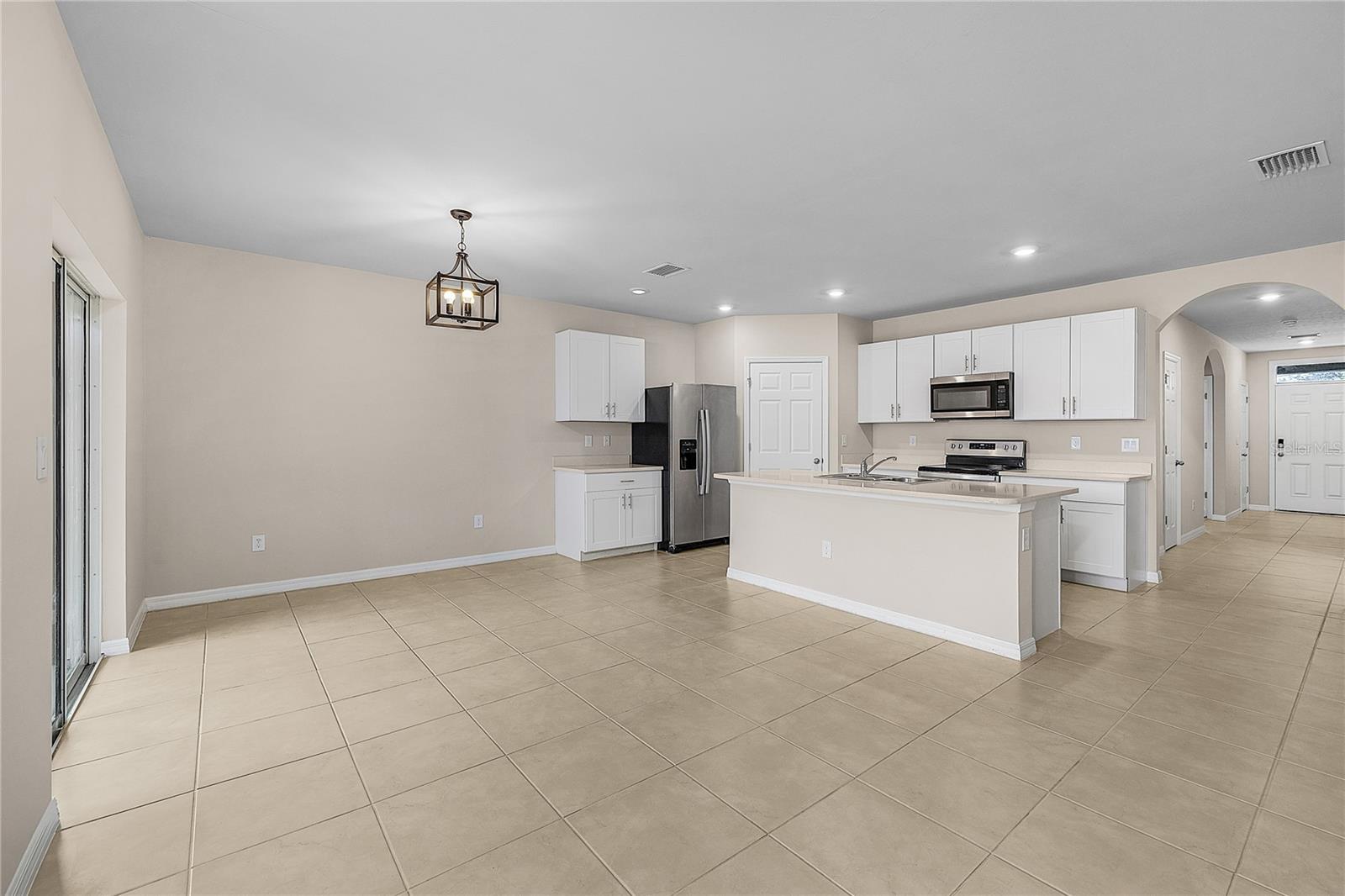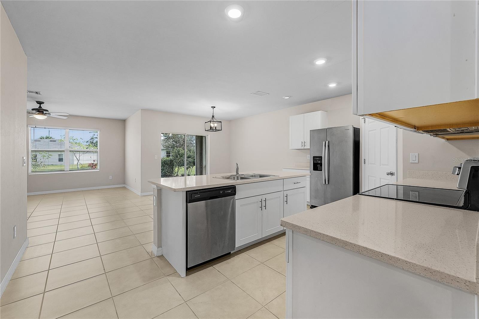 Welcome to this beautifully maintained 4-bedroom, 2-bathroom home, located on a 0.3 acre corner lot in the highly desirable Deep Creek neighborhood. Built in 2021, this home offers modern comfort and convenience, with freshly painted walls, brand-new carpeting throughout all the bedrooms, and clean tile in the open living areas. The home has been deep-cleaned inside and the exterior pressure washed, making it truly move-in ready. Step into the spacious open floor plan, featuring a large kitchen, dining, and great room area – perfect for both everyday living and entertaining. The kitchen boasts stainless steel appliances, a closet pantry, and ample cabinetry. Sliding doors lead to the screened-in covered lanai, ideal for enjoying the outdoors. The primary suite offers a serene retreat, complete with an ensuite bathroom featuring a dual vanity, a large shower, a private water closet, and a walk-in closet. Three additional bedrooms, all generously sized with large closets and ceiling fans, share a well-appointed second bathroom with a shower/tub combo. The front foyer separates the front bedrooms from the main living area, providing added privacy. A two-car garage with a garage door opener enhance the appeal of this home. The clean landscaping and expansive corner lot provides plenty of room for outdoor activities. Hunter Irrigation system for the whole yard. Situated in the sought-after Deep Creek neighborhood, this home is ready to welcome you with its fresh, clean appeal. Don’t miss out on this incredible opportunity to own a piece of paradise! Deep Creek Golf Club nearby. Peace River Preserve for hiking is nearby.