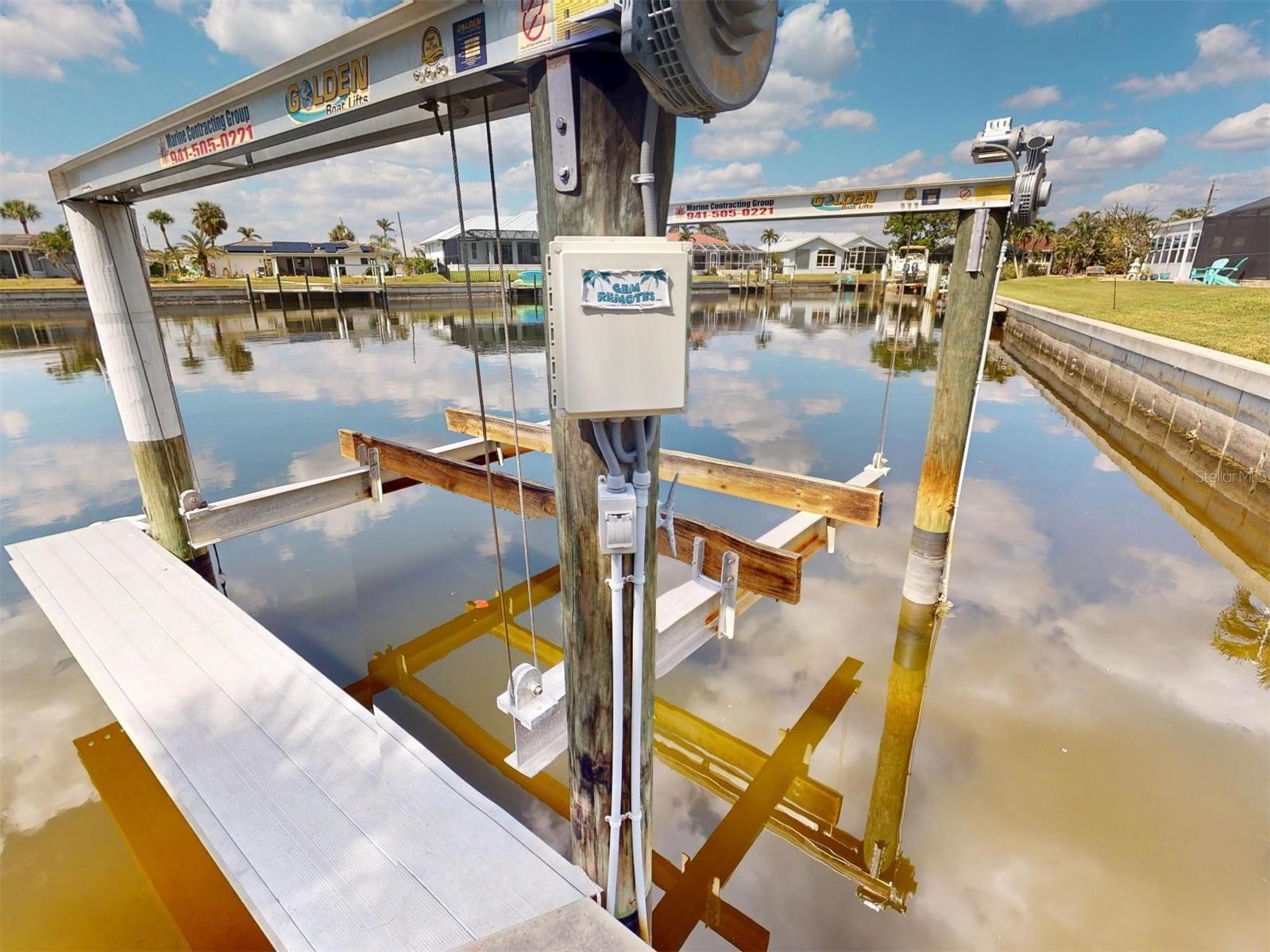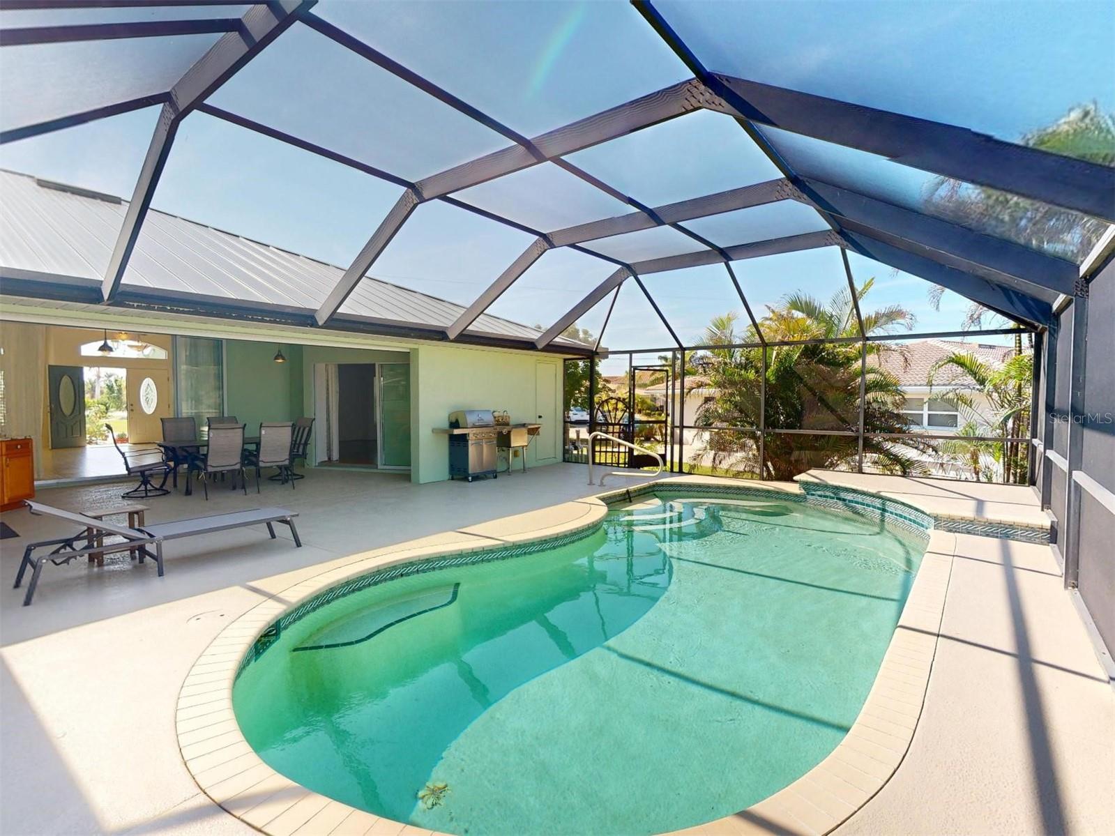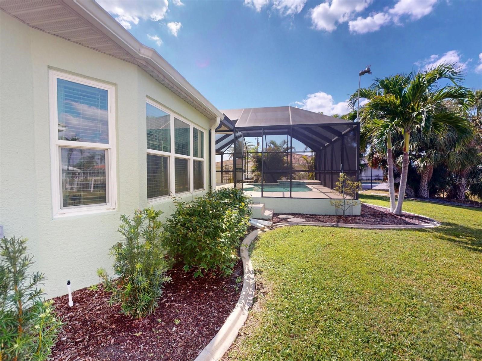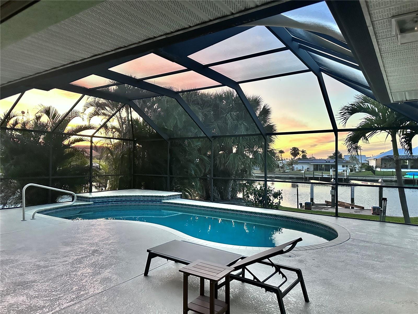 Above and beyond….the extras in this stunning 3 car garage, waterfront pool home add up! The view of the lagoon is by far one of the best features-the view is expansive and sunsets dramatic! The dock and lift are situated to provide an easy access and turn around for an extremely quick ride by boat to open water! The sellers have had to relocate for personal reasons and encourage you to present them an offer so you can love this setting as much as they did. The open and bright rooms surround the heart of the home in the kitchen family room combo with dramatic granite countertop that compliments the wood cabinetry. A bank of cabinetry with pull out shelves gives you easy access to pantry items. The six burner GAS cooktop, wall oven and built in microwave along with warming drawer make this a chefs delight…all while taking in the view of the pool and lagoon. The dining nook makes a cozy place for coffee or meals while dolphin watching. Both the master bath and guest bath are done in unique and dramatic finishes to give a spa like feel. The master suite is a retreat from the world while still taking in the calm water view. Outdoors you can entertain with ample space for guests and sunbathing along with the piped in gas grill and built in stainless sink for grilling or cleaning the days catch! The landscaping is impeccable- desert rose and foxtail palms keep the tropical vibe going all through the yard. The concrete dock and drop down step on station lead to the new lift with additional shore power hook up.. AND THERE IS MORE…metal roof (2023)IMPACT RESISTANT windows (2017) and remote control roll down shutters for protection, central vacuum system, whole home water system by Pelican, irrigation system and alarm system, HVAC new in 2020…could you ask for more? This is a quick ride to open water- less than 15 minutes and you are enjoying our fabulous Charlotte Harbor- leading to the gulf and all points SW Florida has to offer. BE SURE TO CLICK ON THE VIRTUAL TOUR TO TAKE A WALK THROUGH YOUR NEXT HOME!