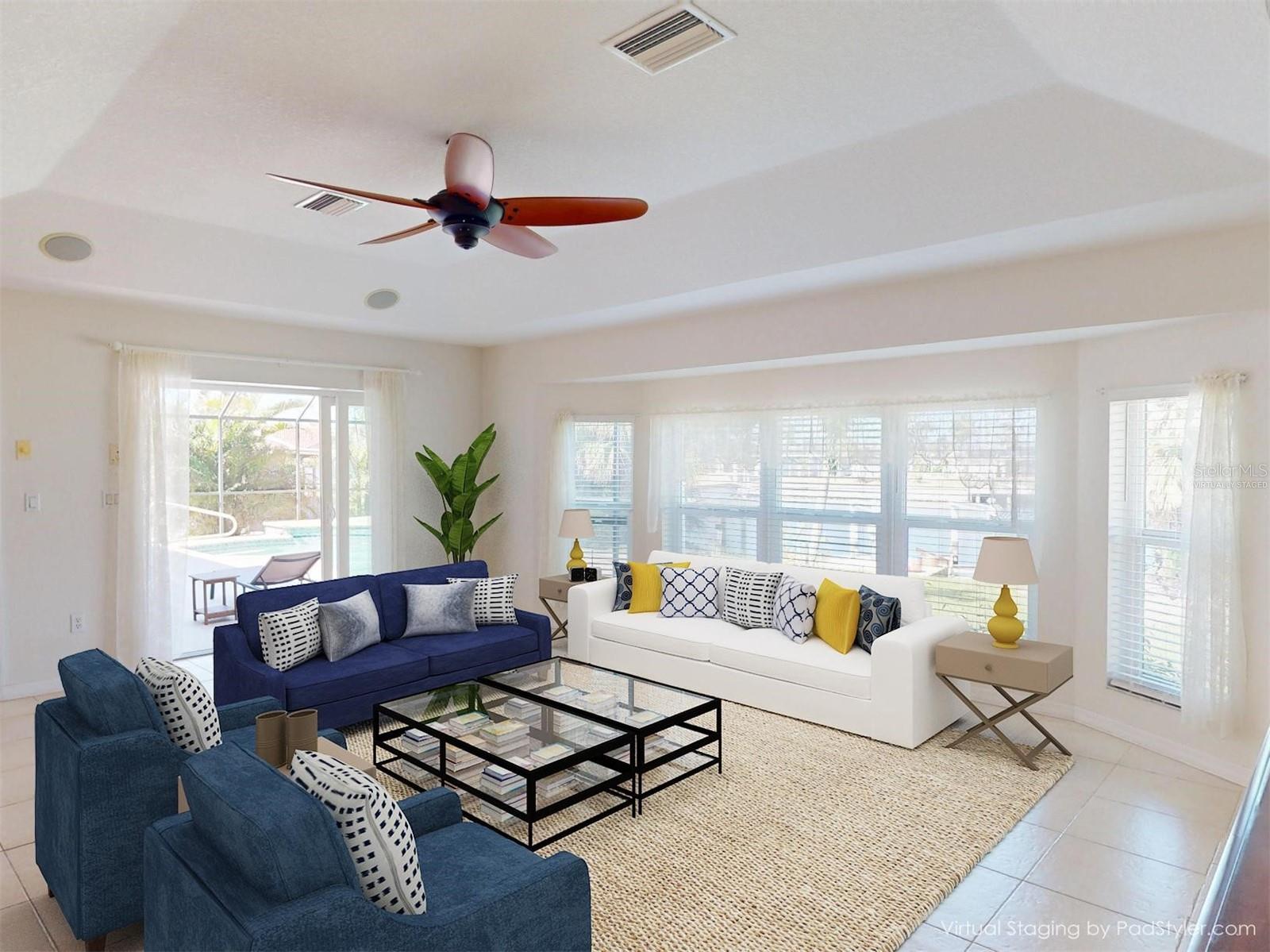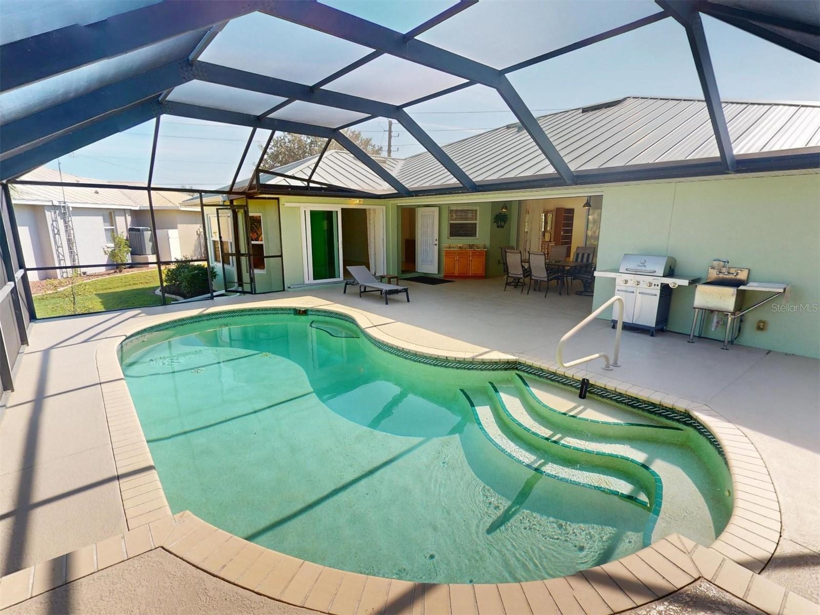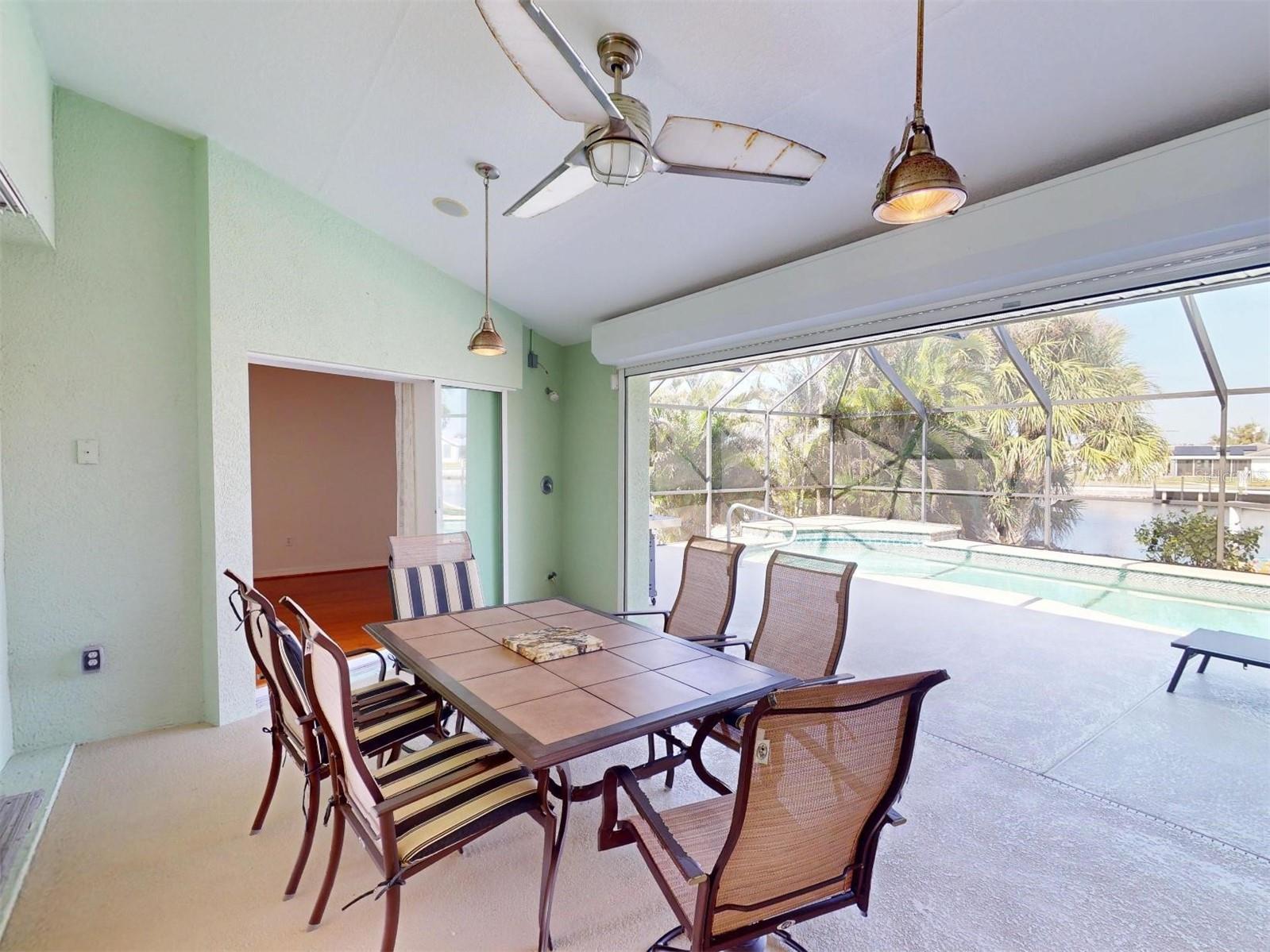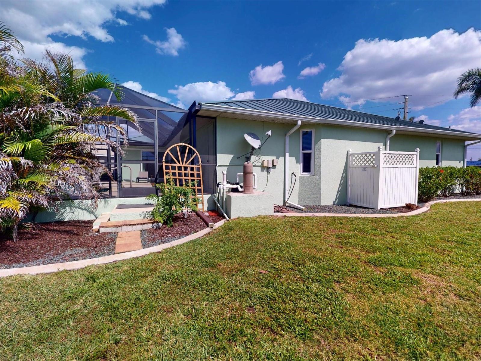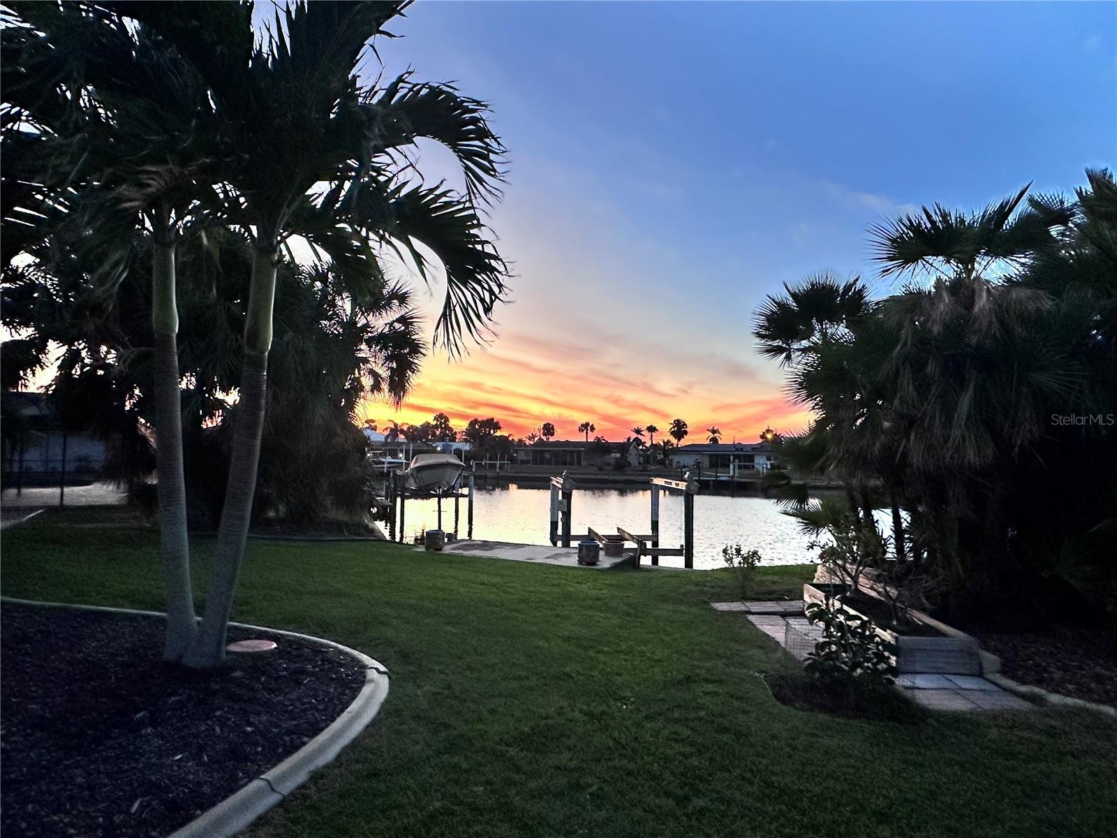 Above and beyond….the extras in this stunning 3 car garage, waterfront pool home add up! The view of the lagoon is by far one of the best features-the view is expansive and sunsets dramatic! The dock and lift are situated to provide an easy access and turn around for an extremely quick ride by boat to open water! The sellers have had to relocate for personal reasons and encourage you to present them an offer so you can love this setting as much as they did. The open and bright rooms surround the heart of the home in the kitchen family room combo with dramatic granite countertop that compliments the wood cabinetry. A bank of cabinetry with pull out shelves gives you easy access to pantry items. The six burner GAS cooktop, wall oven and built in microwave along with warming drawer make this a chefs delight…all while taking in the view of the pool and lagoon. The dining nook makes a cozy place for coffee or meals while dolphin watching. Both the master bath and guest bath are done in unique and dramatic finishes to give a spa like feel. The master suite is a retreat from the world while still taking in the calm water view. Outdoors you can entertain with ample space for guests and sunbathing along with the piped in gas grill and built in stainless sink for grilling or cleaning the days catch! The landscaping is impeccable- desert rose and foxtail palms keep the tropical vibe going all through the yard. The concrete dock and drop down step on station lead to the new lift with additional shore power hook up.. AND THERE IS MORE…metal roof (2023)IMPACT RESISTANT windows (2017) and remote control roll down shutters for protection, central vacuum system, whole home water system by Pelican, irrigation system and alarm system, HVAC new in 2020…could you ask for more? This is a quick ride to open water- less than 15 minutes and you are enjoying our fabulous Charlotte Harbor- leading to the gulf and all points SW Florida has to offer. BE SURE TO CLICK ON THE VIRTUAL TOUR TO TAKE A WALK THROUGH YOUR NEXT HOME!