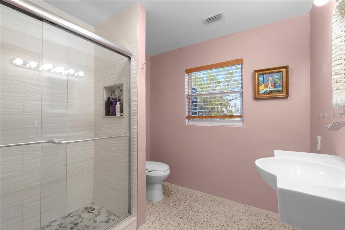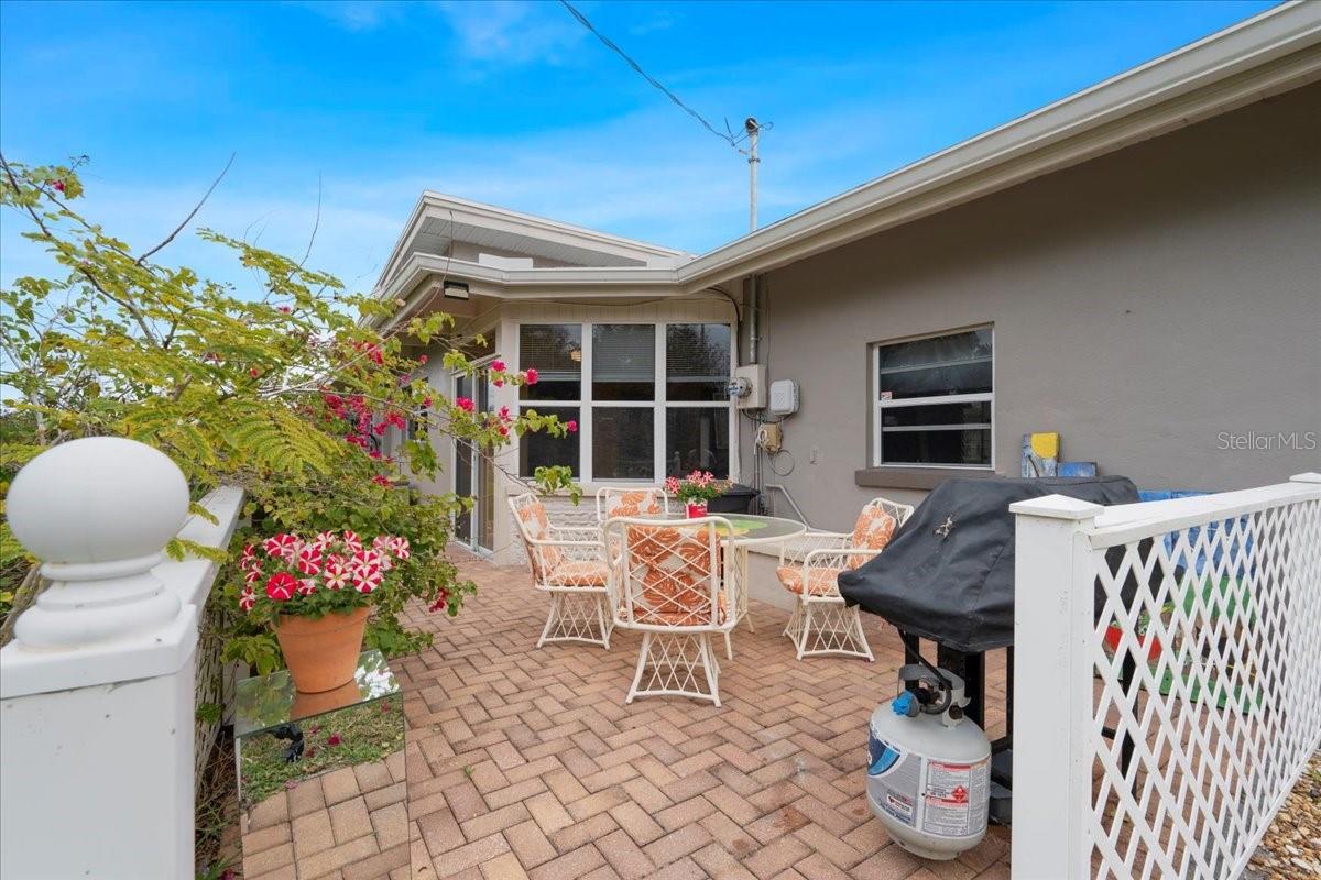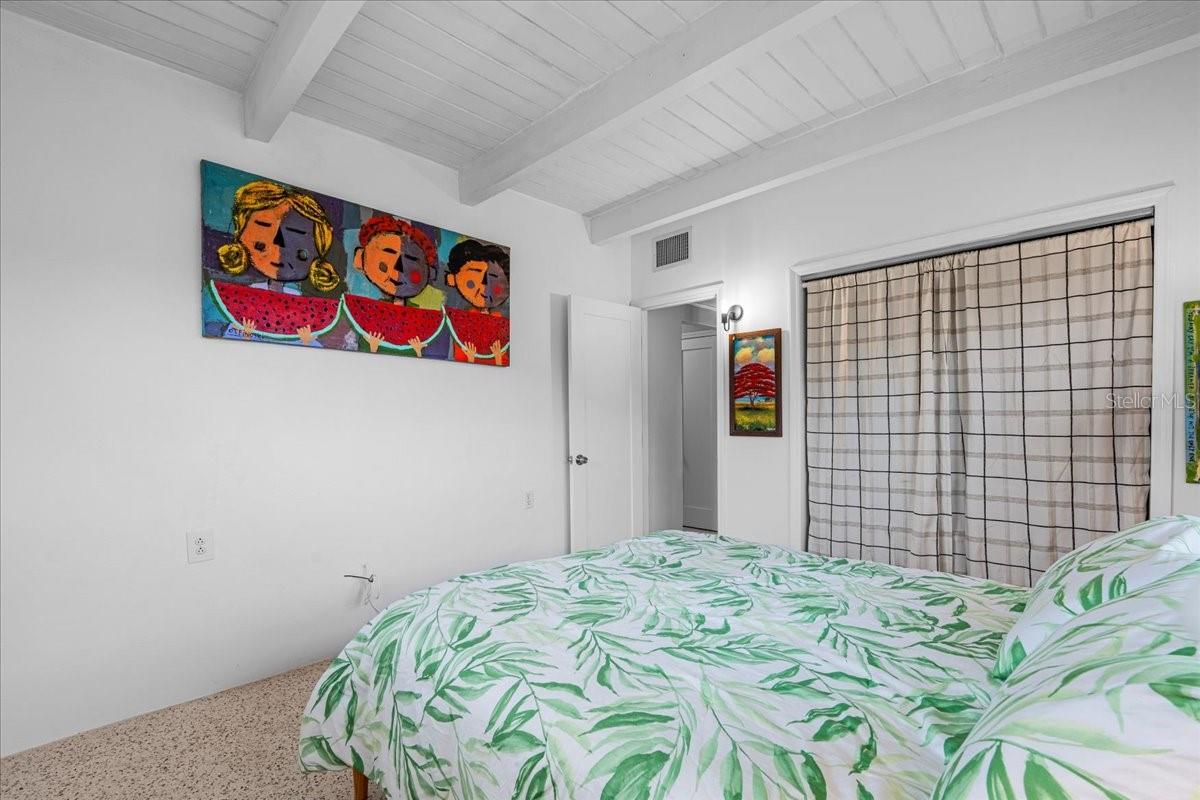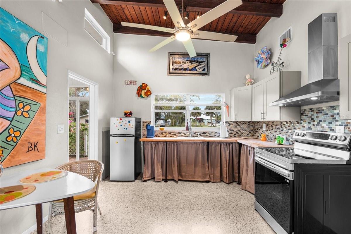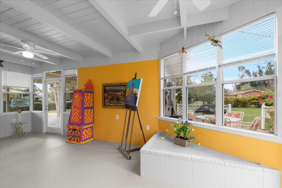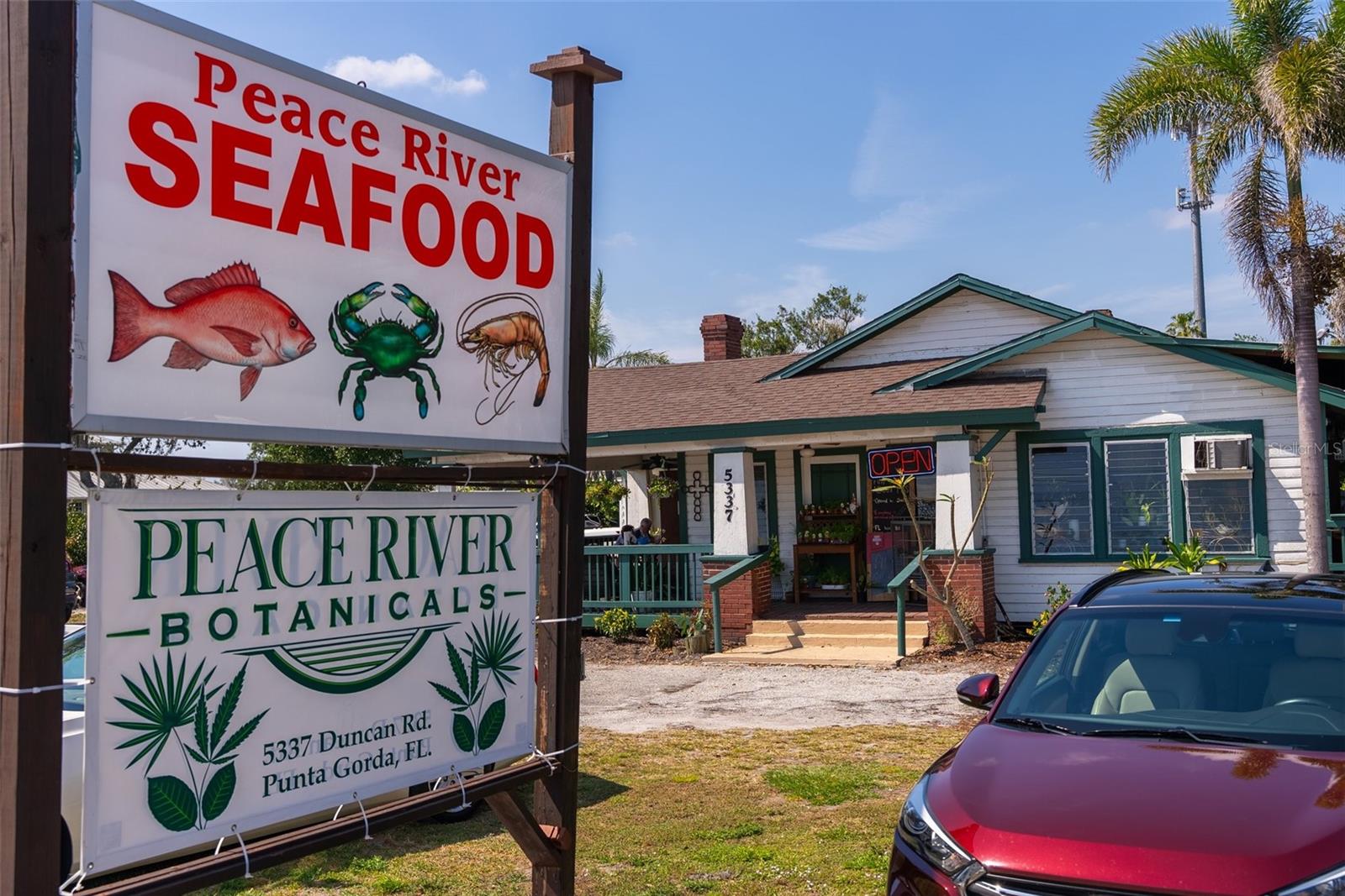 Welcome to this stunning MID-CENTURY modern BLOCK home, a true architectural gem nestled on a spacious DOUBLE LOT only moments from downtown Punta Gorda! Custom-built in the 1950s, this unique home seamlessly blends vintage charm with modern updates, creating a space that is both stylish and functional. Thoughtfully designed, it features beautiful TERRAZZO flooring throughout, striking 16' high wood inlay accent ceilings and transom windows that flood the open-concept interior with natural light. At the heart of the living area, a one-of-a-kind custom made wood burning fireplace adds warmth and character, making it the perfect space to relax or entertain. The beautifully updated kitchen is everything you really need, boasting BUTCHER BLOCK countertops, soft-close solid wood cabinets, a seamless tile backsplash, and a brand-new stainless steel stove with vented hood! Adjacent to the kitchen and living area, a versatile BONUS room offers the perfect spot for an art studio, crafting room, or even a cozy reading nook. The primary suite and additional bedroom feature wood ceilings that scream Florida charm. The primary bathroom has been updated with a stunning tiled walk-in shower, with a niche and sliding glass door. All your storage needs are met with numerous hallway storage closets and a dedicated laundry room off your carport with built-in storage shelfing and washer/dryer hookups add to the home’s practicality. Significant updates provide peace of mind, including a NEW ROOF (2022), new ELECTRICAL panel (2020), brand-new NEW A/C and HOT WATER HEATER, and many updated windows throughout the home. Outside, you'll notice the beautifully landscaped rocked beds, lined with concrete curbing and perfectly pruned front hedges, frame the thoughtfully planted Florida landscaping, enhancing its curb appeal. The private backyard, provides a plethora of room for activities, complimented with a paver LANAI & privacy fence, creating a tranquil escape for morning coffee or ideal for grilling out! Ideally located, this home is just minutes from downtown Punta Gorda, where you can explore waterfront dining, boutique shopping, and lively events at Laishley Park. Just down the street, the Darst Park Boat Ramp located only walking distance away, offers easy access to the Peace River and intercoastal waters for boating, kayaking, and fishing. Nature lovers will appreciate being near the beautiful Punta Gorda Botanical Gardens, a serene spot perfect for a peaceful stroll among lush Florida flora. For a true local favorite, Peace River Seafood is just around the corner, serving up the freshest blue crab and seafood in a laid-back, authentic Florida atmosphere. With quick access to I-75, commuting is a breeze while still enjoying the charm of this vibrant community. With its unique architectural details, thoughtful upgrades, and unbeatable location, this mid-century modern masterpiece is truly one of a kind. Schedule your showing today and experience its charm firsthand!