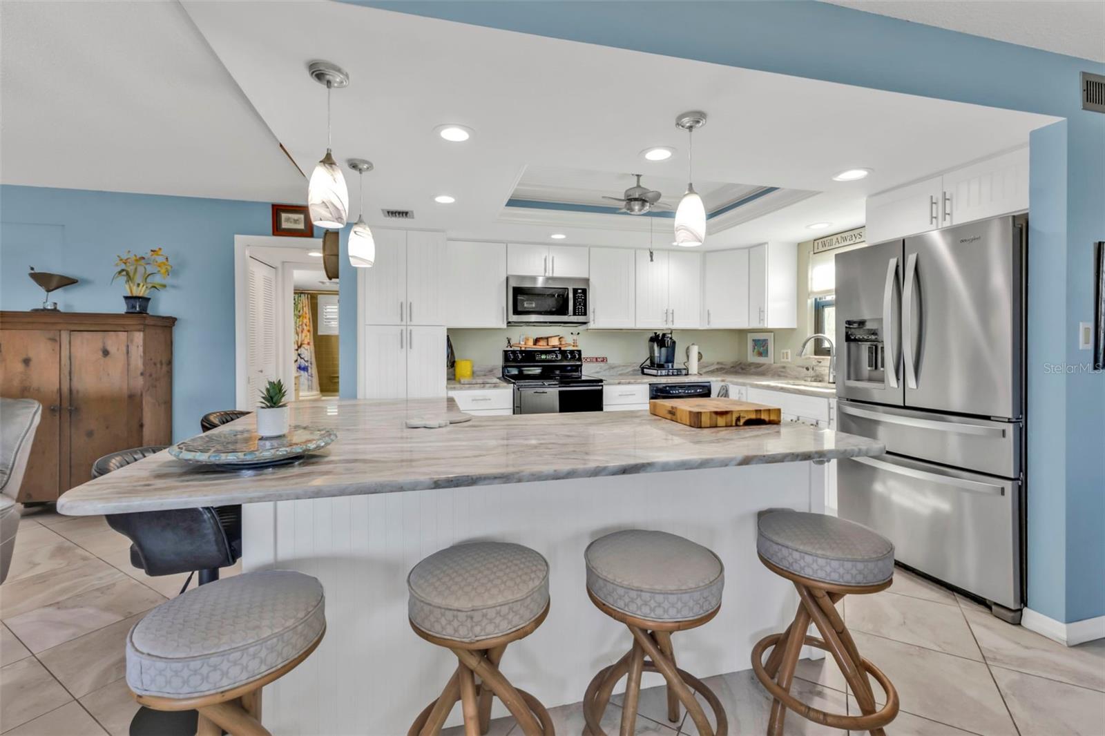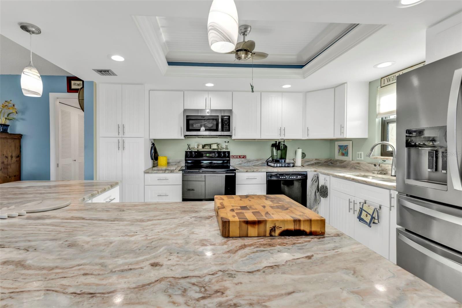 NEW PRICE, MARKET-DRIVEN! Discover easy living in this beautifully remodeled END UNIT, two-bedroom, two-bathroom condo in Burnt Store Marina. If convenience blended with luxury appeals to you, this meticulously updated residence also features newer appliances and an in-unit laundry room that makes chores seem less of a chore. Step into the spacious living area where natural light dances across the room, setting the stage for unforgettable gatherings or tranquil evenings watching the sun ebb into the horizon. Yes, the sunsets here are included in the price of admission! Feel at ease during stormy months with hurricane-rated windows and an electric hurricane/sun shutter on the lanai. Just a casual stroll from your front door leads you to the marina and local dining hotspots like Cass Cay Restaurant & Bar, where the food competes with the view for your attention. And let's not overlook the short golf cart ride to Burnt Store Marina Country Club - because why drive your car when you can take your electric cart. Whether you're a boat enthusiast, a scratch golfer, a culinary connoisseur, or someone who simply appreciates modern comforts and stunning views, this condo checks all the boxes. Come see why Burnt Store Marina isn't just any place to live - it's your next chapter in the book of life's great adventures!