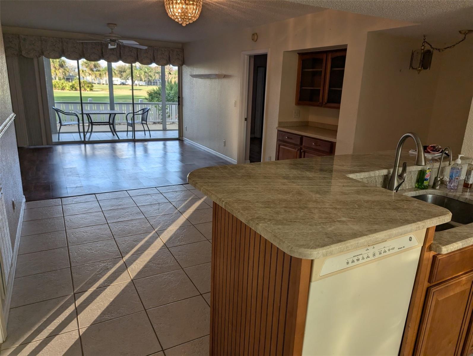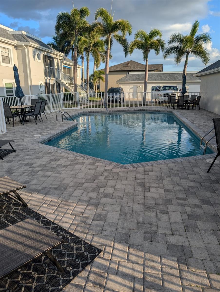 Golf course living at its finest! This charming first-floor, 3-bedroom, 2-bath condominium in Fairway Pines offers stunning views of the 9th hole on Deep Creek Golf Course. Enjoy a spacious screened lanai with hurricane shutters, and impact windows throughout. Granite countertops in the kitchen and ample storage make this home a delight. Also includes a highly sought-after PRIVATE GARAGE! The primary suite boasts two closets (including a walk-in) and lanai access. Two additional bedrooms, one with lanai access, and the other with a private garden patio. Enjoy updated community amenities including a heated pool, grill, and shared garage. Quarterly HOA of $1285 covers cable, water, and sewer.