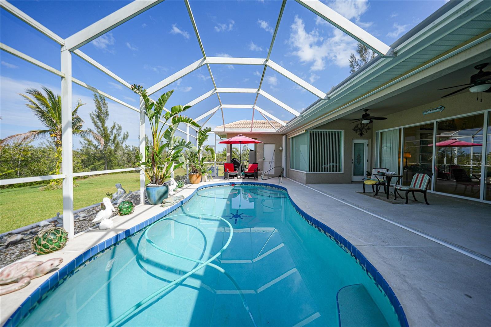 Check out this rare find and what Florida lifestyle is all about in Burnt Store Lakes. If you are searching for peace and tranquility, don’t miss this spectacular open floor plan with plenty of light from the Aquarium Windows in the breakfast nook and den to the large sliding doors, that bring the outside in. The 3 oversized bedrooms, and 3-bathroom pool home is a picturesque oasis. The homes sits on an over sized lot. The 2 adjacent lots on each side of the home can be purchased with the home for an additional 60k each which would bring the land total to almost 1-1/2 acres. The property backs up to a green belt and preserve for amazing privacy. You will be delighted by the grandeur of this home. In the heart of the home, sits the spacious kitchen that opens up to the great room leading to the pool and screened lanai area. The Aquarium windows give a backdrop of the fabulous birds and wildlife on the greenbelt and preserve. Well water is currently limited to irrigation system. A great home to entertain your family and friends. Oversize deep garage 956 square feet with 15 ft ceilings and storage space. The community boasts access to Charlotte Harbor with a Kayak launching area.
