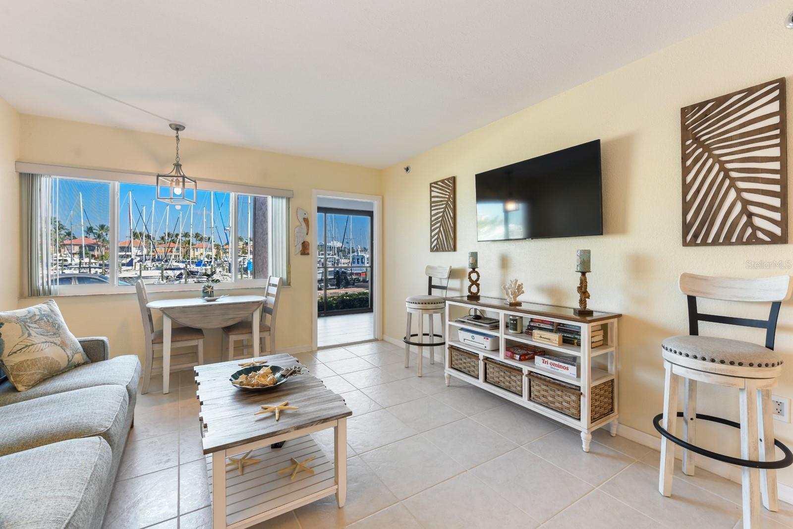 WATERFRONT with a MARINA VIEW!! FULLY FURNISHED & TURNKEY!! Cute 1 bedroom/1 bath condo, Keel Club has the best price and the best location in the Marina community! Appliances and kitchen lighting replaced 2020, AC replaced 2021, Lanai has screening, new vinyl sliders, and a roll-down aluminum storm screen. Washer/dryer unit new in 2024. Large LR window is a new storm-rated one. Perfect for investors due to a strong short-term rental history, or for seasonal owners as well. Convenient first floor condo has a wonderful view of the boats coming and going, and is within a short walk to the dockmaster office, the Tennis and Fitness Center, the Tradin' Post deli and store, and the large marina restaurant which has entertainment every night. Roomy screened lanai for morning coffee and sunset cocktails! Large heated pool and sun deck. Burnt Store Marina is a true resort community with 27 golf holes, a friendly Country Club restaurant, many walking paths, and boating of all kinds. This is the largest deep-water Marina on Florida's west coast with easy water access to the Gulf of Mexico and the barrier islands of Sanibel, Captiva, Boca Grande, and the ICW. Welcome to your little Piece of Paradise!!