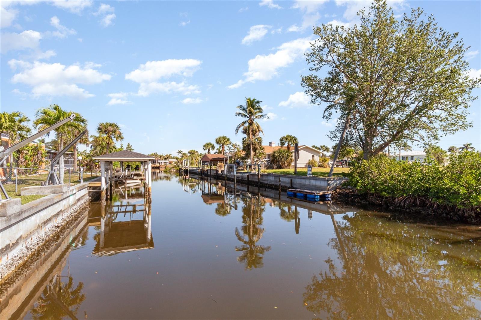 FULLY UPDATED WATERFRONT 2 Bedroom, 2 Bathroom, OVERSIZED 1 Car Garage home with a Family room, on a SALTWATER Canal with 80 feet of water frontage, located in Charlotte Park. NO HOA FEES! CLICK ON THE VIRTUAL TOUR LINK 1 FOR THE VIDEO AND VIRTUAL LINK 2 FOR THE 3D TOUR. Featuring a bright and open floor plan, tile and laminate flooring throughout, BEAUTIFUL water views, and MUCH MORE! Seamlessly entertain friends and family in the living room while whipping up family favorites in the kitchen. The kitchen offers ALL stainless-steel appliances, granite countertops, a tiled backsplash, a breakfast bar, and a closet pantry. Expand your living and entertaining space with an open family & dining room with large windows for plenty of natural lighting, a glass slider to the lanai, and serene water views. The spacious master bedroom has a walk-in closet and a private bathroom with a single sink vanity and a walk-in shower. The guest bedroom has two built-in closets and a guest bathroom nearby. The screened-in lanai is perfect for sipping your morning coffee or unwinding with your favorite evening beverage while enjoying the water views. The large fenced backyard is full of possibilities with lush landscaping, a shed for storage, and a private 10x11 dock and boat davits, perfect for casting your line for some fishing or setting off on endless water adventures. 2023 ROOF REDONE - 2024 HOME REPLUMBED - 2024 ALL ELECTRIC UPDATED - UPDATED CABINETS, DOORS & TRIM - 2024 WATER HEATER - 2024 LANAI - EXTERIOR & INTERIOR PAINTED. Conveniently located within close proximity to US-41 and local favorites such as Fishermen's Village, Ponce De Leon Park, shopping & boutiques, fine & casual dining, and LIVE entertainment. Schedule your showing TODAY!