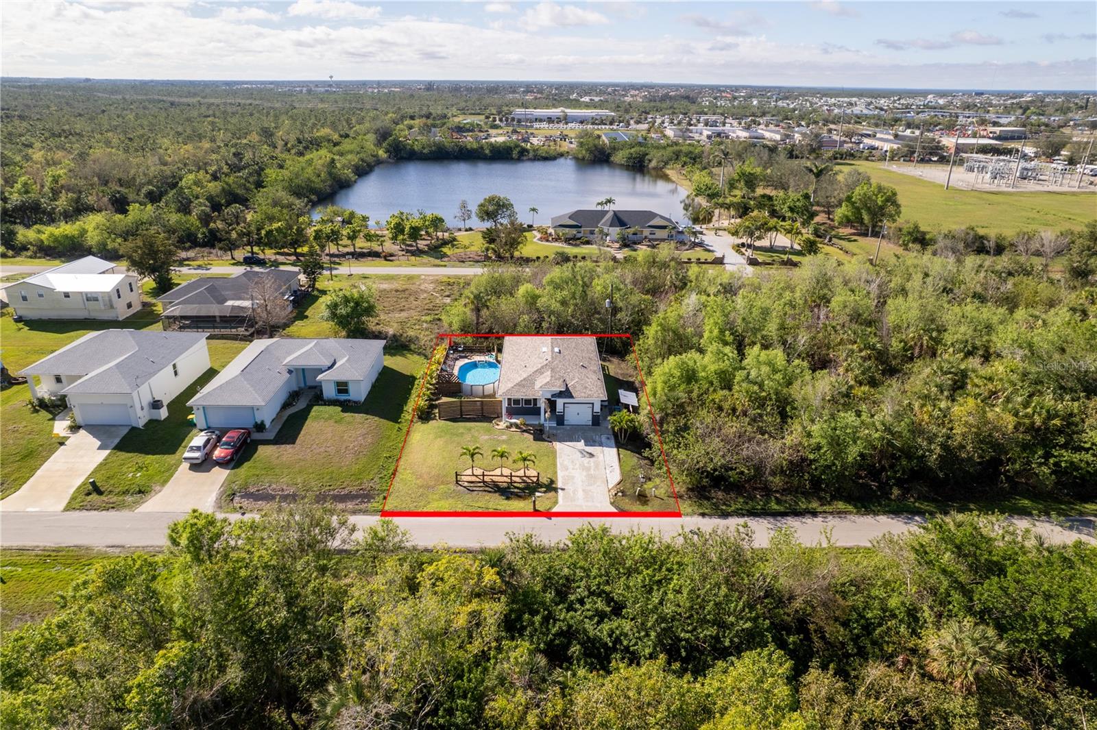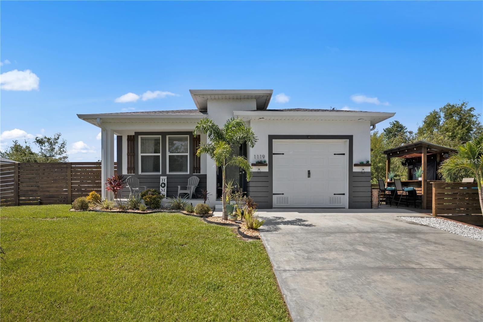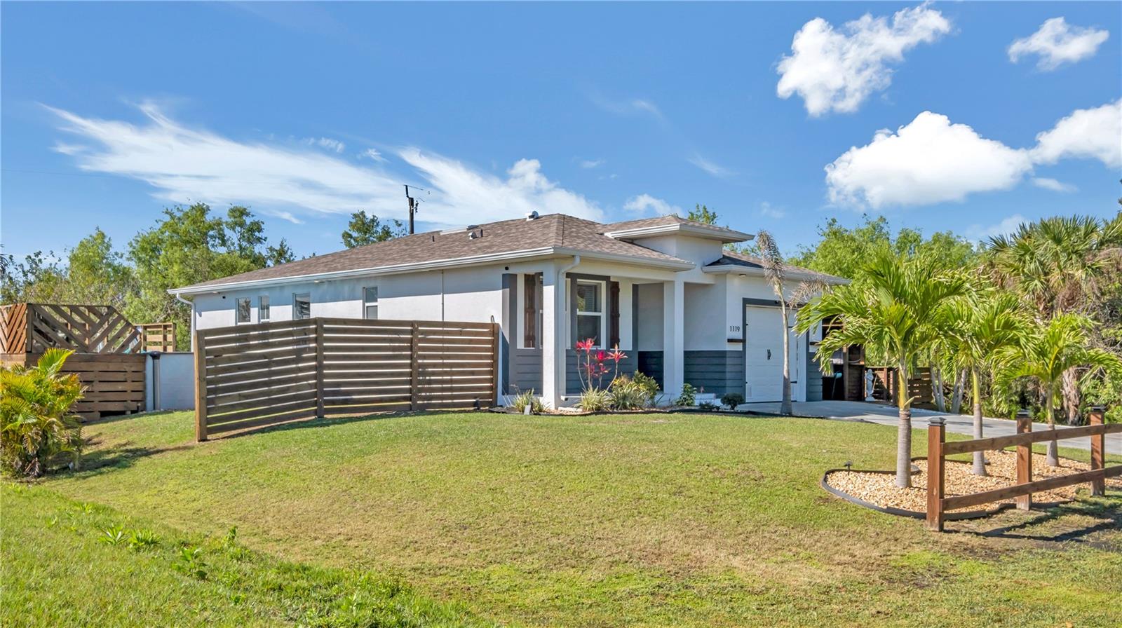 Welcome to your Florida dream home! This beautiful home, constructed in 2020 is nearly new and freshly painted inside, ready to move in. It is a 3-bedroom, 2-bathroom, pool home. This stylish modern farmhouse is offering 1,338 square feet of living space with 3 outside decks/patios which makes it the perfect home for entertaining, relaxing, or enjoying the sunrises and evening sunsets. Upon entering the home, you will notice the 8 ft frosted glass hurricane impact door with key code punch entry. This home throughout has oversized tile, filled with natural light from all the hurricane impact windows, creating an open, airy atmosphere boasting 10 ft ceilings that flows effortlessly from room to room. The open concept living space is ideal for both lounging and entertaining with recess lighting throughout. The sleek modern kitchen with all stainless-steel appliances, custom cabinetry, quartz counters tops and breakfast bar making this a chef's delight with so much counter space. Retreat to the serene primary suite, with custom accent wall, walk in closet, complete with a private ensuite bathroom, custom tile with floating vanity cabinets with direct access to the backyard oasis. The two additional bedrooms also having custom designed accent walls, are great for family, guests or office. Step outside to your own slice of paradise. The expansive back porch overlooks a sparkling above ground pool, surrounded by a large deck—creating the perfect spot for relaxing or hosting gatherings. Plus, the side deck with its built-in sports bar offering a unique space for enjoying a cold drink in the Florida sunshine or watching your favorite game. Built to newest elevation codes providing peace of mind and safety year-round. Located in vibrant Punta Gorda, this home is just minutes from fine dining, shopping, and outdoor activities.