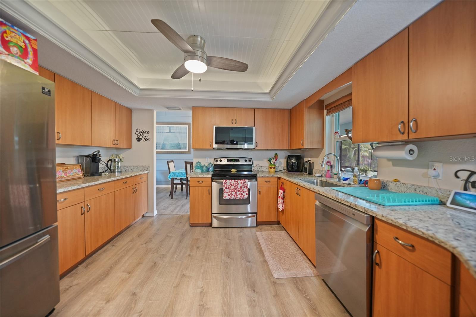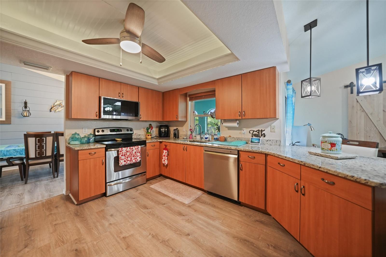 Welcome to this 3-bedroom, 2-bathroom home located in the highly sought-after Deep Creek community! This beautifully updated residence offers modern comforts and an inviting atmosphere, perfect for both relaxation and entertaining. Upon entering, you’ll immediately notice the many upgrades throughout the home. The spacious living areas feature luxury vinyl flooring, adding both style and durability to the space. The brand-new roof provides peace of mind, while the impact windows provide added security and energy efficiency. Plus with the addition of solar panels, you’ll enjoy reduced energy costs and contribute to a more sustainable lifestyle. The heart of the home is the fully equipped kitchen, complete with upgraded appliances. The open floor plan seamlessly connects the kitchen to the dining and living areas, making this home ideal for hosting family and friends. The master suite is a private retreat, with ample space, a well-appointed en-suite bathroom, and generous closets. Two additional bedrooms are bright providing comfort and flexibility for your family or guests.