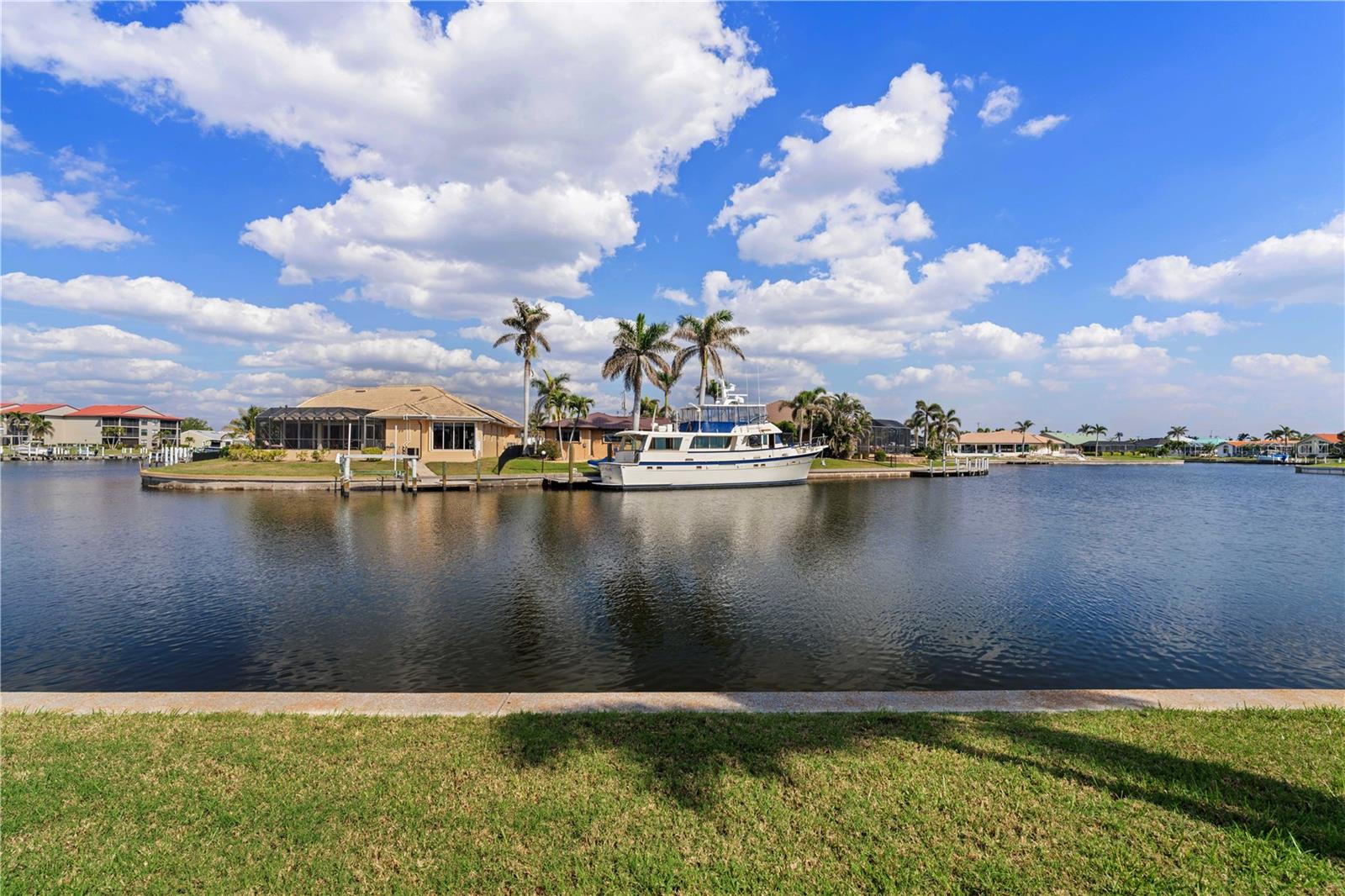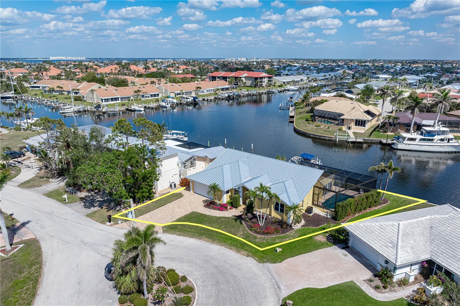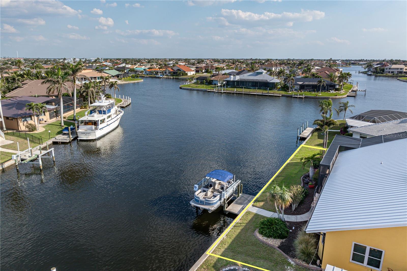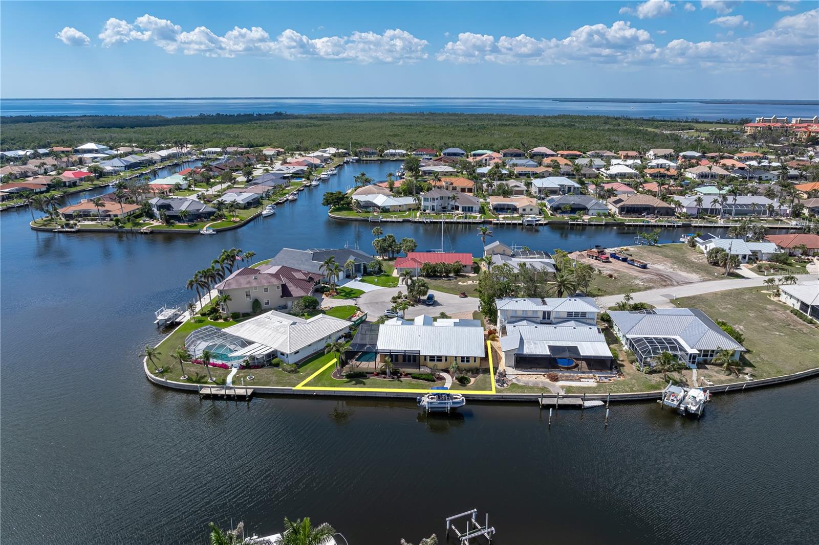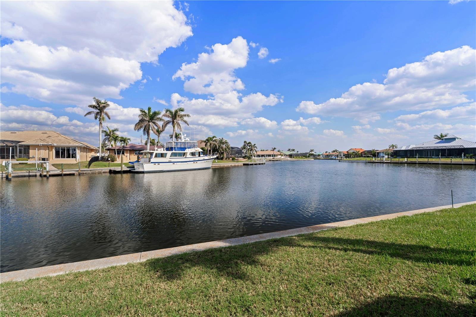WATERFRONT LIVING IN PGI W/A FABULOUS VIEW! Check out this 3 bed/2 bath, waterfront home in Punta Gorda Isles w/NEW METAL ROOF. Property features 105ft of seawall w/a concrete dock & boat lift plus VERY QUICK SAILBOAT ACCESS to Charlotte Harbor. Enjoy stunning sunrises thanks to the desirable eastern rear exposure of the home. The home has an open floor plan w/a spacious formal dining/living room as well as a separate family room plus a Florida room w/panoramic canal views. At the heart of the home is an updated kitchen w/granite counters, wood cabinetry & NEW stainless steel appliances (2023). The adjacent breakfast area features a built-in desk, additional storage cabinets as well as a full butler's pantry for added storage space. Tons of natural light thanks to walls of sliding glass doors along the back of the home. Architectural details include soaring cathedral ceilings, large windows, tile flooring throughout the main living areas & bathrooms plus luxury vinyl plank floors in the bedrooms. The spacious master suite has an amazing view plus en-suite bath w/oversized walk-in closet. Two large guest rooms share a guest bath - one guest room features a large, walk-in closet. Outside, the lanai has a new, picture-frame pool cage (2023) surrounding the in-ground, heated pool. Pool heater new in 2022. Lounge poolside & enjoy the view from here. A concrete dock w/boat lift is steps from the back door. Water & electric hook-ups including 50amp service is available dockside. Other amenities include whole-house hurricane protection w/impact-resistant doors & windows plus Lexan panels for the accent window in the guest bath, an attached two-car garage & spray-foam attic insulation for added energy-efficiency. Home is located on a quiet cul-de-sac. Punta Gorda is a vibrant waterfront community known for its boating lifestyle, active art & music scene, and top-rated golf courses. Miles of sidewalks connect you to the rest of Punta Gorda Isles, several area parks & even historic downtown Punta Gorda. Take advantage of the active lifestyle awaiting you here: you can walk, bike or kayak to almost anywhere you'd want to go! Take the boat to dinner at nearby Fishermen's Village, Cass Cay at Burnt Store Marina or even the Isles Yacht Club. Claim your spot in paradise & start living your Florida dream here.