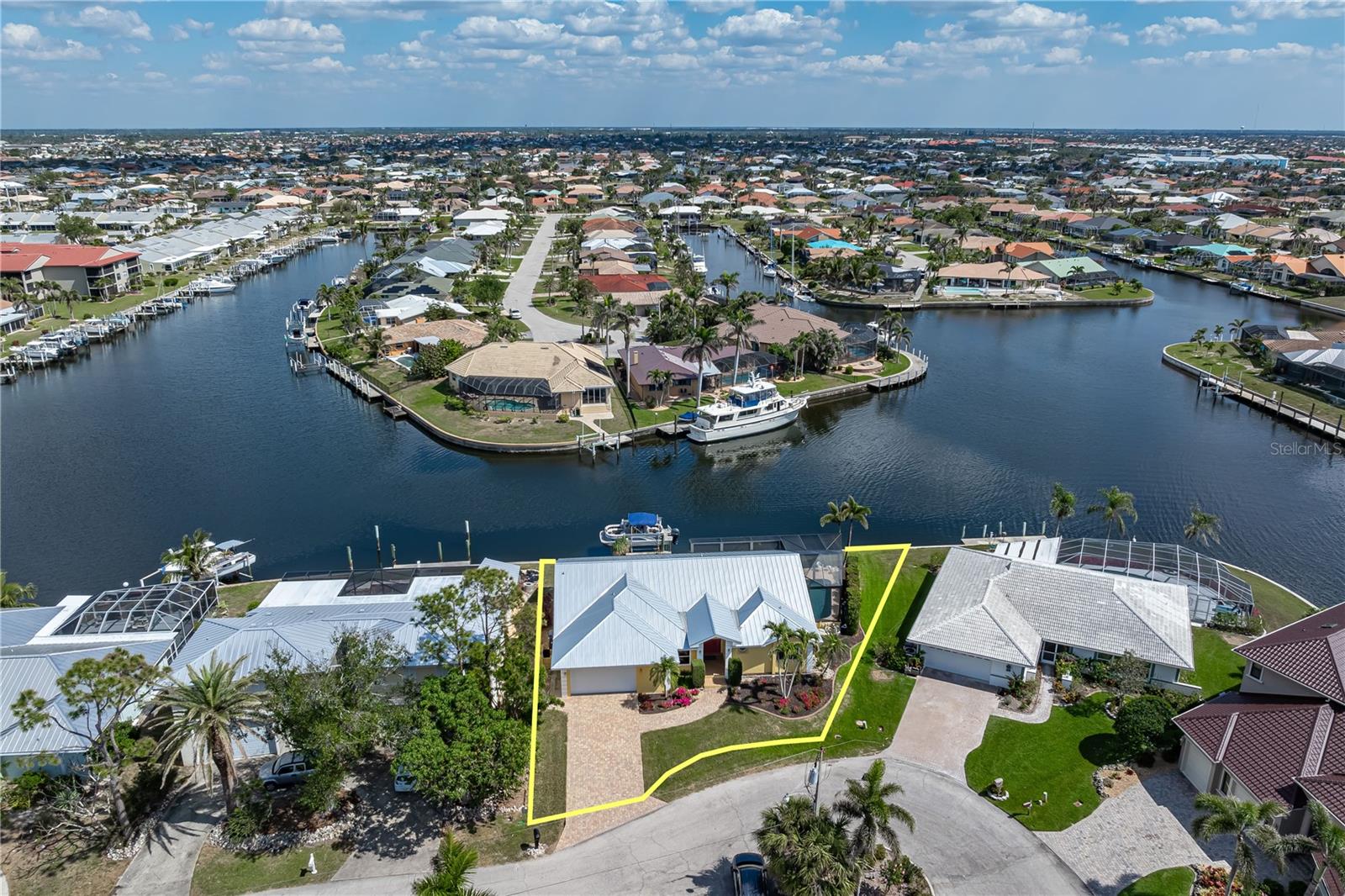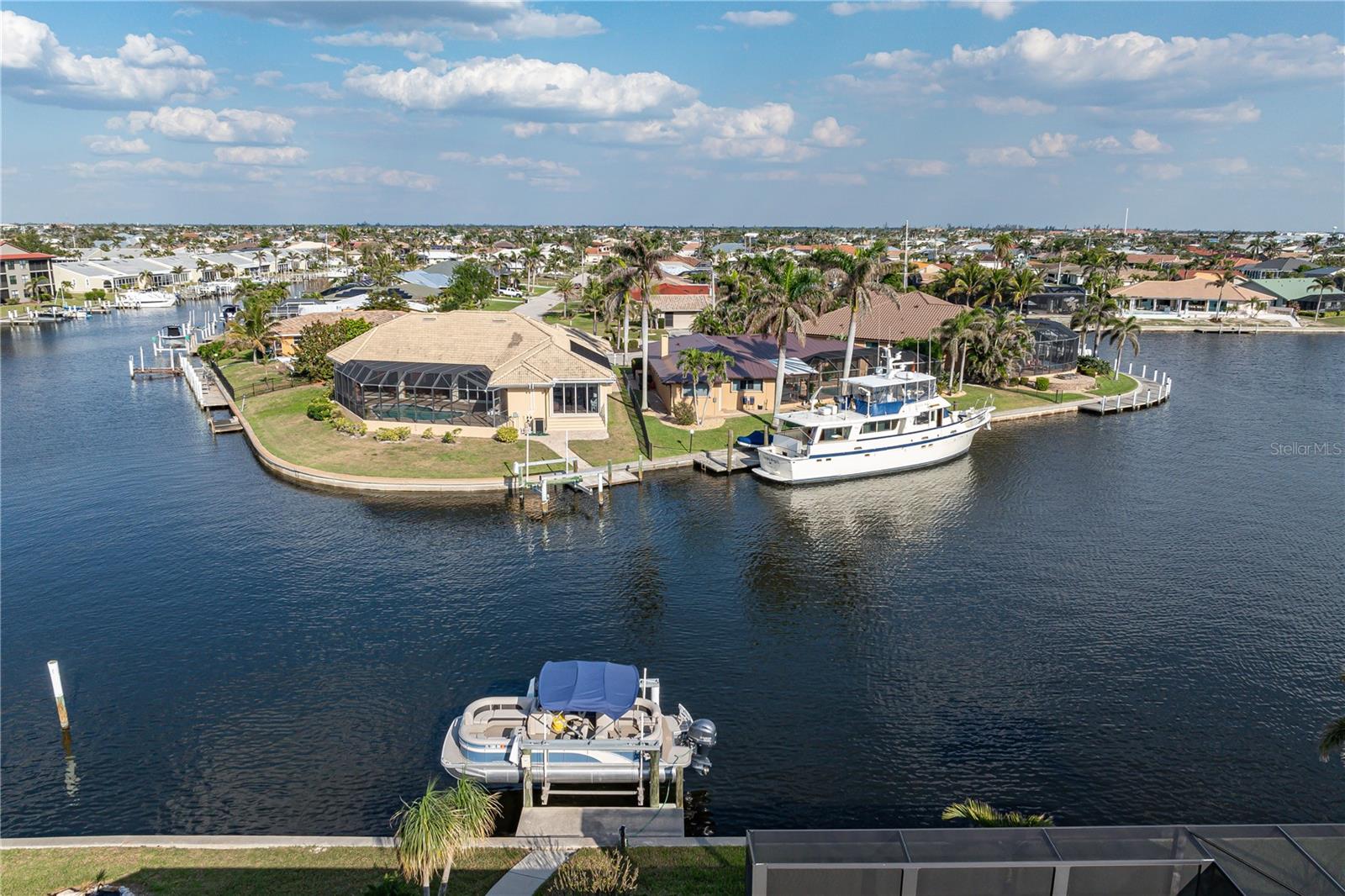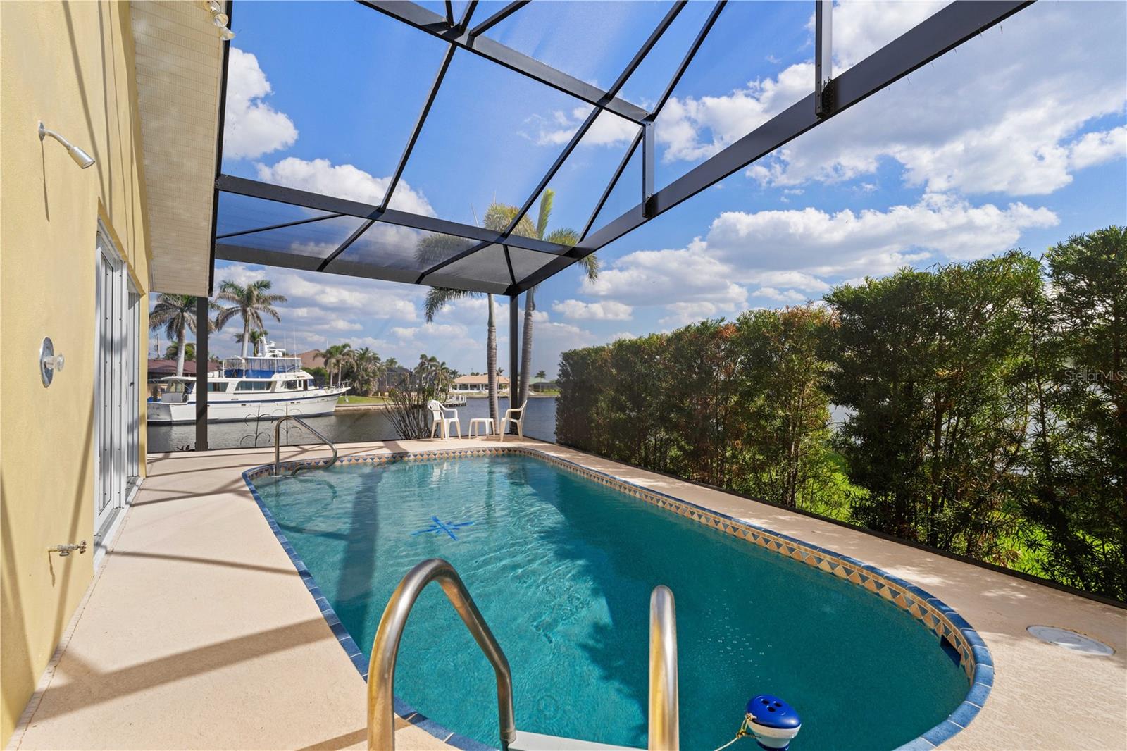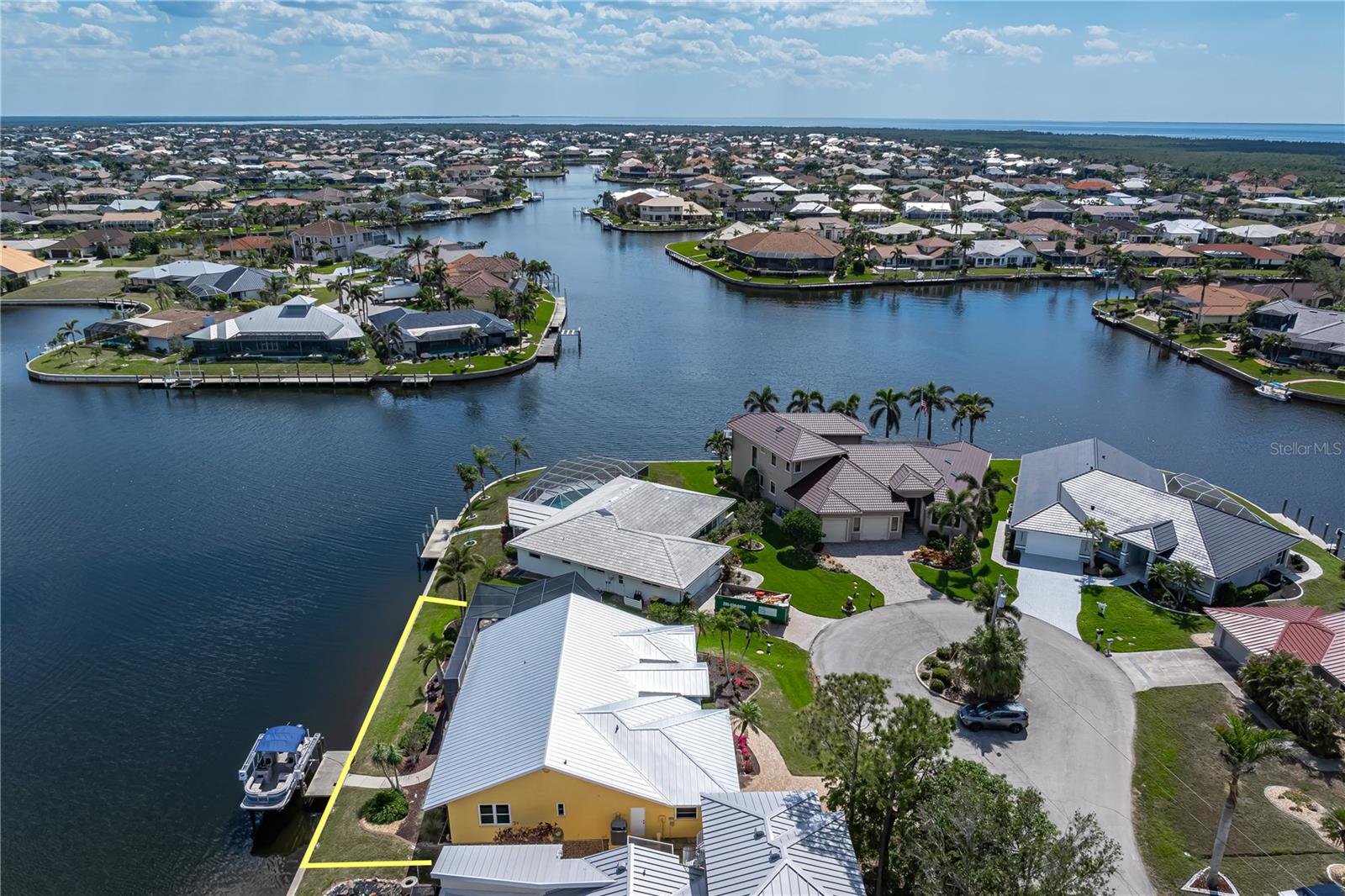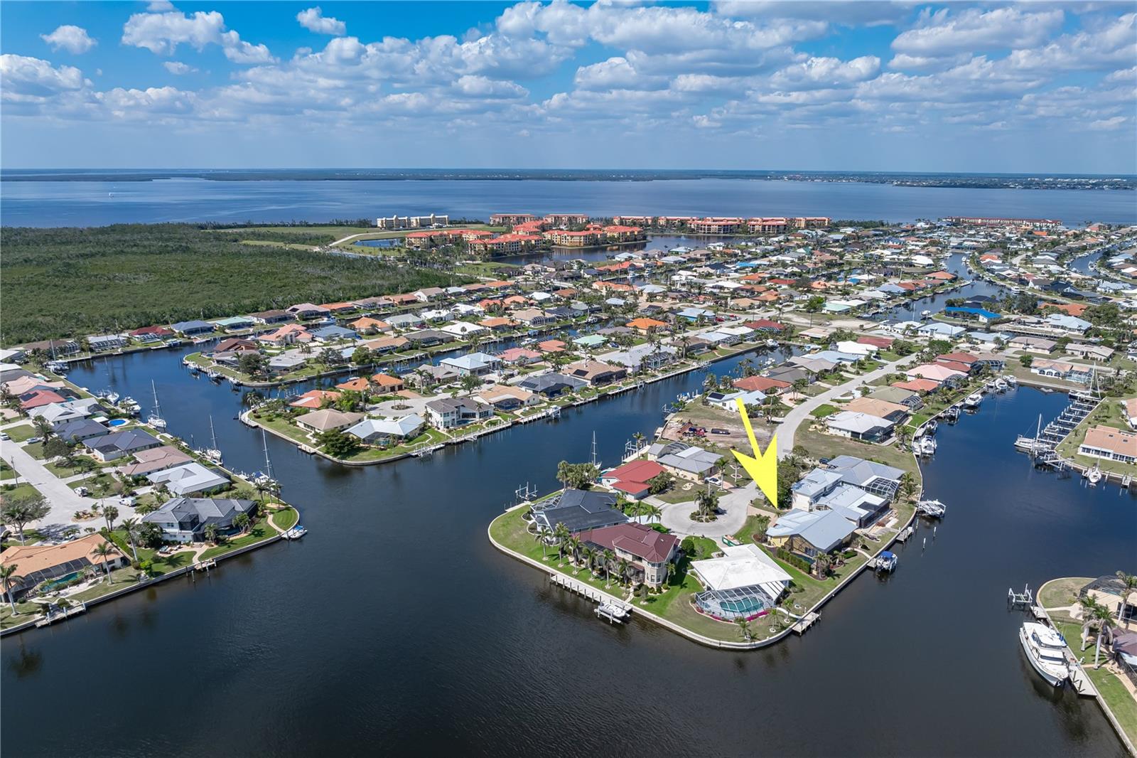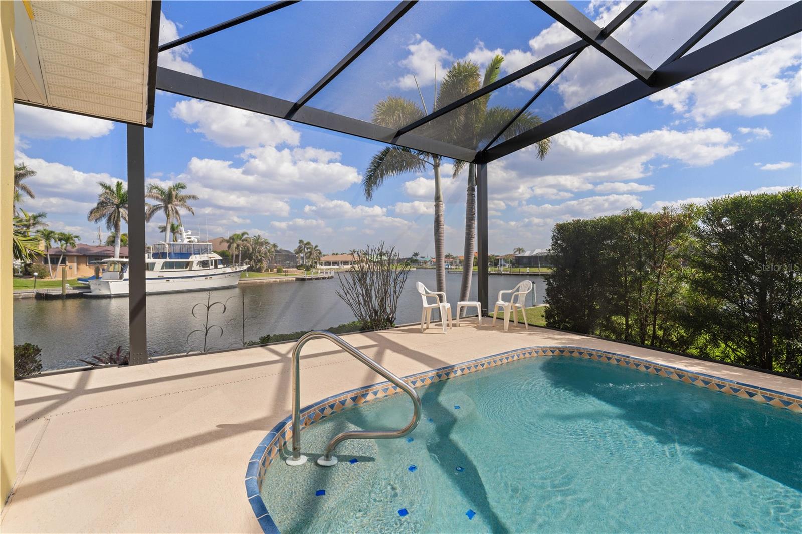 WATERFRONT LIVING IN PGI W/A FABULOUS VIEW! Check out this 3 bed/2 bath, waterfront home in Punta Gorda Isles w/NEW METAL ROOF. Property features 105ft of seawall w/a concrete dock & boat lift plus VERY QUICK SAILBOAT ACCESS to Charlotte Harbor. Enjoy stunning sunrises thanks to the desirable eastern rear exposure of the home. The home has an open floor plan w/a spacious formal dining/living room as well as a separate family room plus a Florida room w/panoramic canal views. At the heart of the home is an updated kitchen w/granite counters, wood cabinetry & NEW stainless steel appliances (2023). The adjacent breakfast area features a built-in desk, additional storage cabinets as well as a full butler's pantry for added storage space. Tons of natural light thanks to walls of sliding glass doors along the back of the home. Architectural details include soaring cathedral ceilings, large windows, tile flooring throughout the main living areas & bathrooms plus luxury vinyl plank floors in the bedrooms. The spacious master suite has an amazing view plus en-suite bath w/oversized walk-in closet. Two large guest rooms share a guest bath - one guest room features a large, walk-in closet. Outside, the lanai has a new, picture-frame pool cage (2023) surrounding the in-ground, heated pool. Pool heater new in 2022. Lounge poolside & enjoy the view from here. A concrete dock w/boat lift is steps from the back door. Water & electric hook-ups including 50amp service is available dockside. Other amenities include whole-house hurricane protection w/impact-resistant doors & windows plus Lexan panels for the accent window in the guest bath, an attached two-car garage & spray-foam attic insulation for added energy-efficiency. Home is located on a quiet cul-de-sac. Punta Gorda is a vibrant waterfront community known for its boating lifestyle, active art & music scene, and top-rated golf courses. Miles of sidewalks connect you to the rest of Punta Gorda Isles, several area parks & even historic downtown Punta Gorda. Take advantage of the active lifestyle awaiting you here: you can walk, bike or kayak to almost anywhere you'd want to go! Take the boat to dinner at nearby Fishermen's Village, Cass Cay at Burnt Store Marina or even the Isles Yacht Club. Claim your spot in paradise & start living your Florida dream here.