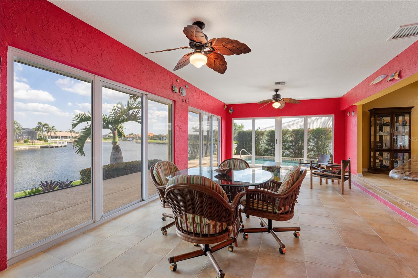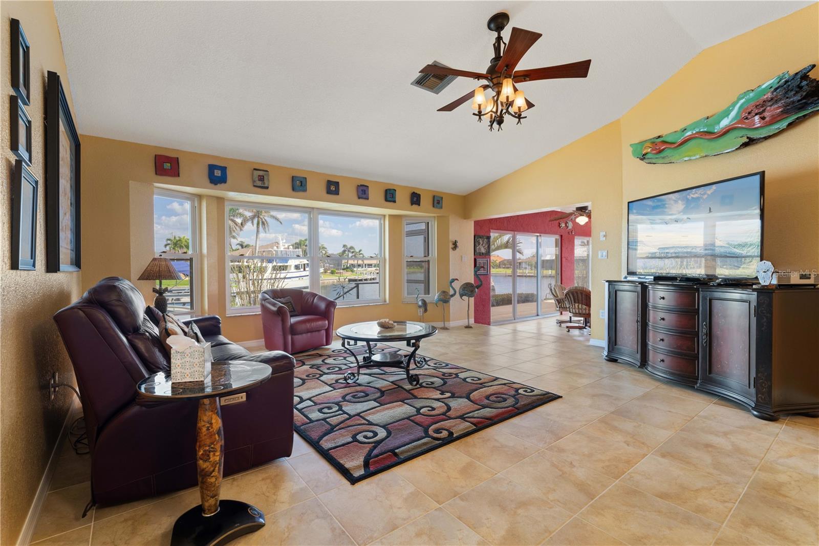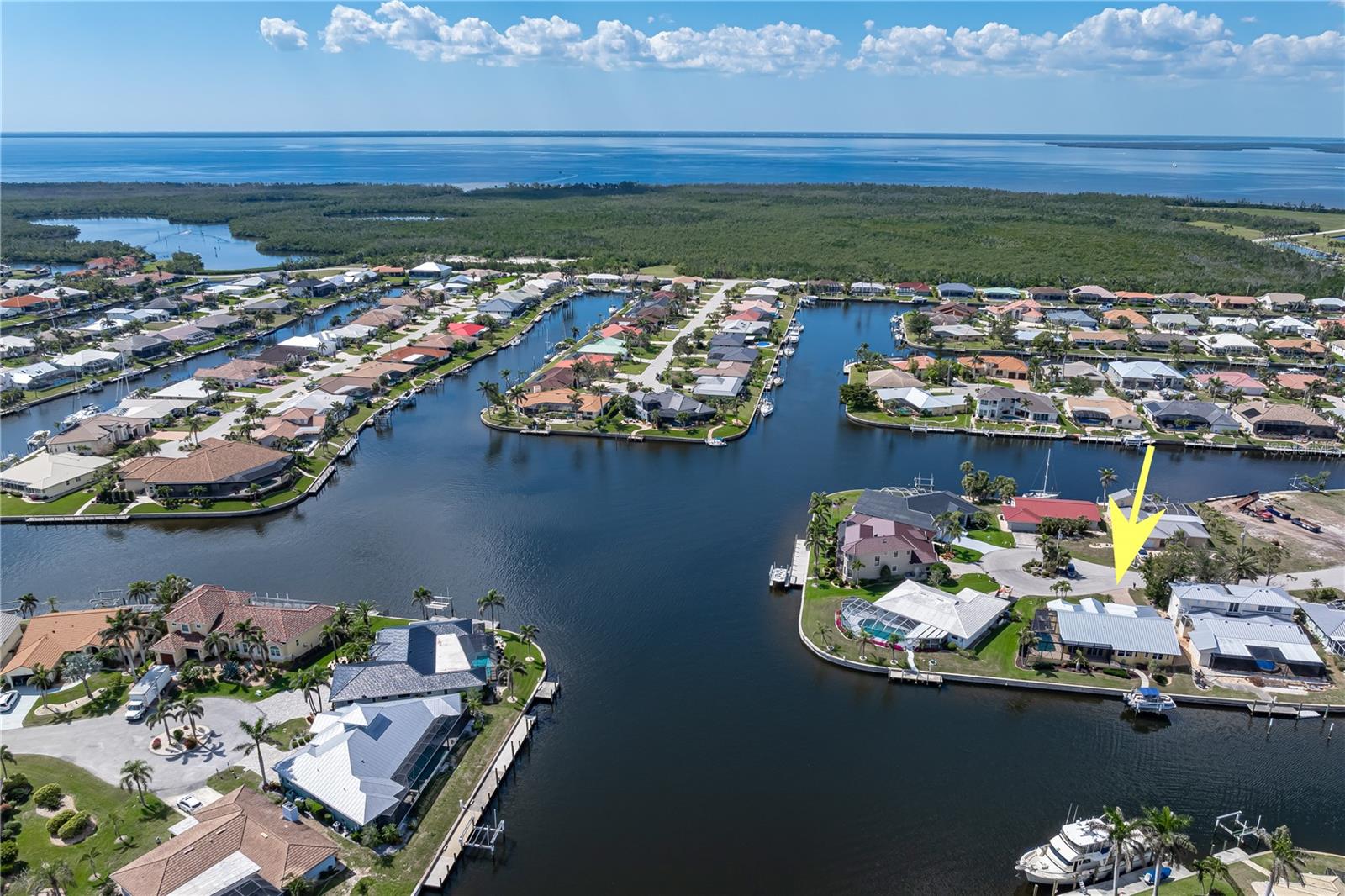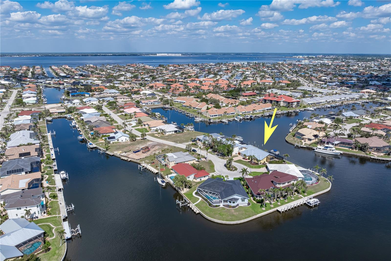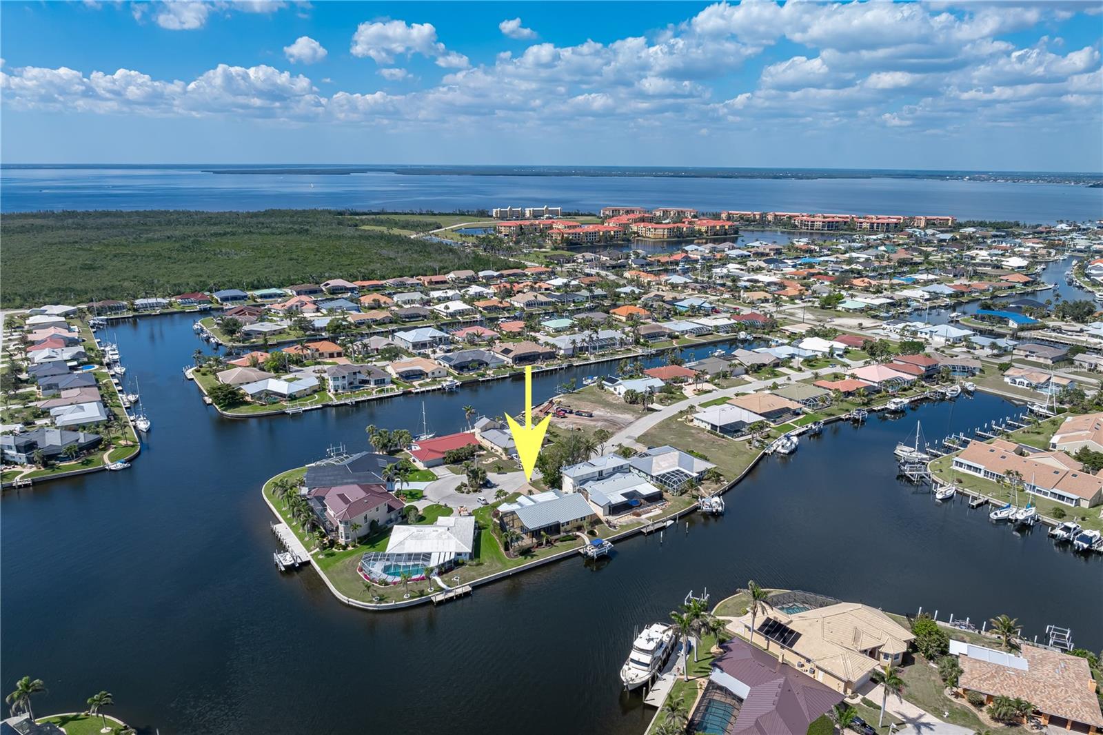 WATERFRONT LIVING IN PGI W/A FABULOUS VIEW! Check out this 3 bed/2 bath, waterfront home in Punta Gorda Isles w/NEW METAL ROOF. Property features 105ft of seawall w/a concrete dock & boat lift plus VERY QUICK SAILBOAT ACCESS to Charlotte Harbor. Enjoy stunning sunrises thanks to the desirable eastern rear exposure of the home. The home has an open floor plan w/a spacious formal dining/living room as well as a separate family room plus a Florida room w/panoramic canal views. At the heart of the home is an updated kitchen w/granite counters, wood cabinetry & NEW stainless steel appliances (2023). The adjacent breakfast area features a built-in desk, additional storage cabinets as well as a full butler's pantry for added storage space. Tons of natural light thanks to walls of sliding glass doors along the back of the home. Architectural details include soaring cathedral ceilings, large windows, tile flooring throughout the main living areas & bathrooms plus luxury vinyl plank floors in the bedrooms. The spacious master suite has an amazing view plus en-suite bath w/oversized walk-in closet. Two large guest rooms share a guest bath - one guest room features a large, walk-in closet. Outside, the lanai has a new, picture-frame pool cage (2023) surrounding the in-ground, heated pool. Pool heater new in 2022. Lounge poolside & enjoy the view from here. A concrete dock w/boat lift is steps from the back door. Water & electric hook-ups including 50amp service is available dockside. Other amenities include whole-house hurricane protection w/impact-resistant doors & windows plus Lexan panels for the accent window in the guest bath, an attached two-car garage & spray-foam attic insulation for added energy-efficiency. Home is located on a quiet cul-de-sac. Punta Gorda is a vibrant waterfront community known for its boating lifestyle, active art & music scene, and top-rated golf courses. Miles of sidewalks connect you to the rest of Punta Gorda Isles, several area parks & even historic downtown Punta Gorda. Take advantage of the active lifestyle awaiting you here: you can walk, bike or kayak to almost anywhere you'd want to go! Take the boat to dinner at nearby Fishermen's Village, Cass Cay at Burnt Store Marina or even the Isles Yacht Club. Claim your spot in paradise & start living your Florida dream here.