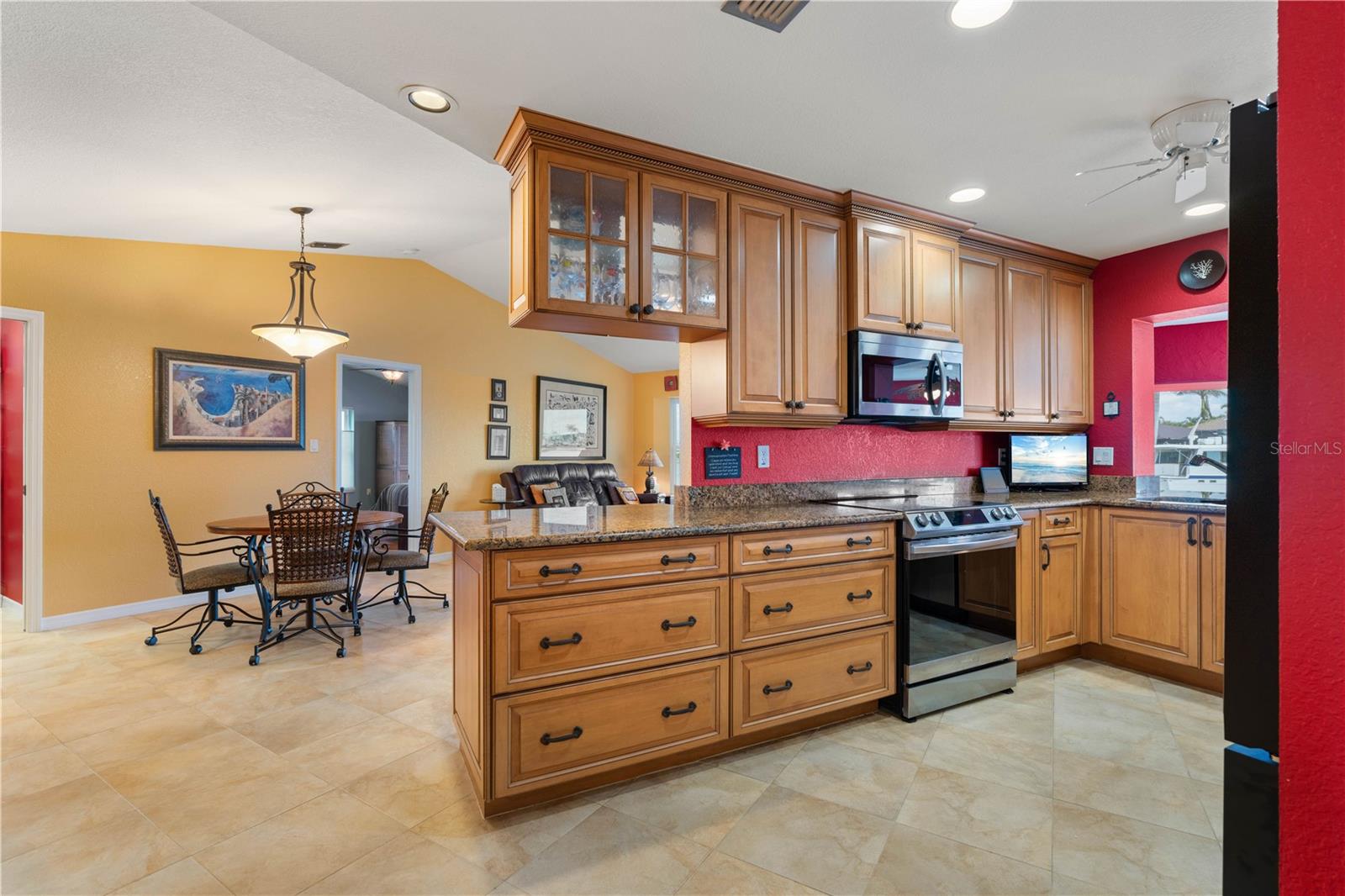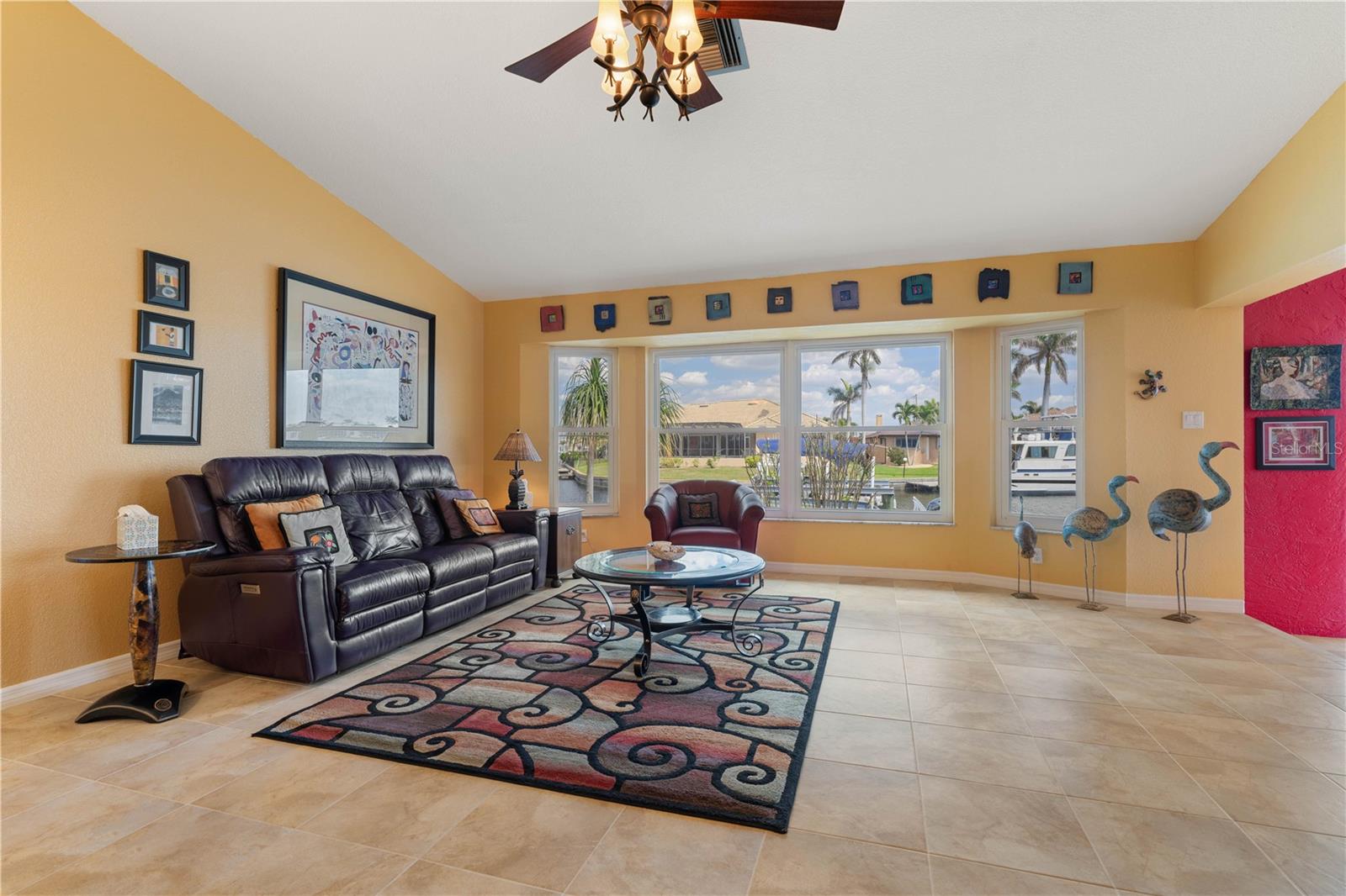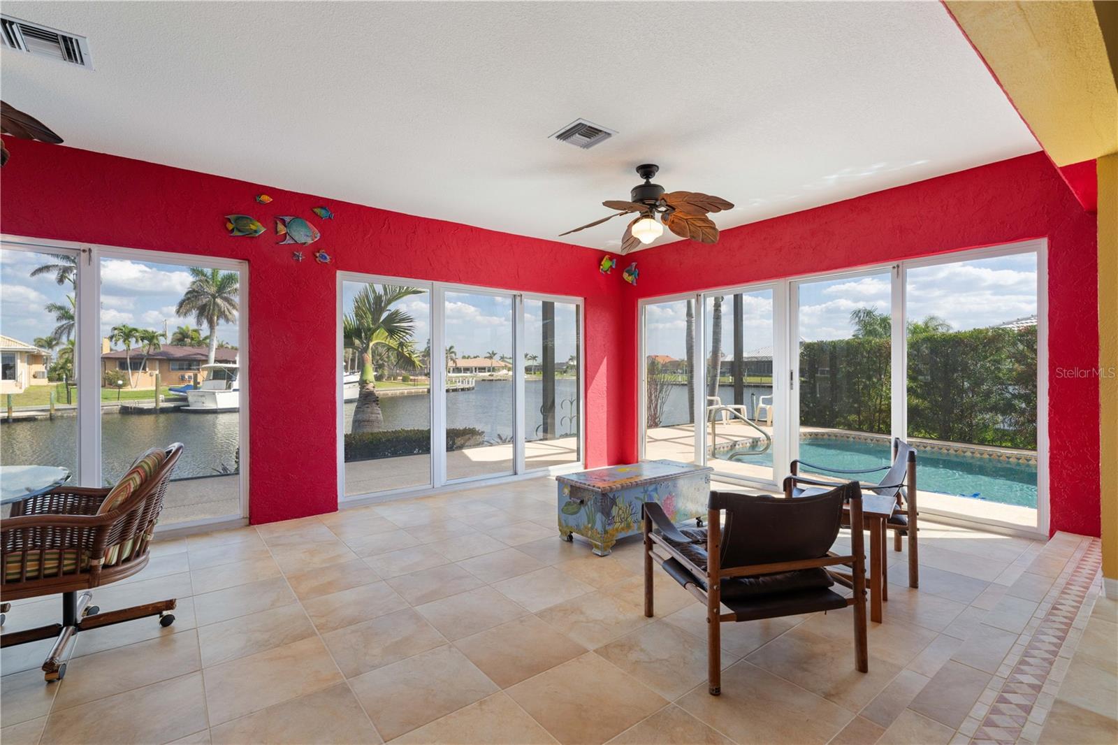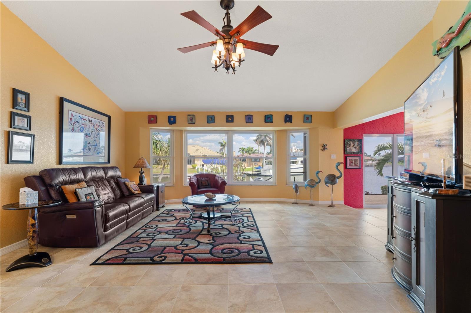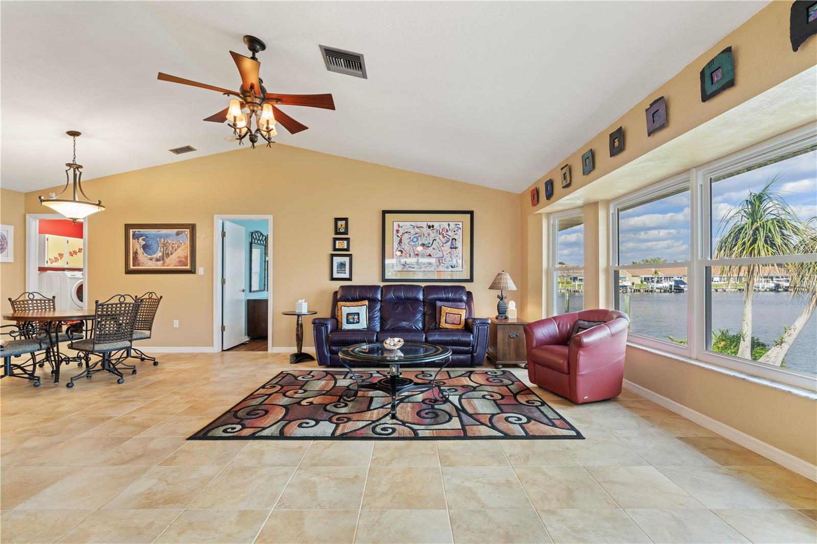 WATERFRONT LIVING IN PGI W/A FABULOUS VIEW! Check out this 3 bed/2 bath, waterfront home in Punta Gorda Isles w/NEW METAL ROOF. Property features 105ft of seawall w/a concrete dock & boat lift plus VERY QUICK SAILBOAT ACCESS to Charlotte Harbor. Enjoy stunning sunrises thanks to the desirable eastern rear exposure of the home. The home has an open floor plan w/a spacious formal dining/living room as well as a separate family room plus a Florida room w/panoramic canal views. At the heart of the home is an updated kitchen w/granite counters, wood cabinetry & NEW stainless steel appliances (2023). The adjacent breakfast area features a built-in desk, additional storage cabinets as well as a full butler's pantry for added storage space. Tons of natural light thanks to walls of sliding glass doors along the back of the home. Architectural details include soaring cathedral ceilings, large windows, tile flooring throughout the main living areas & bathrooms plus luxury vinyl plank floors in the bedrooms. The spacious master suite has an amazing view plus en-suite bath w/oversized walk-in closet. Two large guest rooms share a guest bath - one guest room features a large, walk-in closet. Outside, the lanai has a new, picture-frame pool cage (2023) surrounding the in-ground, heated pool. Pool heater new in 2022. Lounge poolside & enjoy the view from here. A concrete dock w/boat lift is steps from the back door. Water & electric hook-ups including 50amp service is available dockside. Other amenities include whole-house hurricane protection w/impact-resistant doors & windows plus Lexan panels for the accent window in the guest bath, an attached two-car garage & spray-foam attic insulation for added energy-efficiency. Home is located on a quiet cul-de-sac. Punta Gorda is a vibrant waterfront community known for its boating lifestyle, active art & music scene, and top-rated golf courses. Miles of sidewalks connect you to the rest of Punta Gorda Isles, several area parks & even historic downtown Punta Gorda. Take advantage of the active lifestyle awaiting you here: you can walk, bike or kayak to almost anywhere you'd want to go! Take the boat to dinner at nearby Fishermen's Village, Cass Cay at Burnt Store Marina or even the Isles Yacht Club. Claim your spot in paradise & start living your Florida dream here.