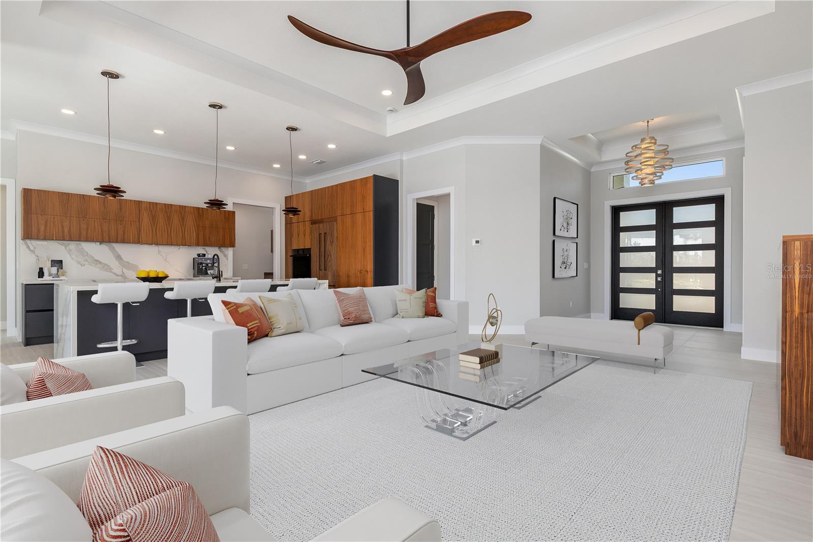 SAILBOAT LOT – SPECTACULAR WATER VIEWS – MINUTES TO OPEN WATER! Step into a world of refined luxury with this breathtaking, custom-built waterfront residence in the highly sought-after Punta Gorda Isles. Situated on a premium sailboat-access lot just minutes from open water, this home is a boater’s paradise and a car enthusiast’s dream, blending high-end design with top-tier functionality. This exceptional property features 4 spacious bedrooms, 3 elegantly designed bathrooms, all meticulously crafted for effortless entertaining and elevated everyday living. At the heart of the home lies the gourmet kitchen, a true showpiece boasting custom-built walnut touch-to-open cabinetry, sleek Invisacook cooktop, European-imported porcelain waterfall-edge countertops, high-end Dacor appliances, Touch 2.0 smart faucet and hidden wine bar, a walk-through butler’s pantry with a sink, custom cabinetry, and extensive storage. The primary suite is equally impressive, offering a dream custom-designed walk-in closet complete with tailored shelving, drawers, and luxury hanging systems—an organizer’s dream. Designed to take full advantage of the waterfront setting, the home features 90-degree sliding glass doors that create a seamless indoor-outdoor living experience. Step outside to an entertainer’s oasis with a fully equipped outdoor kitchen with bar seating, fridge, and TV, heated saltwater pool with sun shelf and stunning water views. Expansive covered lanai and with plenty of living area. The living room features a sleek motorized lift TV cabinet, keeping the space clean and uncluttered while offering modern tech at your fingertips. The oversized laundry room includes a sink, extensive cabinetry, high-end washer and dryer, and ample room for pet-related needs. Enjoy peace of mind year-round with motorized Kevlar hurricane protection screens, offering transparency, visibility, and instant deployment at the push of a button. Car enthusiasts will fall in love with the oversized 4-car garage, outfitted with premium Poggenpohl cabinetry and butcher block work surfaces—ideal for showcasing your collection or working on prized vehicles. Best of all, the seawall is maintained by the City of Punta Gorda—a rare and highly valuable benefit for waterfront homeowners! This extraordinary property redefines luxury coastal living with world-class design, top-of-the-line finishes, and unmatched boating access. Don’t miss the opportunity to call this one-of-a-kind home yours! Schedule your private showing today!