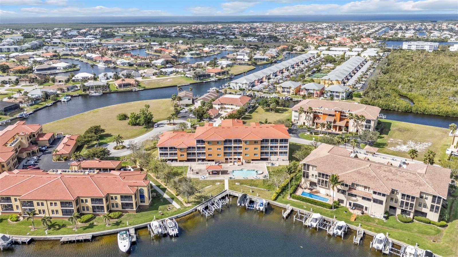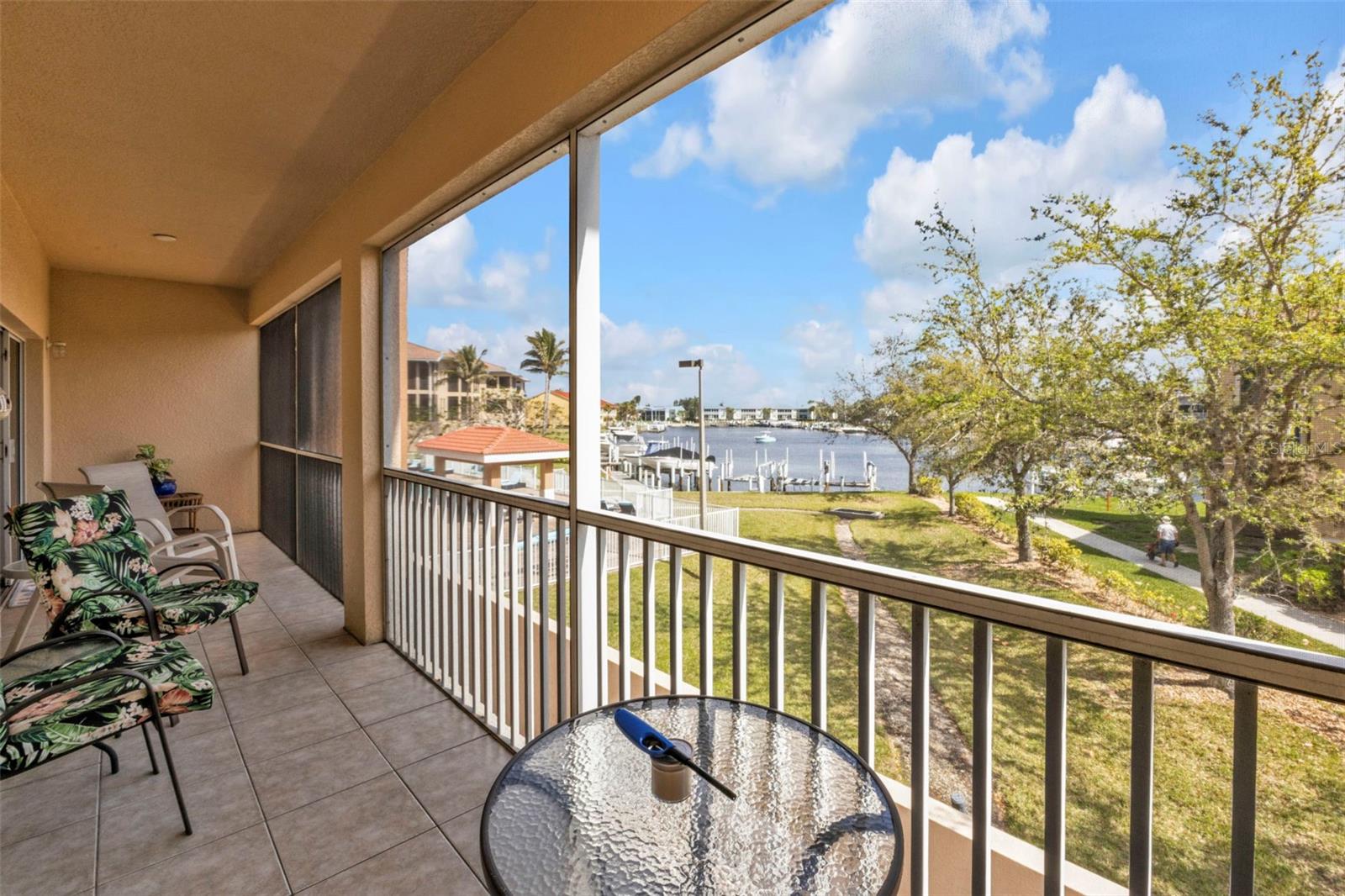 DEEDED BOAT SLIP! Seller is offering Buyer $15,000 in allowances for repairs at closing. This spacious end-unit, partially furnished condo offers breathtaking canal and pool views from the screened balcony, blending luxury and waterfront living seamlessly. The 27x16 Great Room flows effortlessly onto the balcony, perfect for relaxing or entertaining. The gourmet kitchen boasts granite countertops, cherry wood cabinets, and stainless steel appliances. The primary suite features two closets (one walk-in), balcony access, and a spa-like ensuite with a glass-enclosed shower, soaking tub, and double vanity. Two guest bedrooms share a Jack and Jill bathroom, while a separate half bath provides added convenience. This condo also includes lighted tray ceilings, impact windows, and a private storage room (#7). Take the elevator or the stairs down to your 2 ASSIGNED parking spaces, storage room, or the DEEDED BOAT SLIP. Enjoy resort-style amenities, including a heated pool and spa, grill & gazebo area, and an assigned boat slip for easy water access. With two reserved under-building parking spaces and partial furnishings included, this waterfront gem is move-in ready! You will be conveniently located minutes from Fisherman's Village, downtown Punta Gorda, shopping and a quick drive to I-75. Schedule your private showing today!