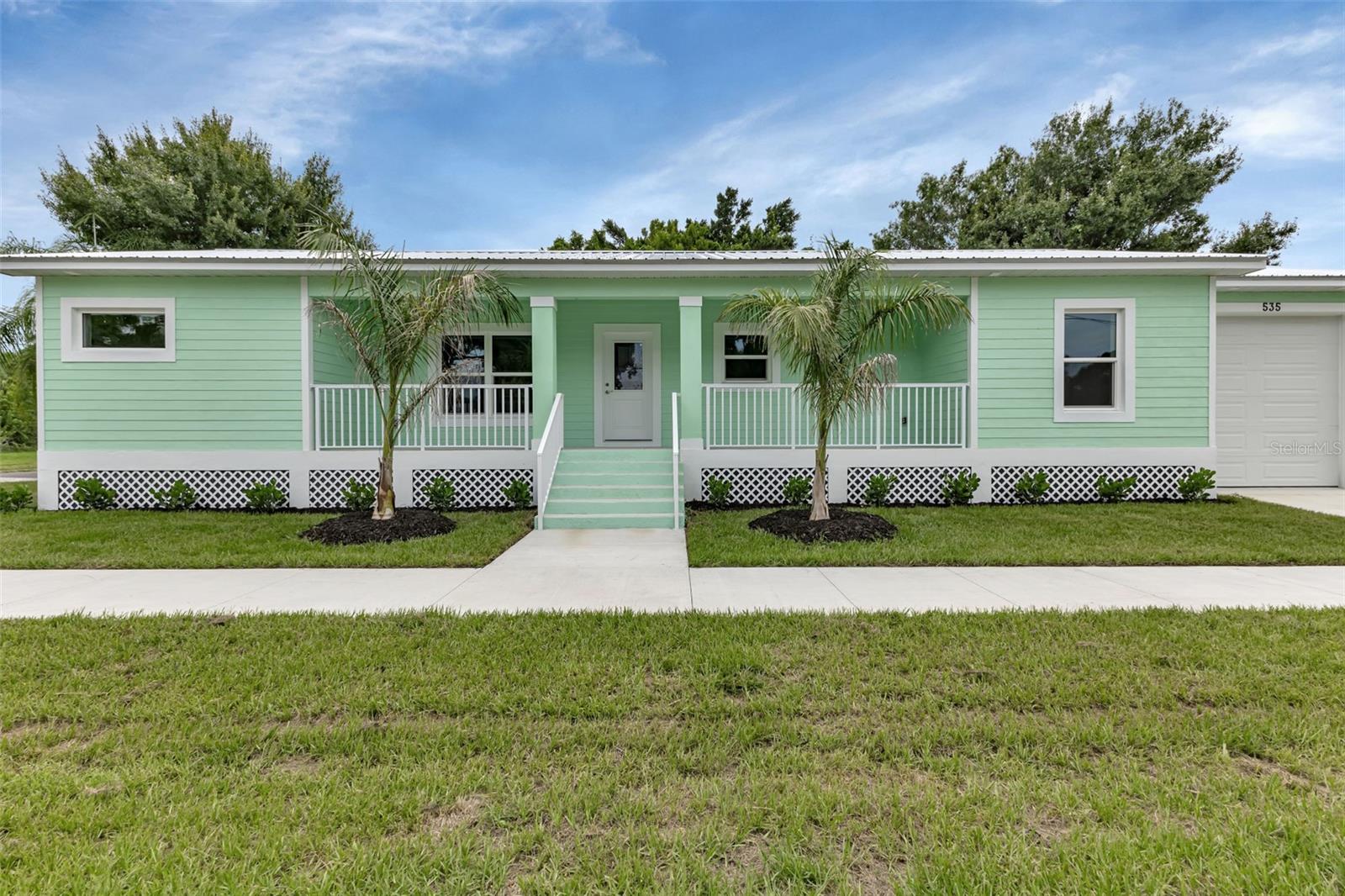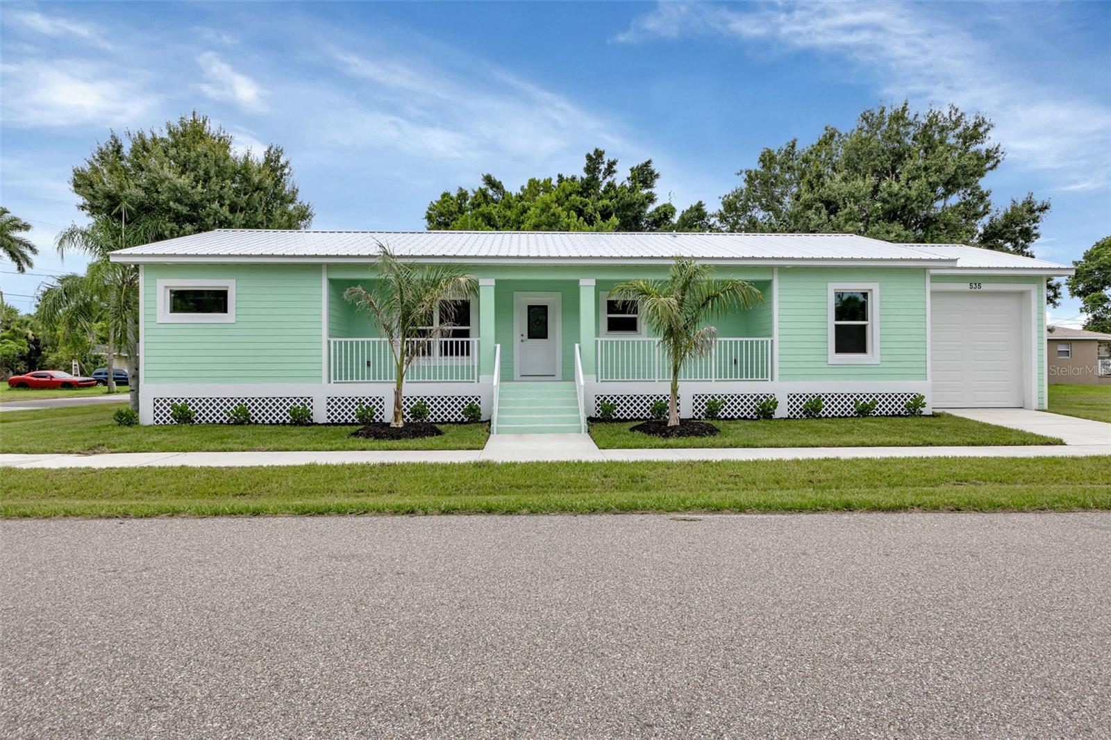 Brand new 2 bedroom, 2 bath, 1 car garage BLOCK home sitting on a 5 course stem wall located near downtown of Punta Gorda. Walking distance to Laishley Park and downtown where you'll find plenty of dining, shopping and entertainment. Featuring LVP flooring throughout, carpet in bedrooms, granite counters, wood cabinets, metal roof, impact windows, washer and dryer, and a huge front porch. CITY WATER and SEWER. No HOA. Right down the street you'll find South County Sports Complex including basketball courts, baseball fields, soccer fields, tennis, pickle ball, swimming, remote control cars and boat racing and playgrounds. You will love this fishing and boating community. Come a take a look today!
