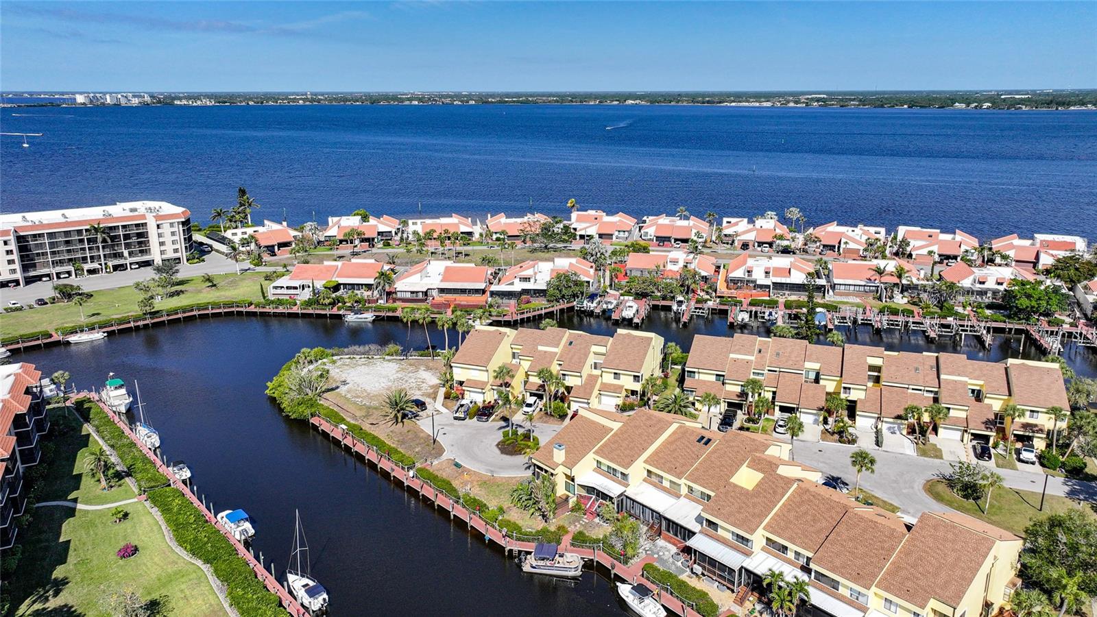 Exclusive gated boating and tennis community of Emerald Pointe. This end unit features an open floor plan with water views. Rarely available, large first floor primary bedroom with en-suite bath and his and her closets is a delight. The nice size kitchen overlooks the dining room and living room and a fireplace for you to enjoy. The upstairs has 2 bedrooms and a full bath with tiled shower, utility closet accepts full sized washer and dryer, plus an open loft. The side deck has mature landscaping affording privacy. A short distance to Peace River and beyond...Emerald Point community includes basic cable, boat docks on a first come first serve basis and storage, a fitness center and clubhouse with tennis courts and 3 swimming pools. The vibrant lifestyle is a welcoming atmosphere for activity and socializing. Located closed to downtown Punta Gorda, with restaurants, shopping and entertainment as well as paths along the water with walking and bike trails for you to enjoy. A short drive to golf course and beaches. Close to airports and I75 and US 41.