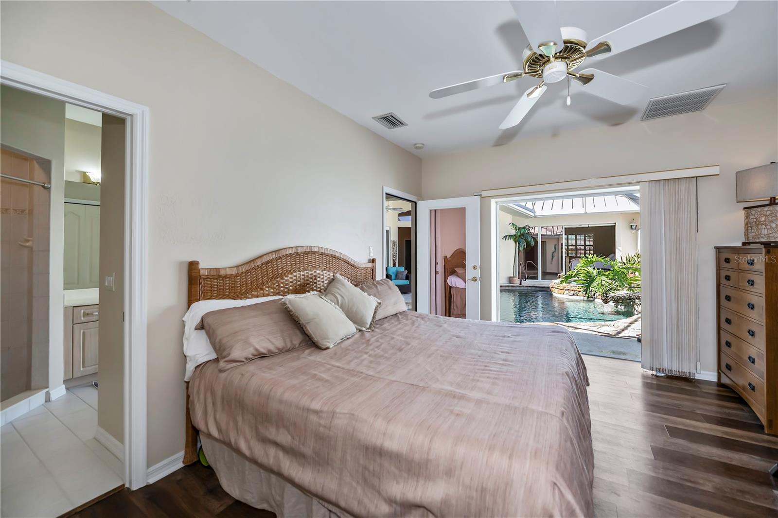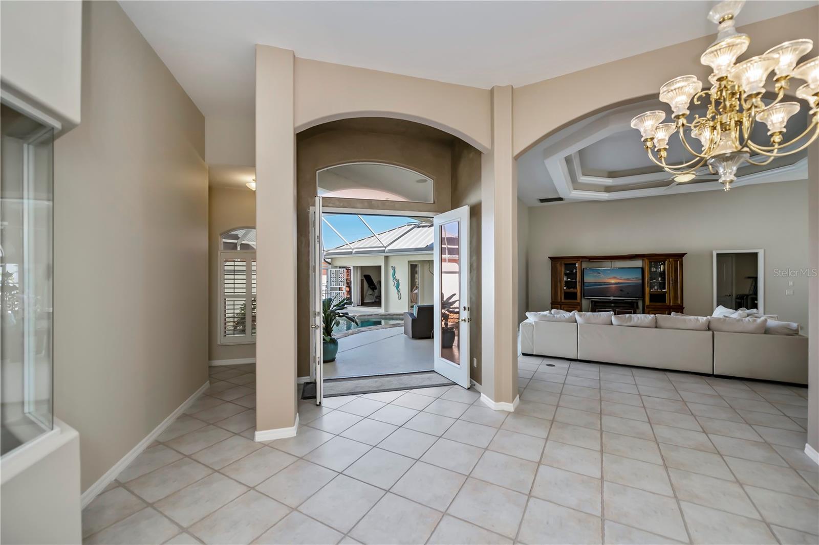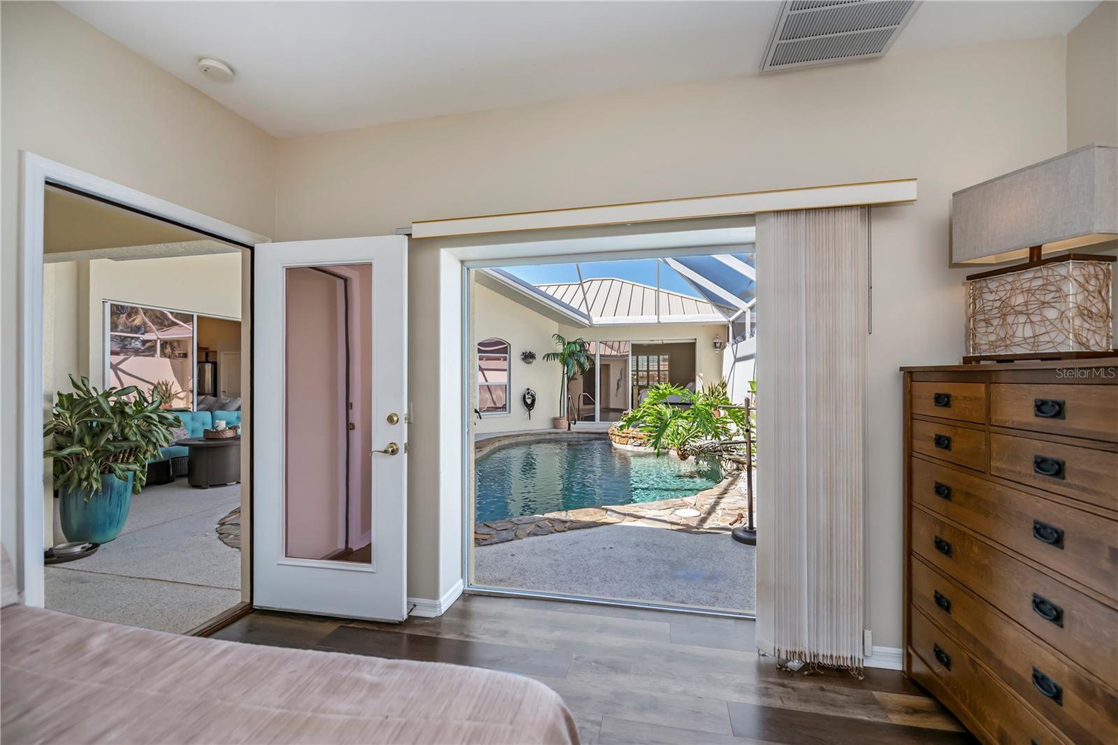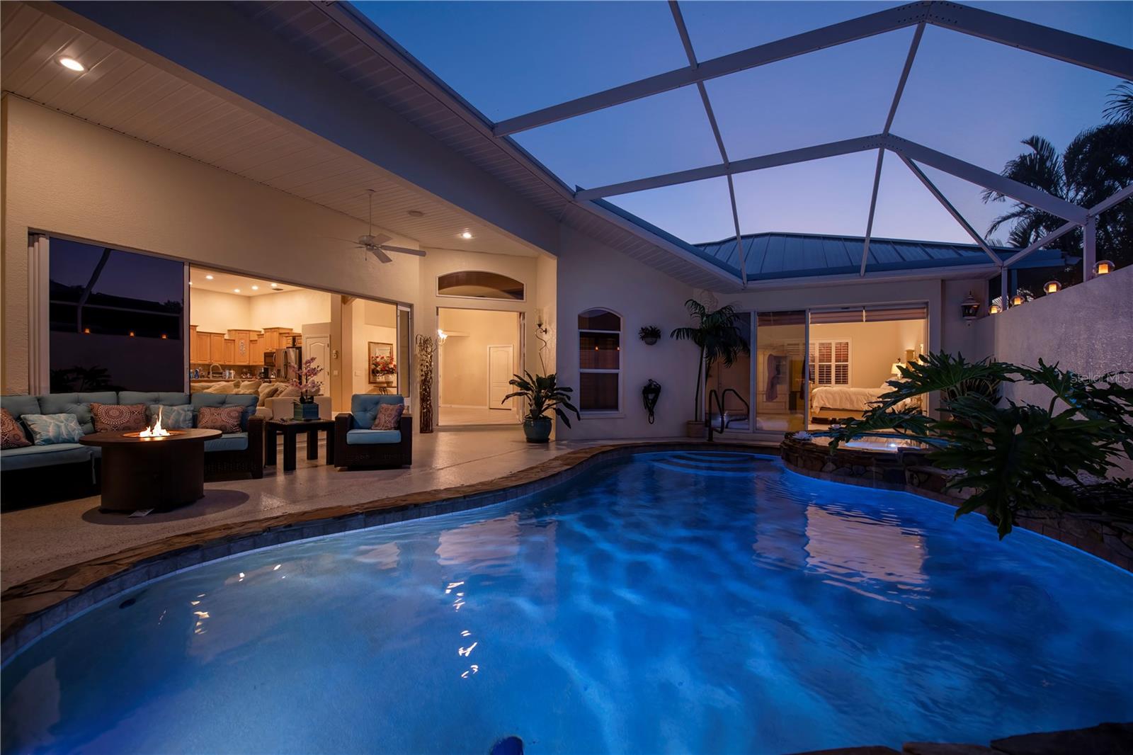 SERENE & PICTURESQUE LAKE with GREENBELT VIEWS, this CUSTOM Fero built 4/3/2 with full office COURTYARD home includes a true resort style Pool/spa and boasts an additional 1/1 stylish CASITA STYLE GUEST HOUSE! Grand curb appeal from its soaring columned entryway, sleek new metal roof, manicured landscaping,rich concrete curbing, and dimensional concrete driveway with extra side pad parking.Made for leisurely entertaining, the spa-like grandeur courtyard from both the casita or estate home delights all your senses instantly. YEAR ROUND enjoyment, the freeform pebble tec pool ( it has rotating ambiance lighting) awaits aside a large slate stone accented jacuzzi, heated perfectly while enjoying steaks on the BAR-B Jenn-Air outside kitchen ,icy cold drinks only inches away under the extensive screened zen patio..simply delightful to leave the doors wide open on either home! Double door entryway leads into this home's formal circular 12+ ft ceiling foyer, with abundant naturally lit skylight showcases the rounded corners and angular plant shelves. Leading the way gracefully from double doors to two choice guest suites and a wonderful shared bath is a spacious office.The office includes built in storage and octagon glass to foyer. All rooms are nicely appointed, with deep PANORAMIC lake/ wooded greenbelt views, high ceilings, large closets, easy care plantation shutters. The tranquil master suite is a haven of zen, spacious and sliders to the SPA/Pool and courtyard allow the comfortable enjoyments both night or day or linger lavishly soaking in the serene view of Lake Zappa. Large walk in closet and rich ensuite bath gives endless pampering opportunities in your jetted tub under the stars, so much to enjoy.This open plan features a sensational family room with double crowned coffered ceiling and seamlessly connects to the Courtyard as sets of sliders easily brings the outside in.The kitchen is a chefs delight, CORIAN COUNTERTOPS, tall kitchen cabinets including a full pantry, tile backsplash, stainless appliances, breakfast bar and separate dining are crowned with corner sunburst windows. Inside laundry, whole house surge protector, tinted windows, Hunter Douglas shades, freshly painted inside and out, sono music system, fenced yard, reverse osmosis, UV light Hepa ac system, new pool pumps, accordion hurricane shutters, and a FULL 1/1 mother- in -law suite/CASITA presents ENDLESS OPPORTUNITIES FOR INCOME, convenience and peace of mind! On a quiet cul-de-sac-road in desirable deed restricted community with low yearly HOA of Deep Creek …NOT IN A FLOOD ZONE, opportunity knocks! Embrace the Florida lifestyle and experience this exceptional residence close to dining, beaches, PG airport. Take the next step towards making this incredible property yours by scheduling a viewing today.