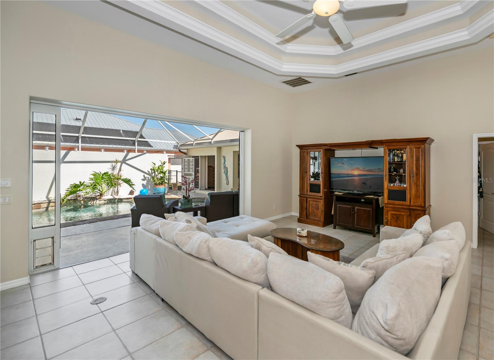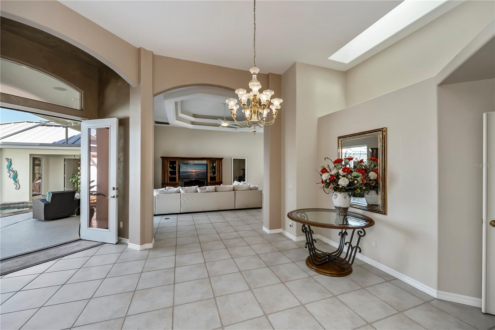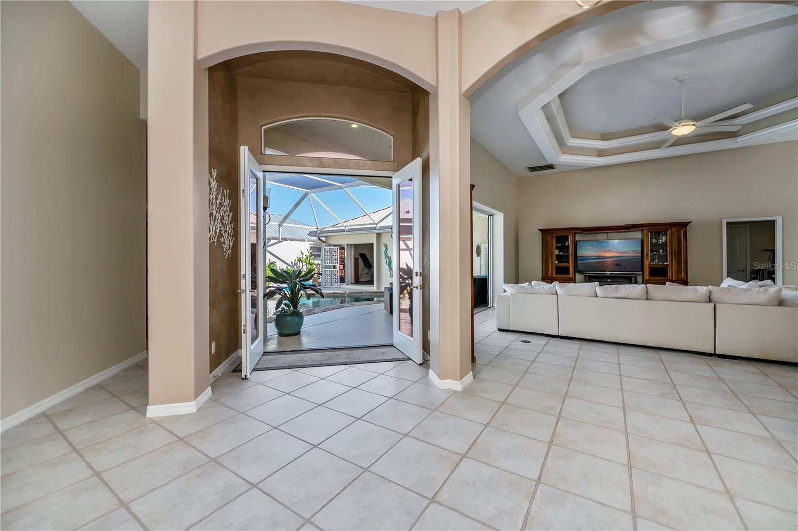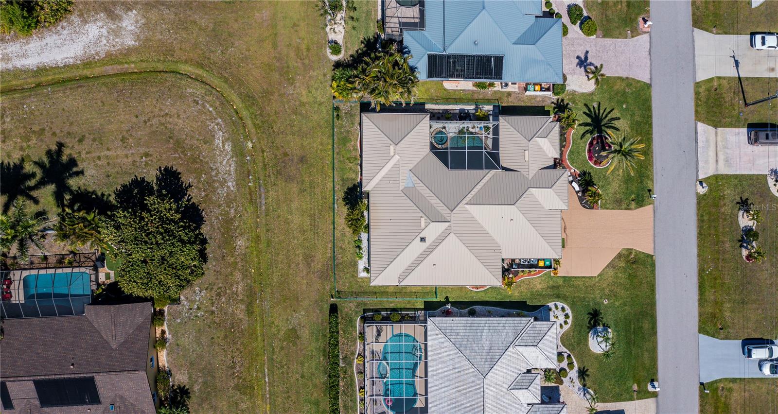 SERENE & PICTURESQUE LAKE with GREENBELT VIEWS, this CUSTOM Fero built 4/3/2 with full office COURTYARD home includes a true resort style Pool/spa and boasts an additional 1/1 stylish CASITA STYLE GUEST HOUSE! Grand curb appeal from its soaring columned entryway, sleek new metal roof, manicured landscaping,rich concrete curbing, and dimensional concrete driveway with extra side pad parking.Made for leisurely entertaining, the spa-like grandeur courtyard from both the casita or estate home delights all your senses instantly. YEAR ROUND enjoyment, the freeform pebble tec pool ( it has rotating ambiance lighting) awaits aside a large slate stone accented jacuzzi, heated perfectly while enjoying steaks on the BAR-B Jenn-Air outside kitchen ,icy cold drinks only inches away under the extensive screened zen patio..simply delightful to leave the doors wide open on either home! Double door entryway leads into this home's formal circular 12+ ft ceiling foyer, with abundant naturally lit skylight showcases the rounded corners and angular plant shelves. Leading the way gracefully from double doors to two choice guest suites and a wonderful shared bath is a spacious office.The office includes built in storage and octagon glass to foyer. All rooms are nicely appointed, with deep PANORAMIC lake/ wooded greenbelt views, high ceilings, large closets, easy care plantation shutters. The tranquil master suite is a haven of zen, spacious and sliders to the SPA/Pool and courtyard allow the comfortable enjoyments both night or day or linger lavishly soaking in the serene view of Lake Zappa. Large walk in closet and rich ensuite bath gives endless pampering opportunities in your jetted tub under the stars, so much to enjoy.This open plan features a sensational family room with double crowned coffered ceiling and seamlessly connects to the Courtyard as sets of sliders easily brings the outside in.The kitchen is a chefs delight, CORIAN COUNTERTOPS, tall kitchen cabinets including a full pantry, tile backsplash, stainless appliances, breakfast bar and separate dining are crowned with corner sunburst windows. Inside laundry, whole house surge protector, tinted windows, Hunter Douglas shades, freshly painted inside and out, sono music system, fenced yard, reverse osmosis, UV light Hepa ac system, new pool pumps, accordion hurricane shutters, and a FULL 1/1 mother- in -law suite/CASITA presents ENDLESS OPPORTUNITIES FOR INCOME, convenience and peace of mind! On a quiet cul-de-sac-road in desirable deed restricted community with low yearly HOA of Deep Creek …NOT IN A FLOOD ZONE, opportunity knocks! Embrace the Florida lifestyle and experience this exceptional residence close to dining, beaches, PG airport. Take the next step towards making this incredible property yours by scheduling a viewing today.