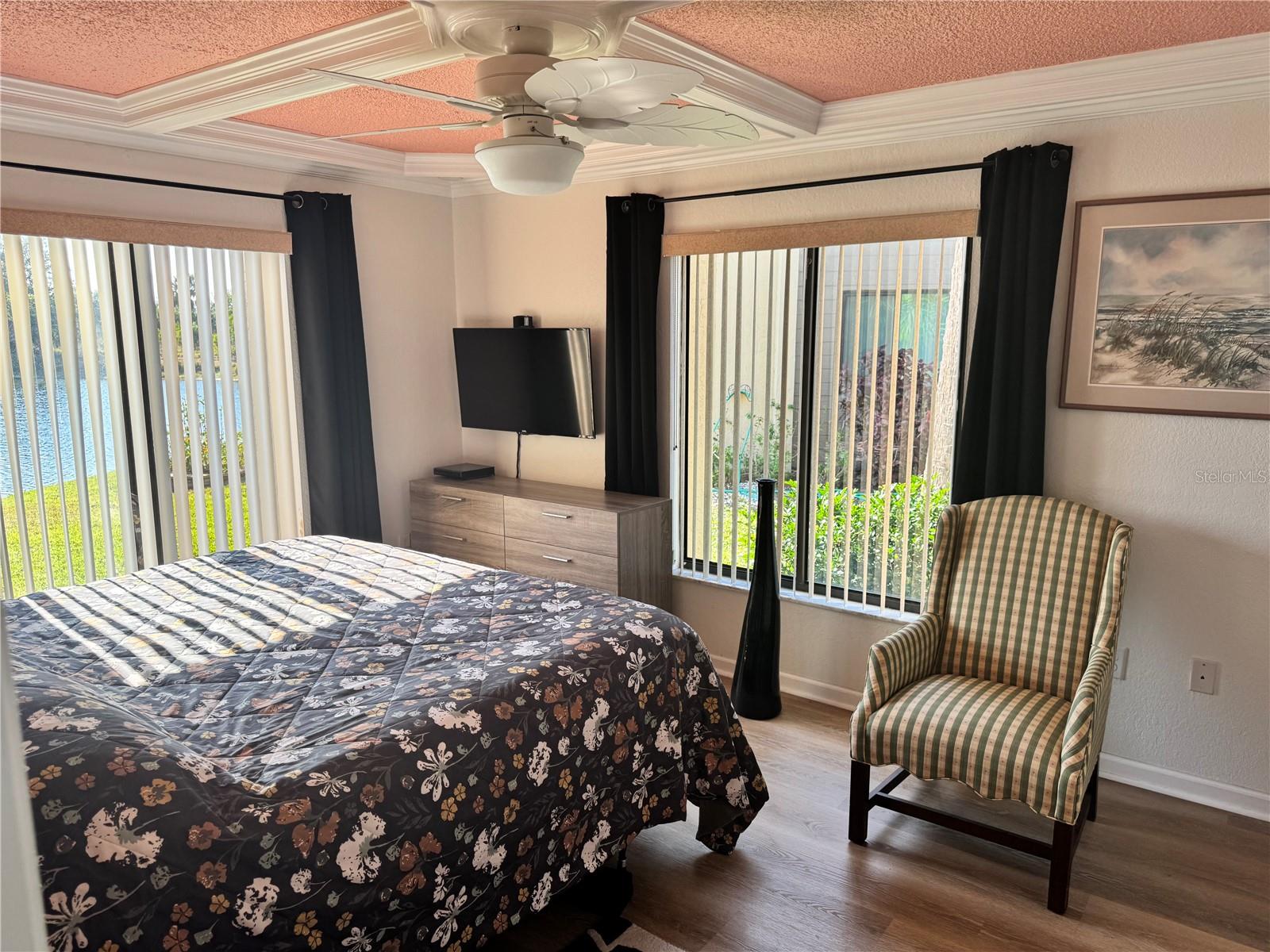 Experience this fully renovated 2-bedroom, 2-bathroom condo, meticulously updated from top to bottom, featuring a private lakefront view. Relax on the lanai with your morning coffee, taking in a stunning sunrise. This ground-floor end unit is nestled within a gated lakefront community, offering breathtaking views of Tala Lake from the living room, master bedroom, and lanai. The modern kitchen boasts brand-new stainless-steel appliances, including a convection oven and microwave, complemented by soft-close wooden cabinets and sleek new countertops. Ample storage is available with a floor-to-ceiling pantry. The master bedroom and en-suite bathroom feature a spacious walk-in closet, new flooring, tile, and vanity. Unwind by the heated pool or hot tub with a book from the library, or host gatherings at the community’s picnic and grilling area. Additional amenities include a vehicle washing station, tennis courts, and bocce ball facilities. This gated 55+ community covers water, sewer, and trash services, fostering a peaceful environment with a variety of activities. Conveniently located just minutes from Highway 41, near I-75, and close to the airport, Moose Club, shopping, dining, golf, and beaches, this stunning condo offers both luxury and accessibility.